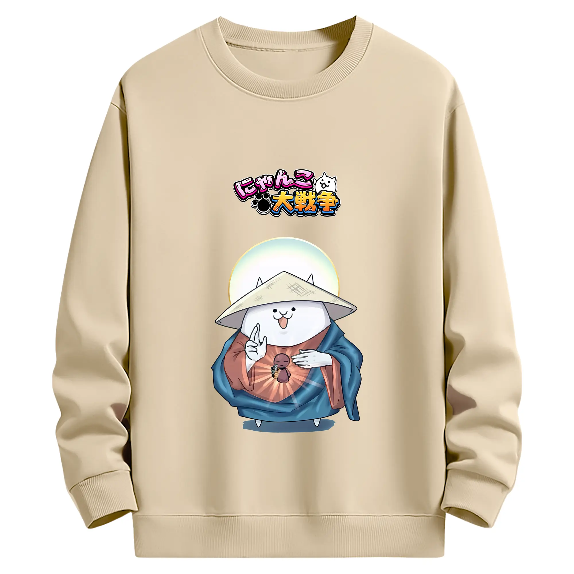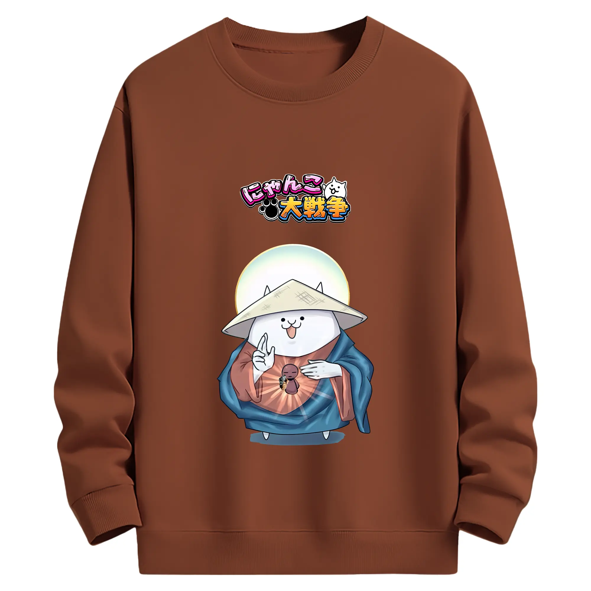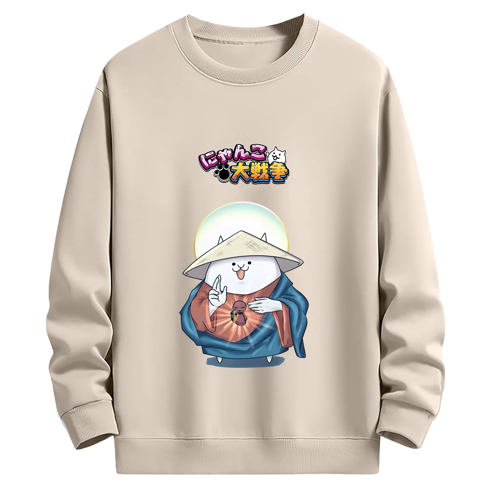 にゃんこ大戦争 グッズ - 薄手 クルーネック スウェット 裏毛260g · ポリエステル 春秋向け カジュアル 男女兼用 · トレーナー デイリー スポーツ 散歩に最適
