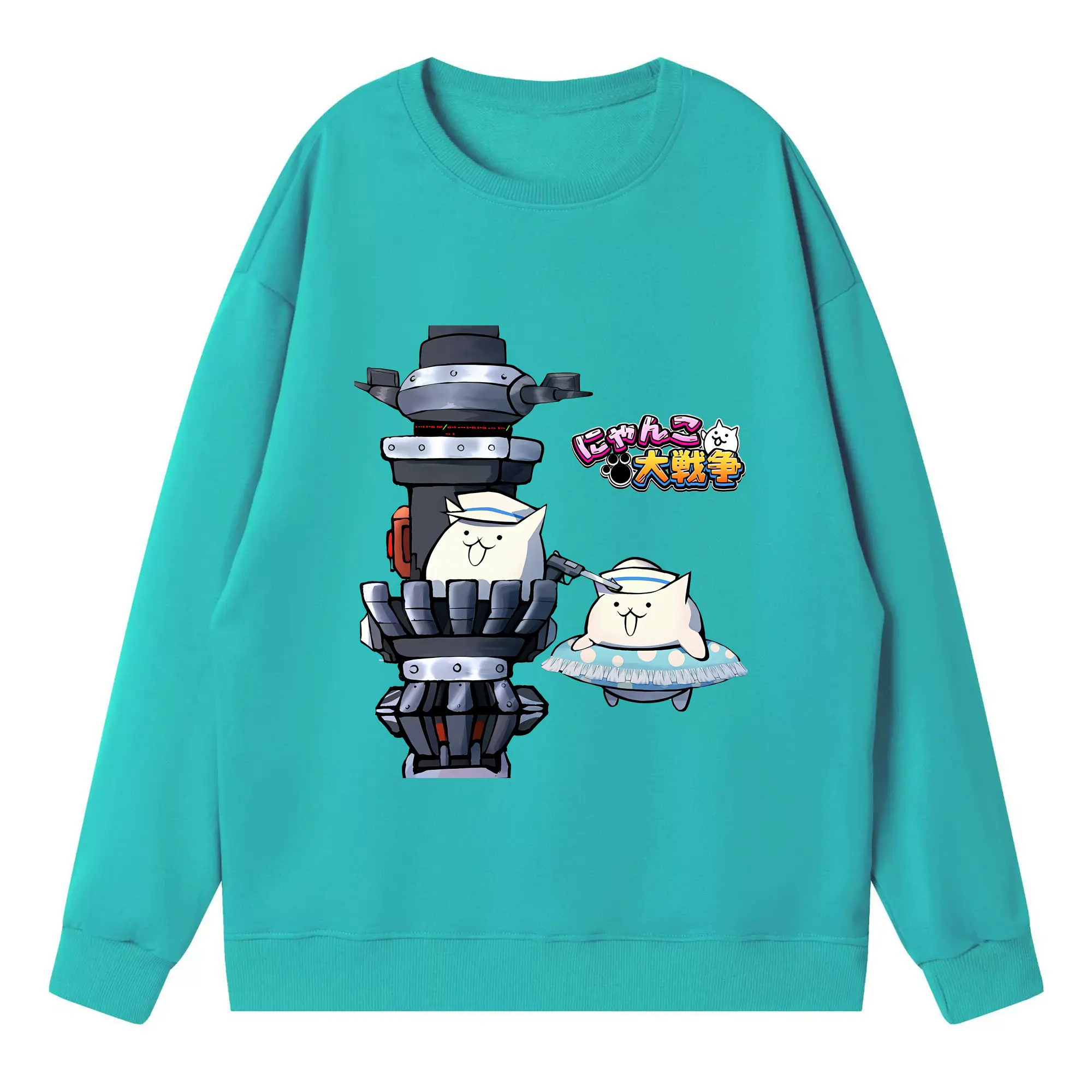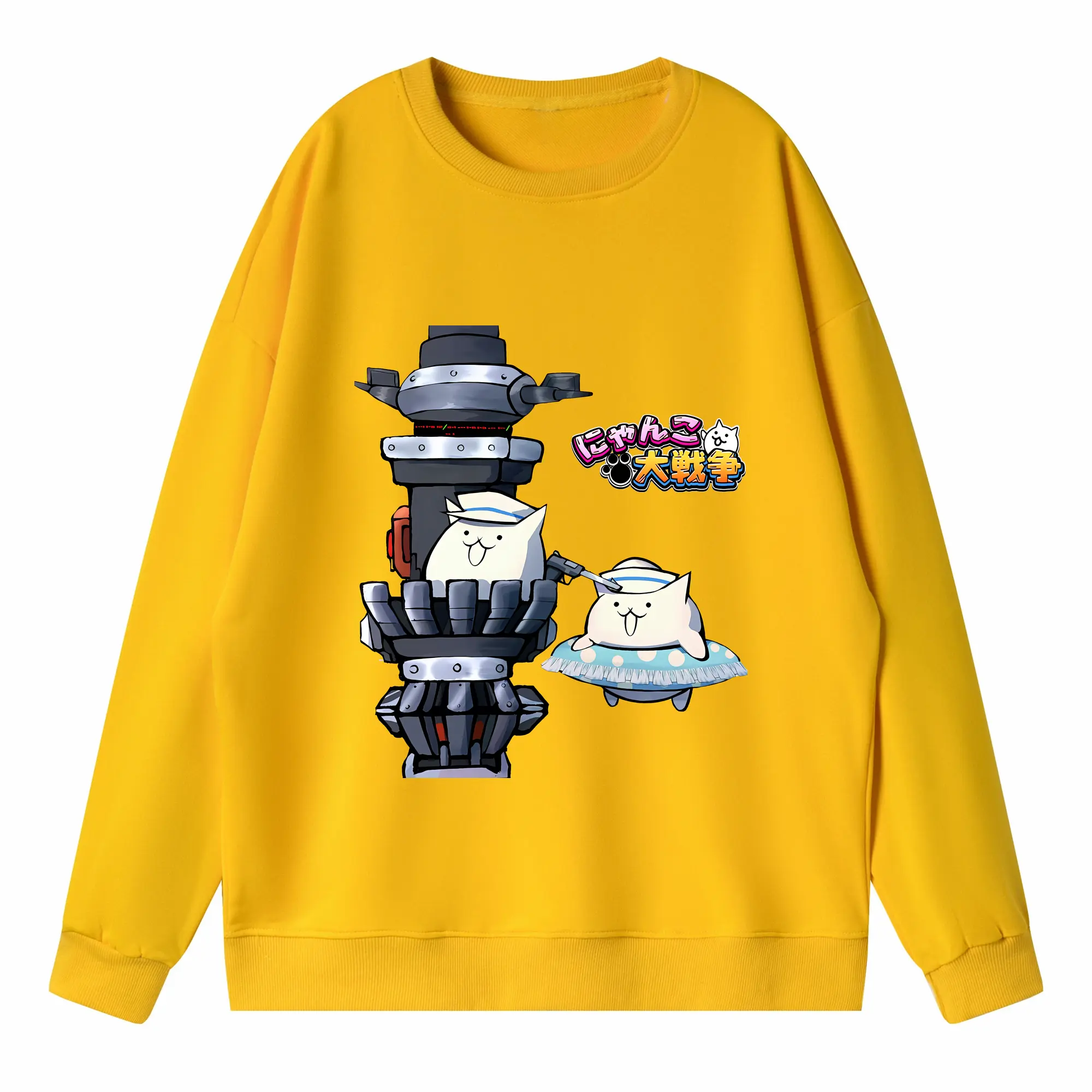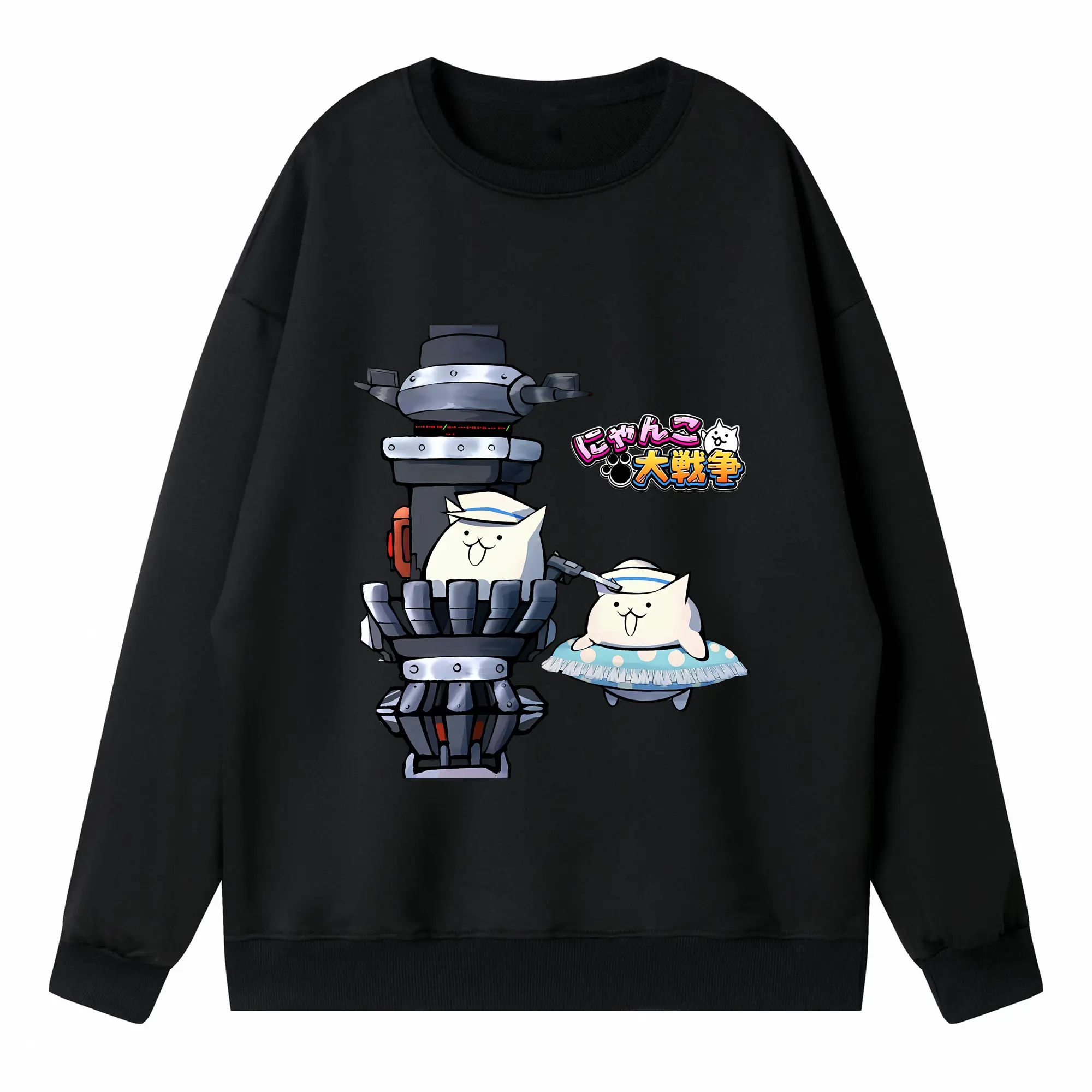 にゃんこ大戦争 グッズ - 高品質 クルーネック スウェット ・ コットン59% ポリエステル41% ・ ユニセックス 長袖 トレーナー ・ カジュアル デイリー スポーツ 散歩用
