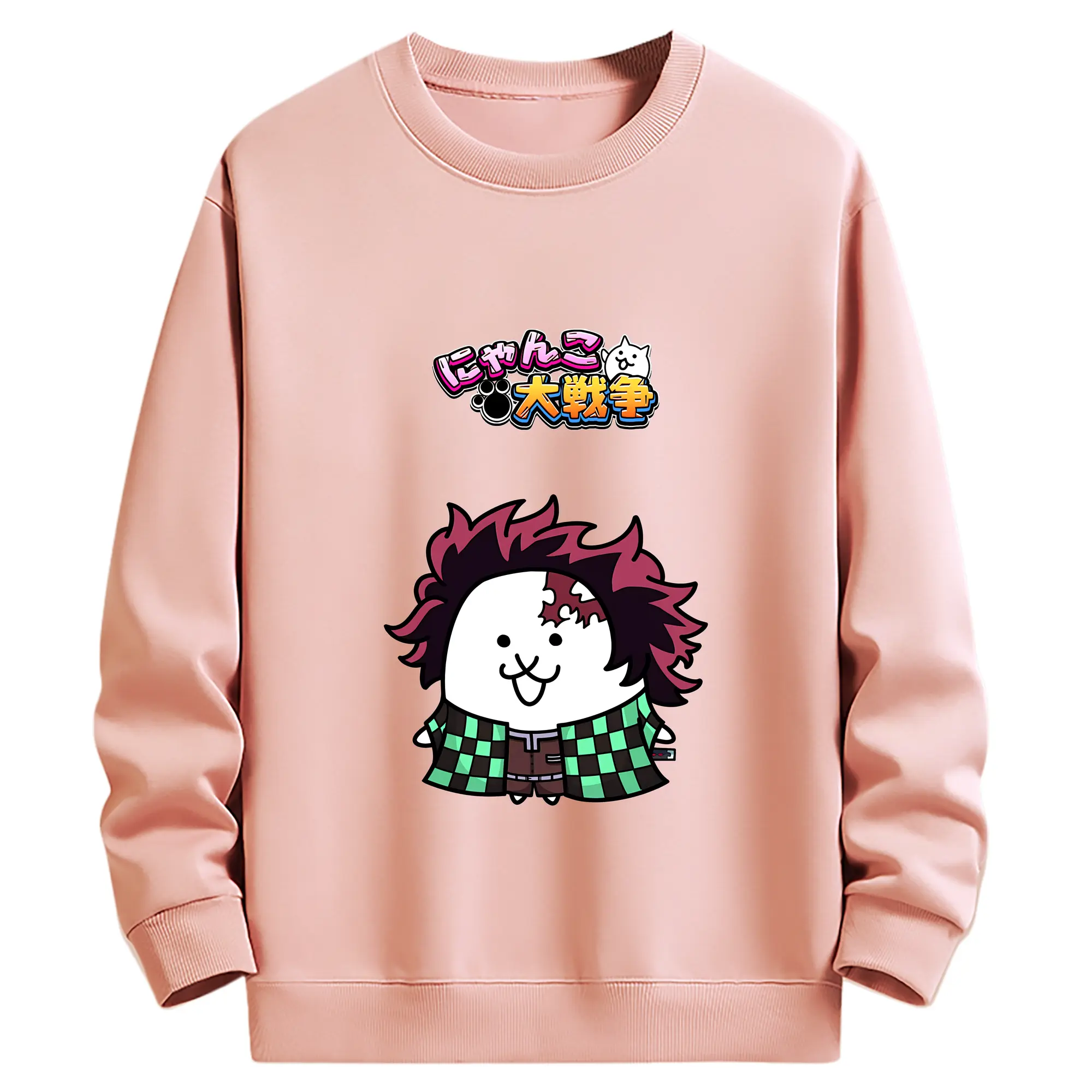 にゃんこ大戦争 グッズ - 薄手 クルーネック スウェット 裏毛260g · ポリエステル 春秋向け カジュアル 男女兼用 · トレーナー デイリー スポーツ 散歩に最適