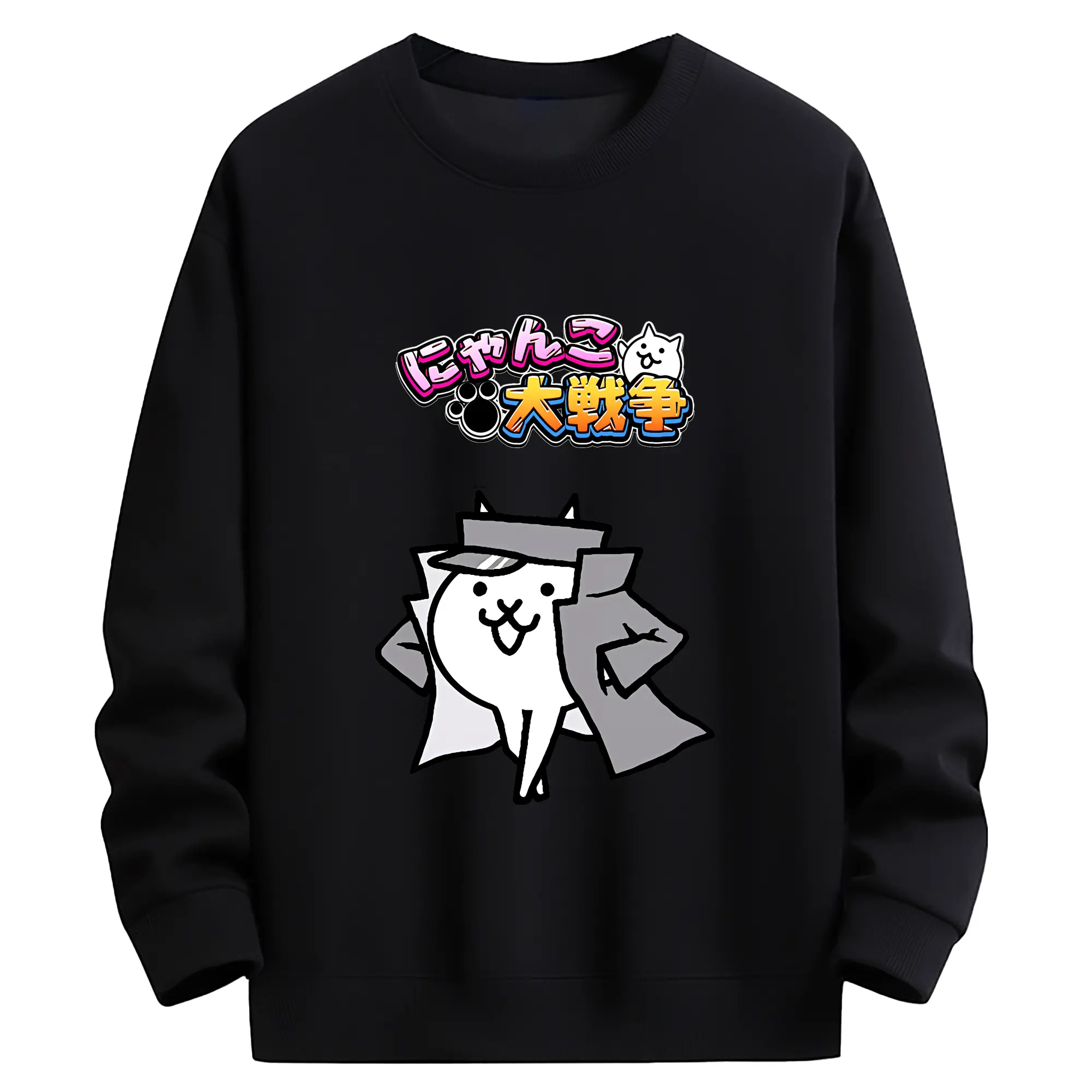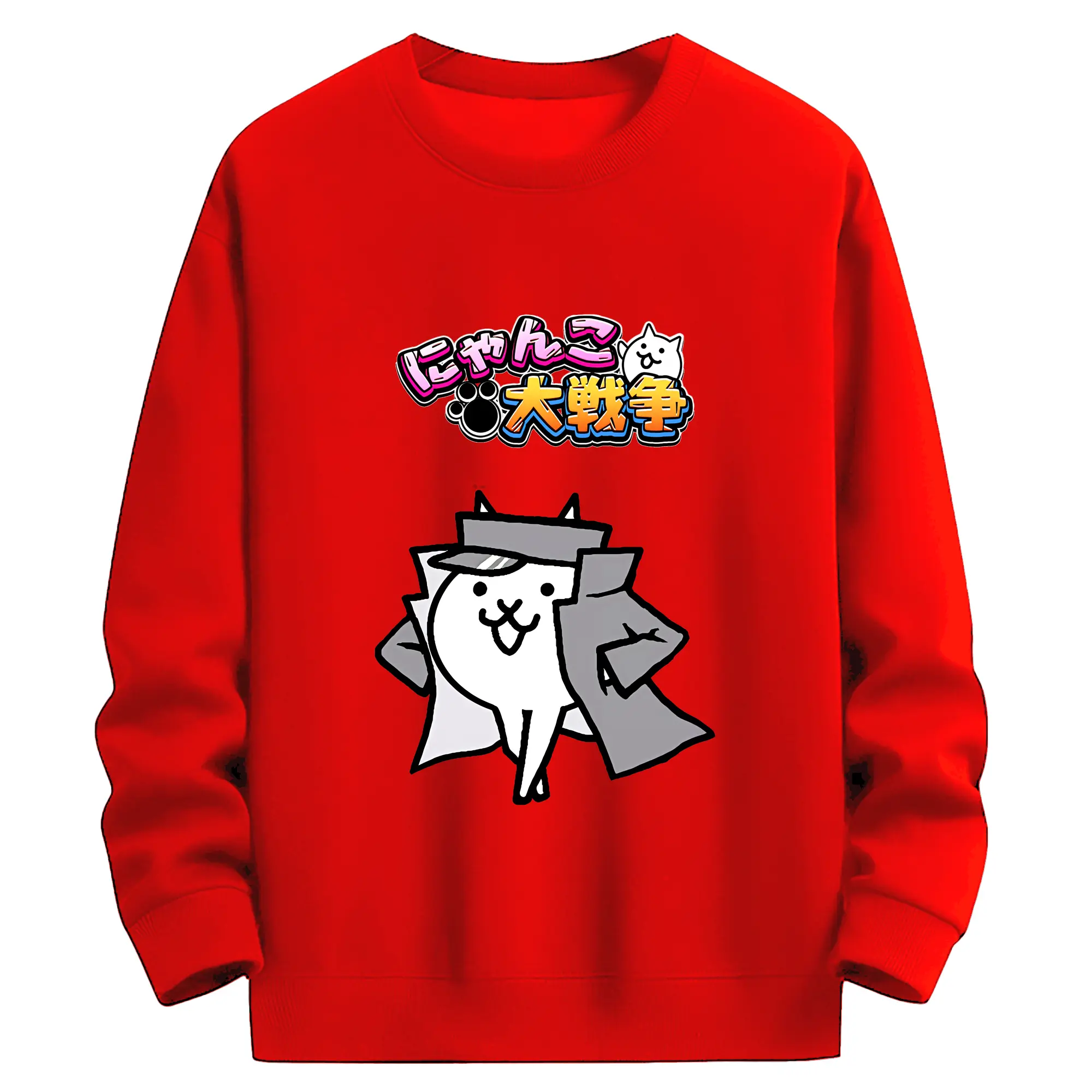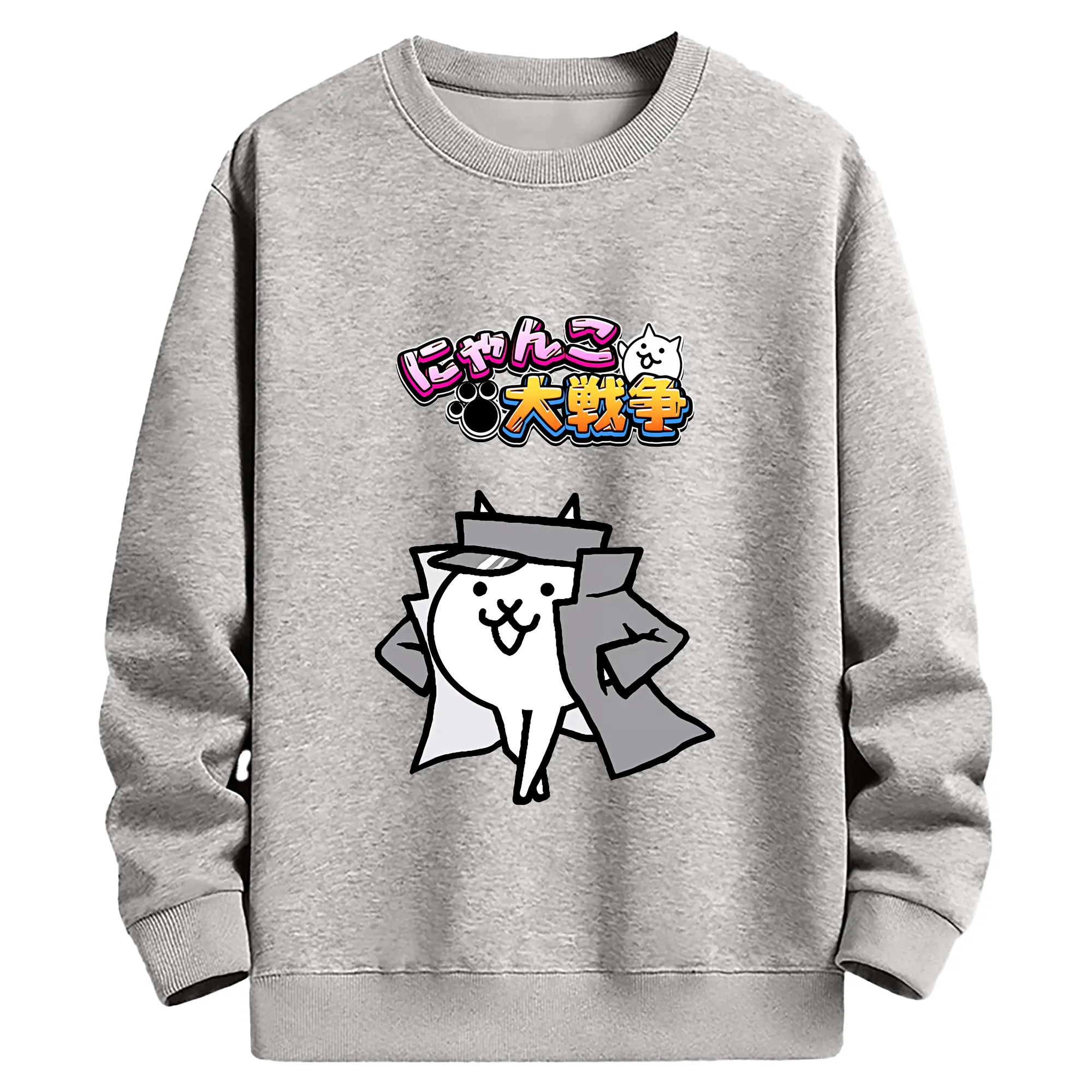 にゃんこ大戦争 グッズ - 高品質 クルーネック スウェット ・ コットン59% ポリエステル41% ・ ユニセックス 長袖 トレーナー ・ カジュアル デイリー スポーツ 散歩用