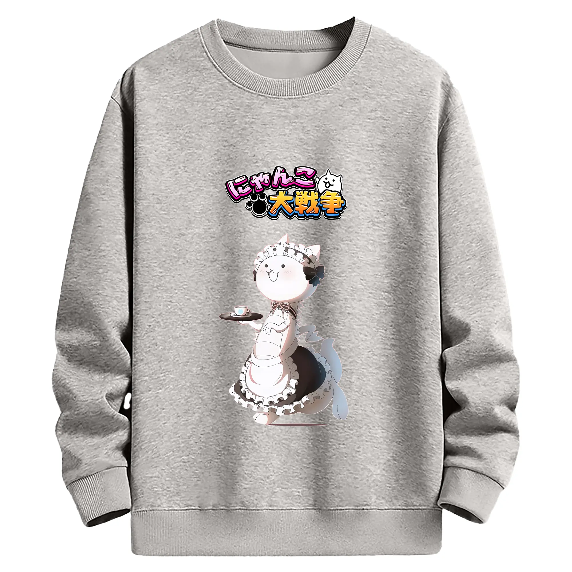 にゃんこ大戦争 グッズ - 高品質 クルーネック スウェット ・ コットン59% ポリエステル41% ・ ユニセックス 長袖 トレーナー ・ カジュアル デイリー スポーツ 散歩用