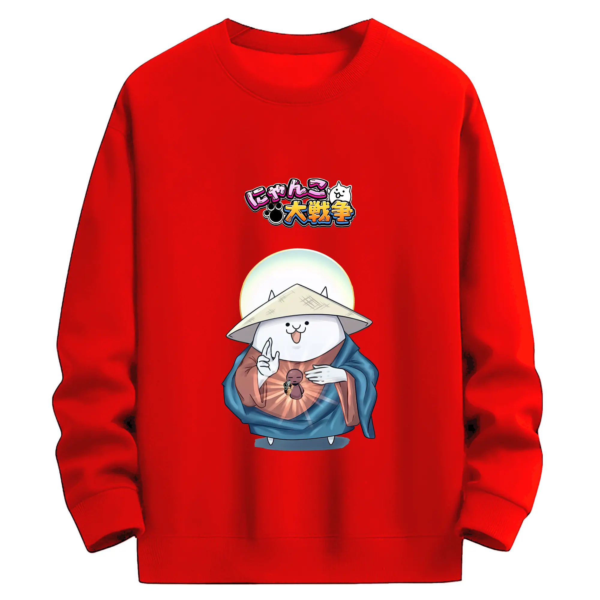 にゃんこ大戦争 グッズ - 高品質 クルーネック スウェット ・ コットン59% ポリエステル41% ・ ユニセックス 長袖 トレーナー ・ カジュアル デイリー スポーツ 散歩用
