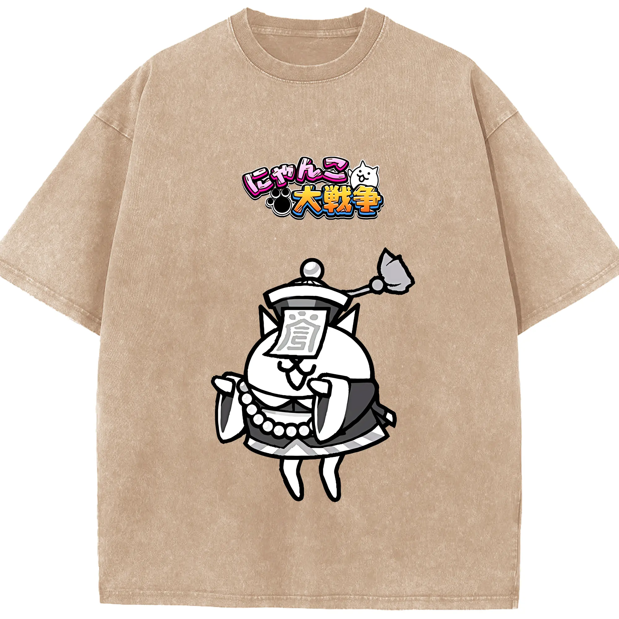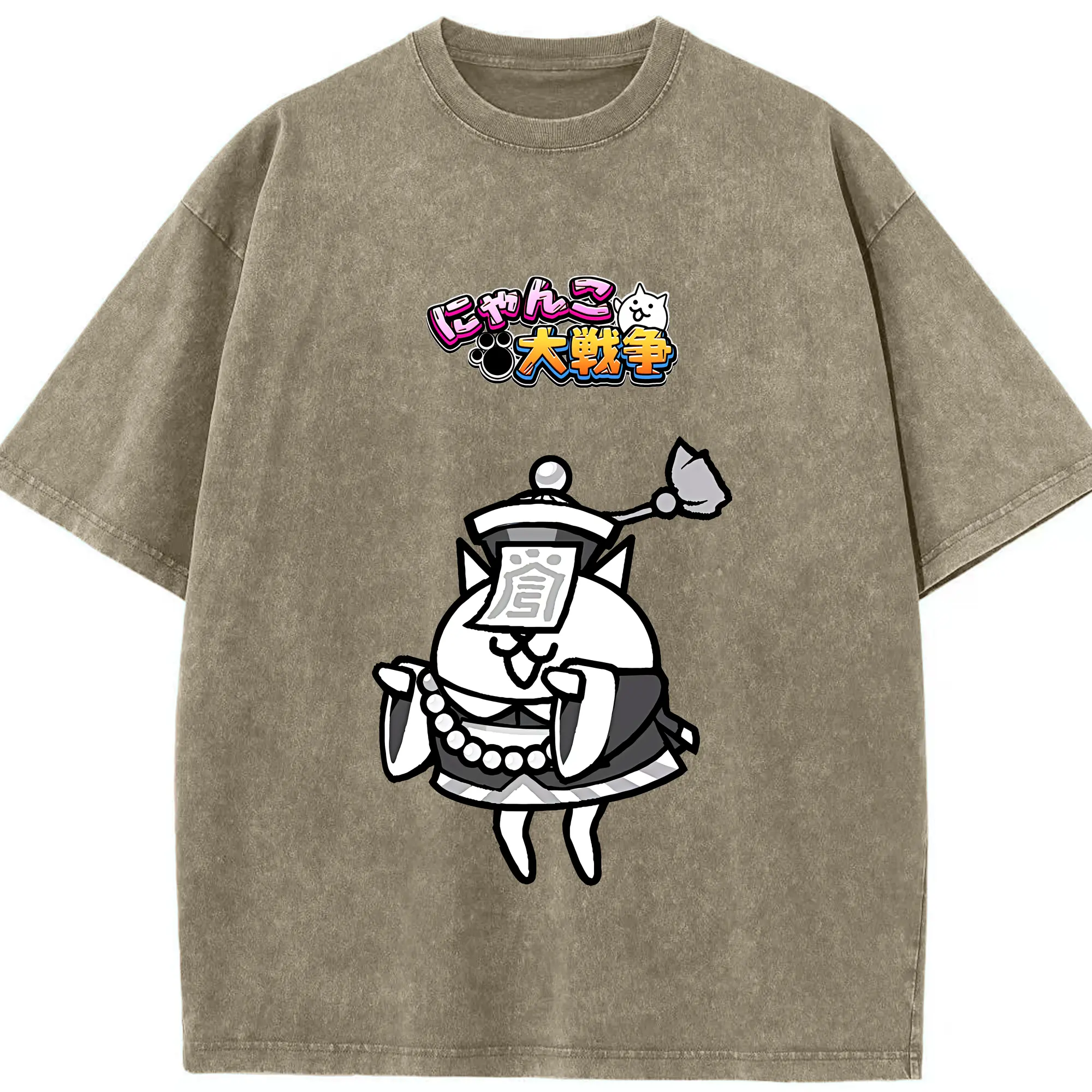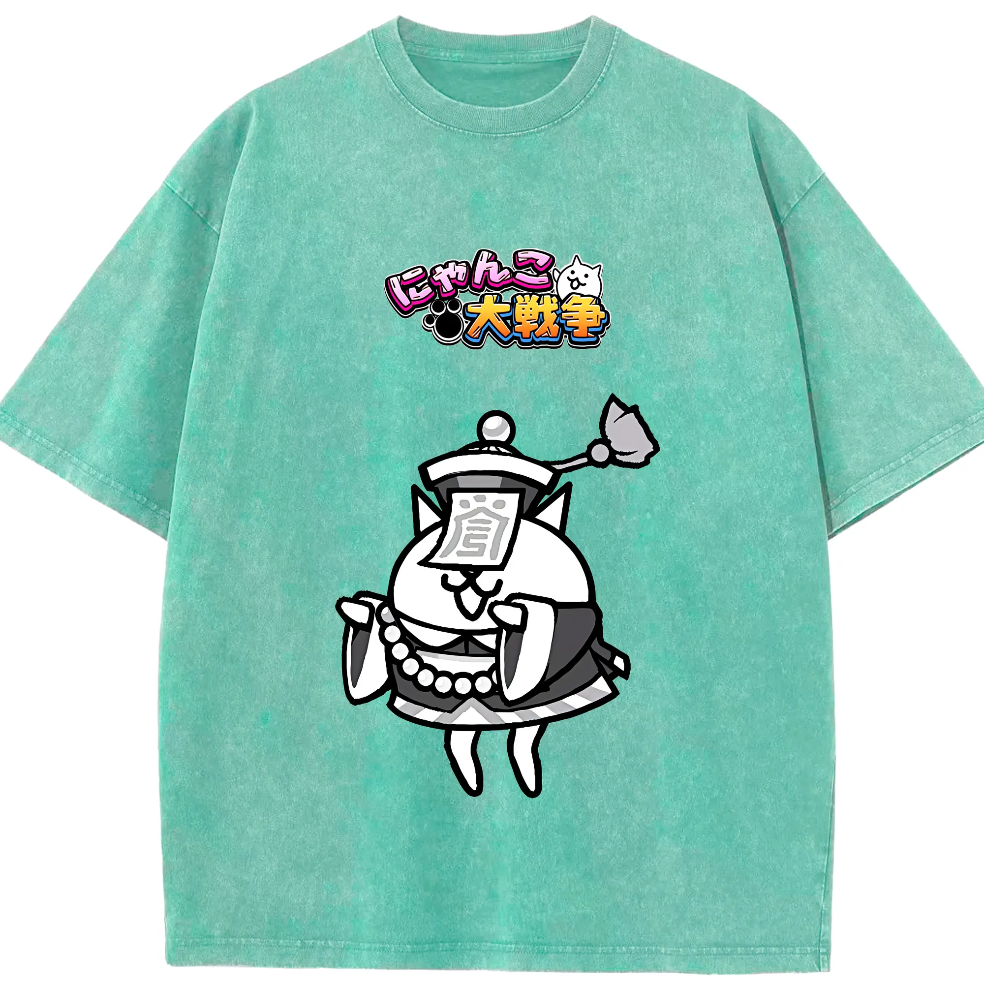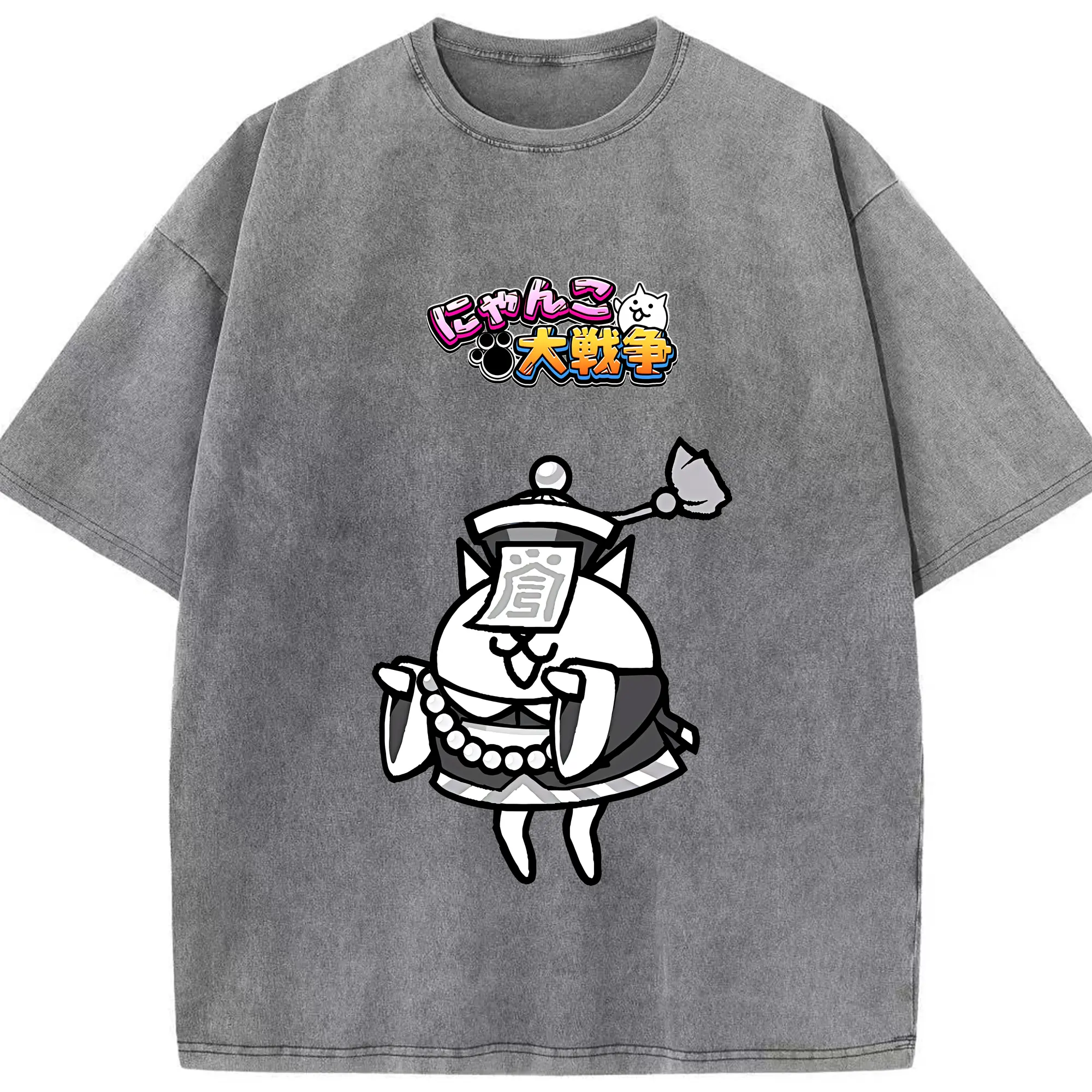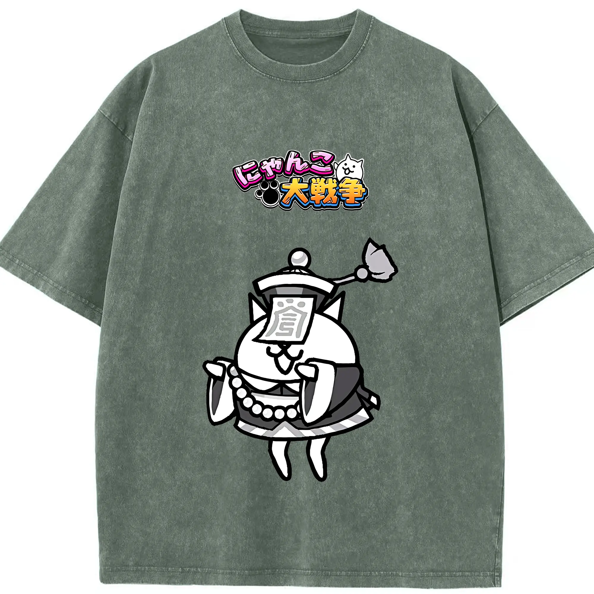 にゃんこ大戦争 グッズ - 綿100% ヴィンテージ風 半袖Tシャツ ・ 背面プリント ・ 柔らか肌触り ・ 通気性 快適 ・ スポーツ カジュアル 外出用