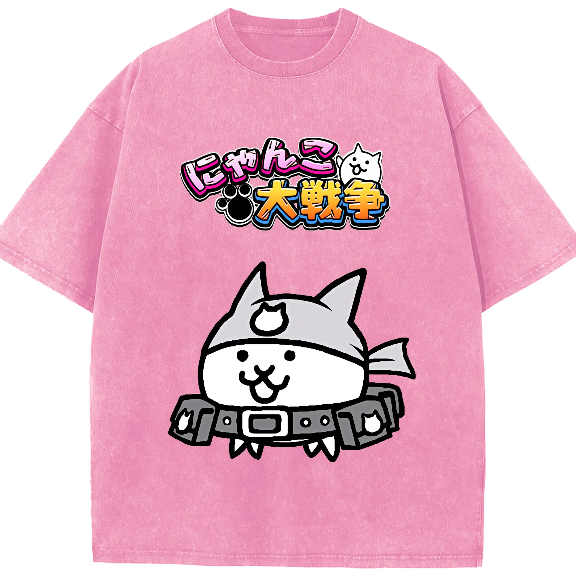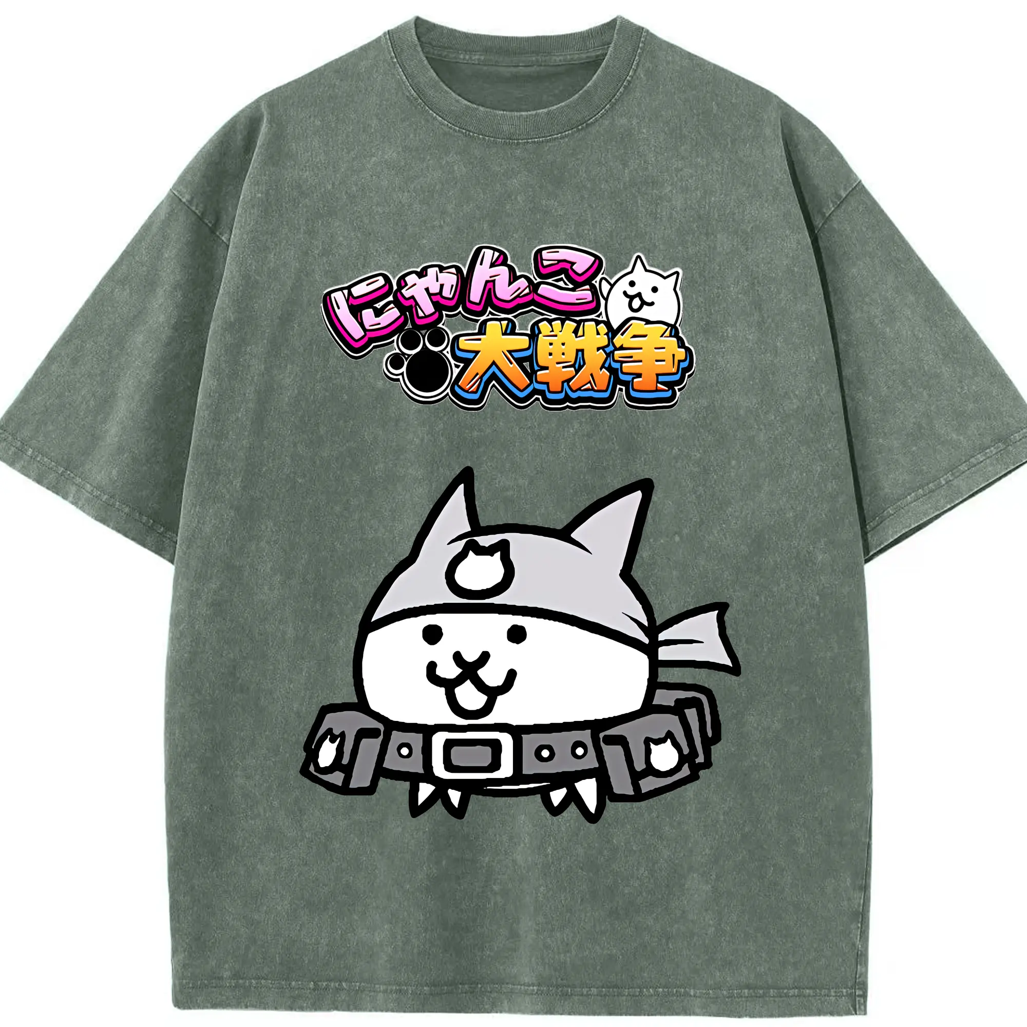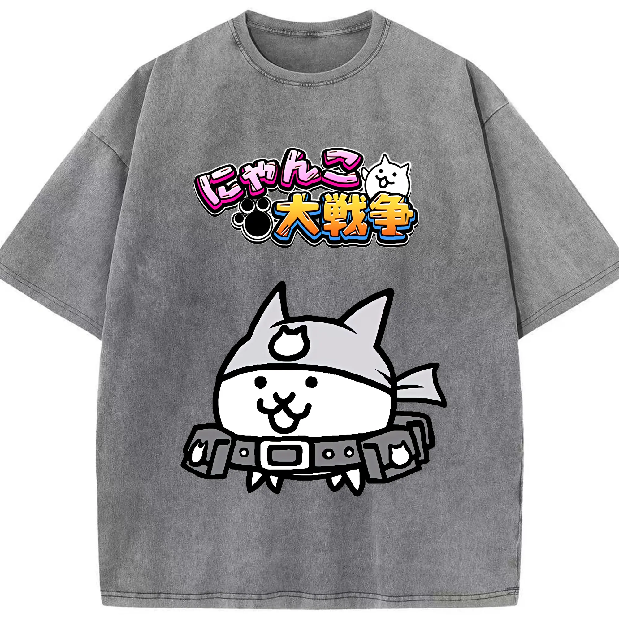 にゃんこ大戦争 グッズ - 綿100% ヴィンテージ風 半袖Tシャツ ・ 背面プリント ・ 柔らか肌触り ・ 通気性 快適 ・ スポーツ カジュアル 外出用