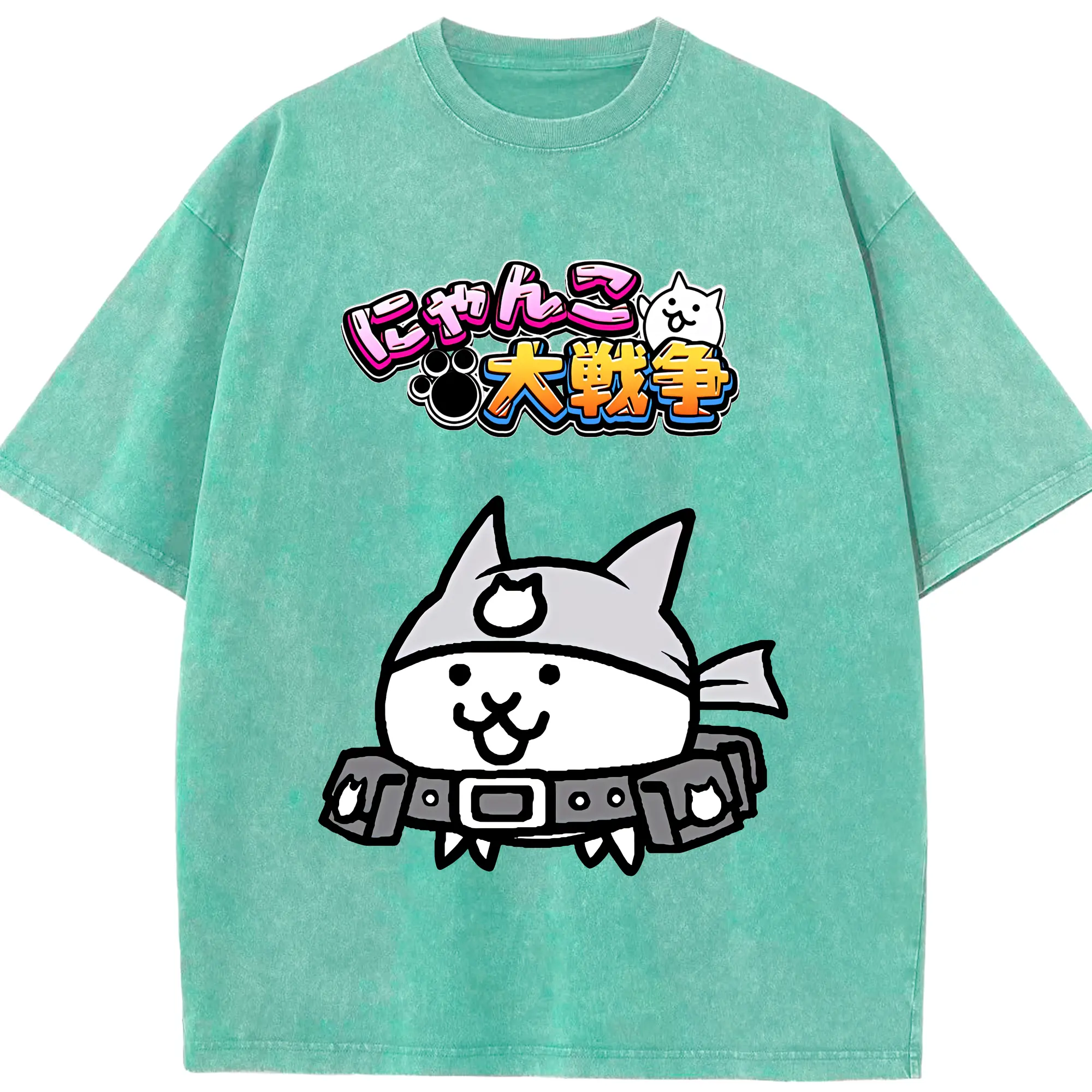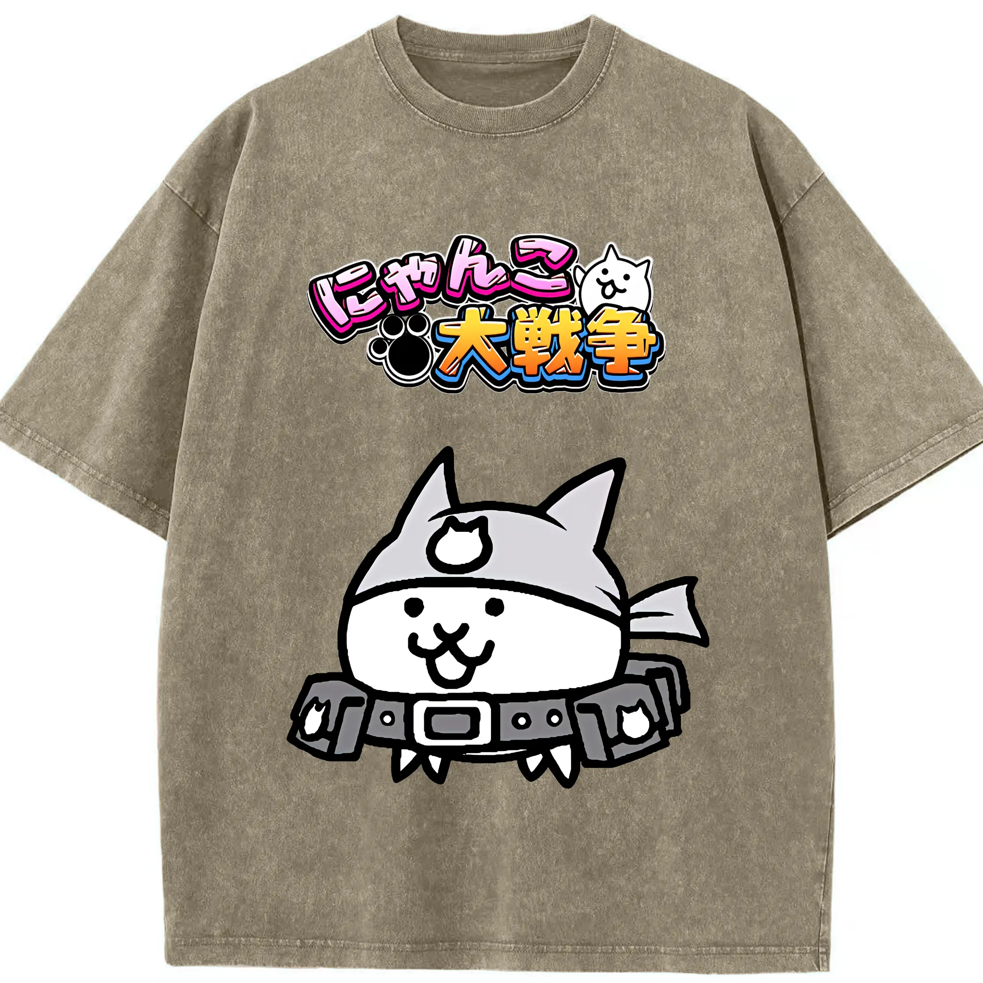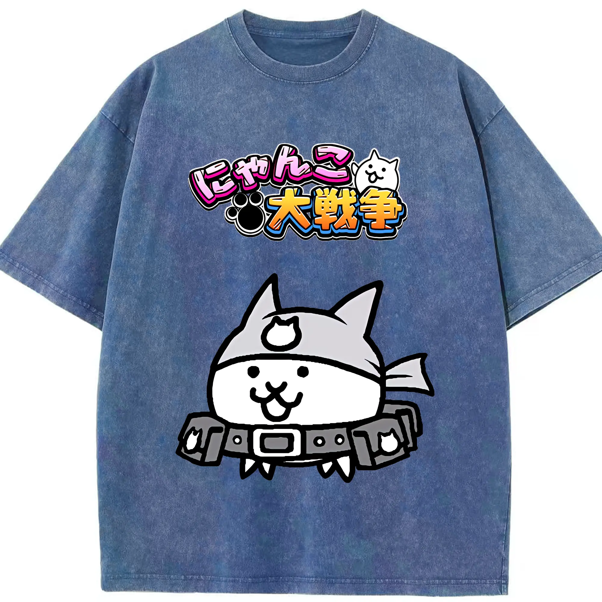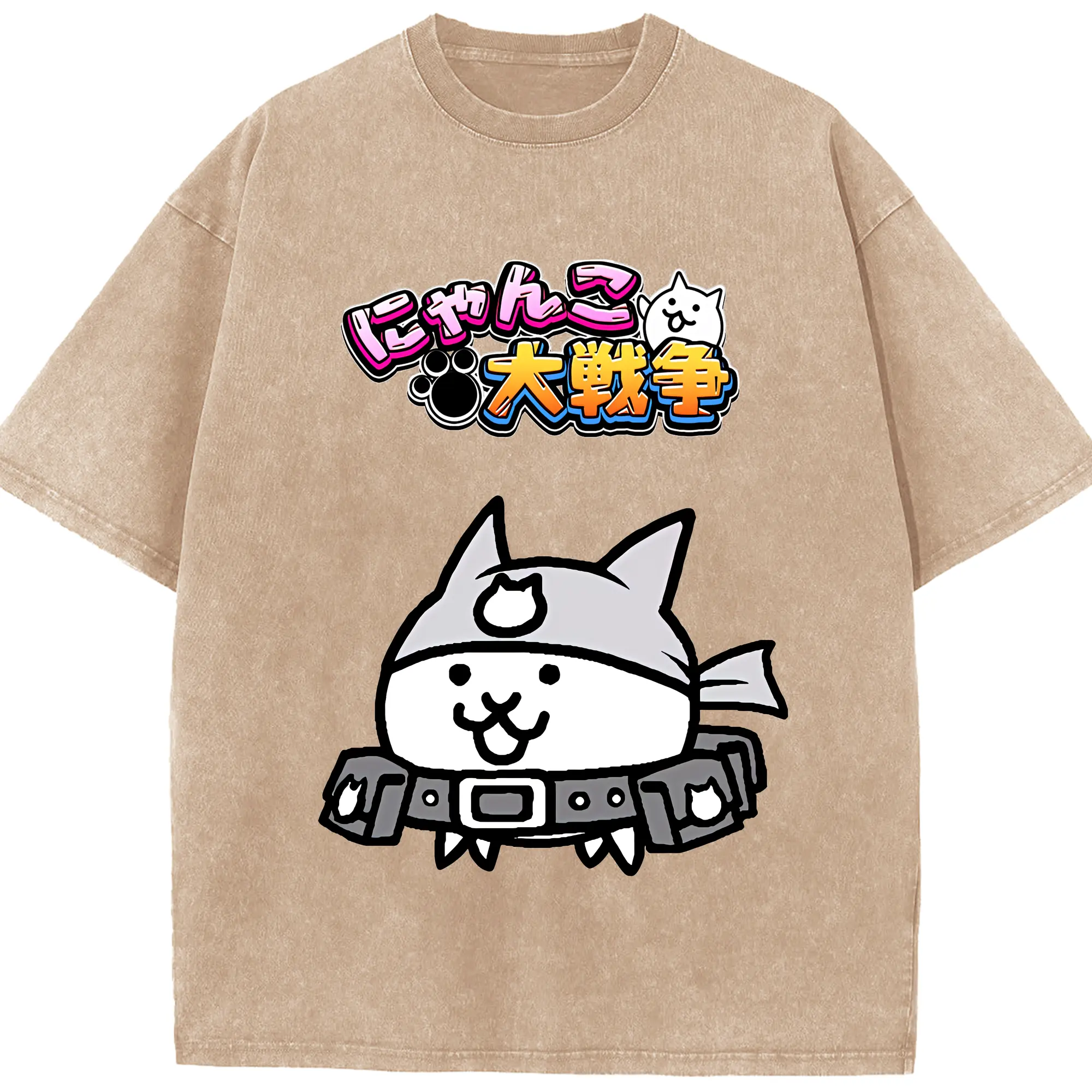 にゃんこ大戦争 グッズ - 綿100% ヴィンテージ風 半袖Tシャツ ・ 背面プリント ・ 柔らか肌触り ・ 通気性 快適 ・ スポーツ カジュアル 外出用