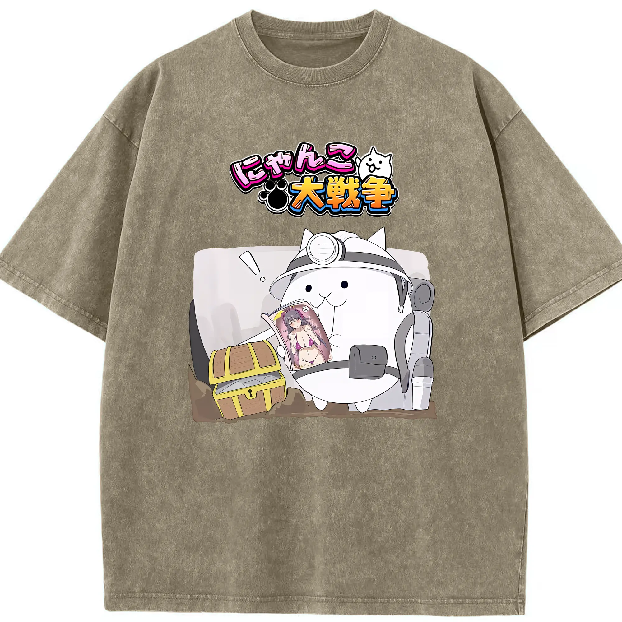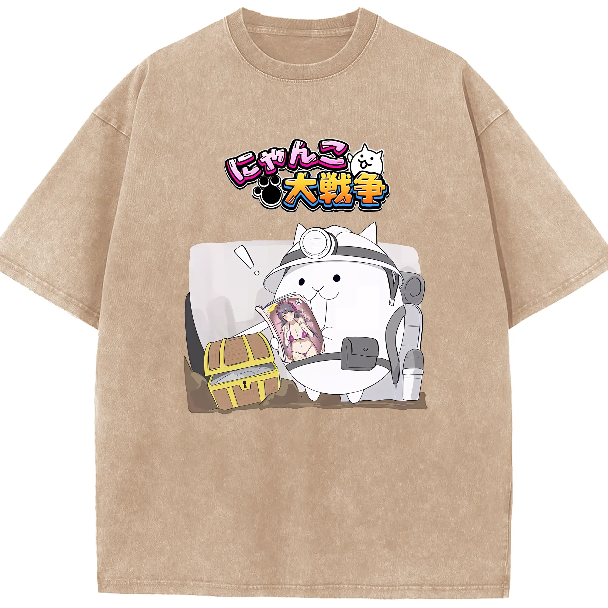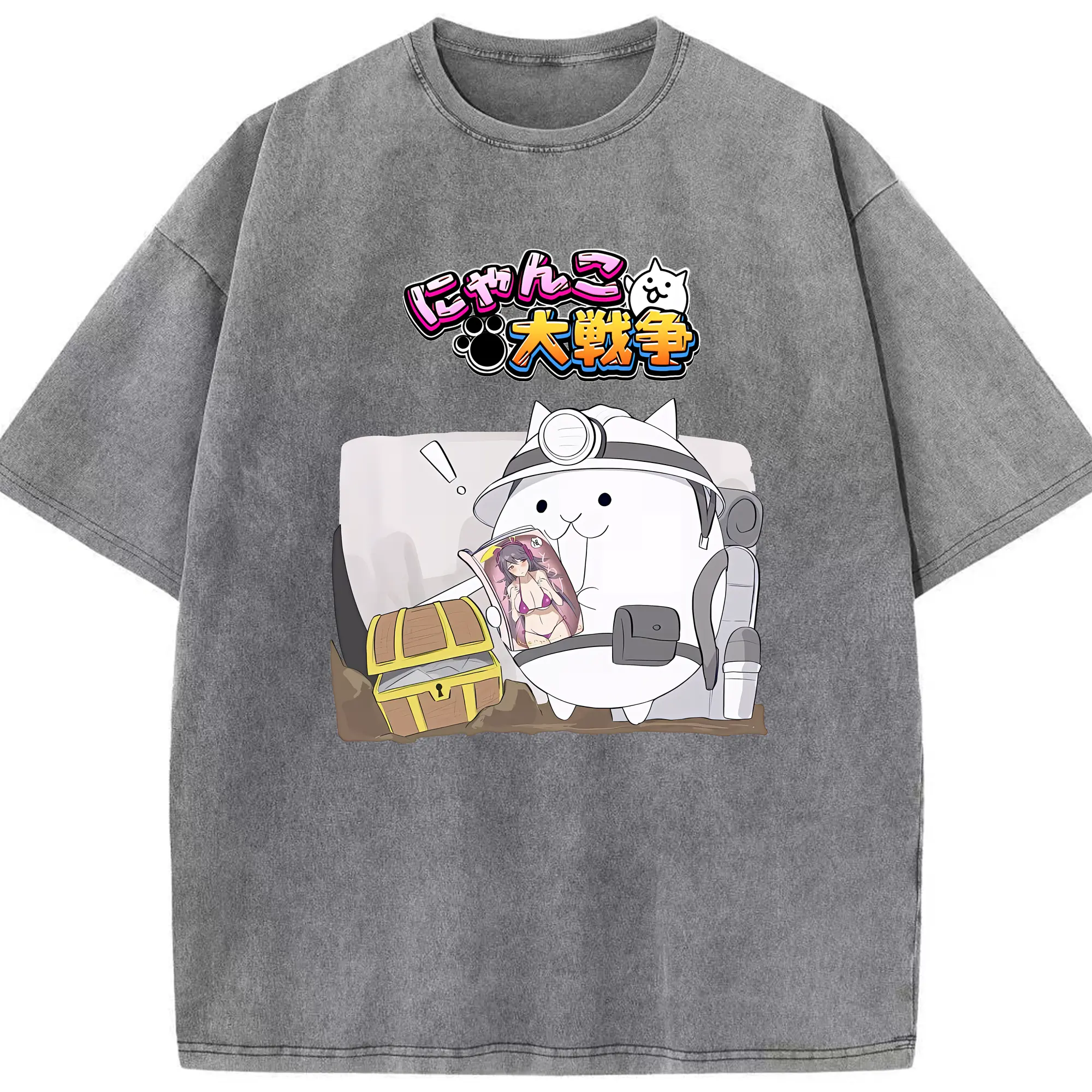 にゃんこ大戦争 グッズ - 綿100% ヴィンテージ風 半袖Tシャツ ・ 背面プリント ・ 柔らか肌触り ・ 通気性 快適 ・ スポーツ カジュアル 外出用