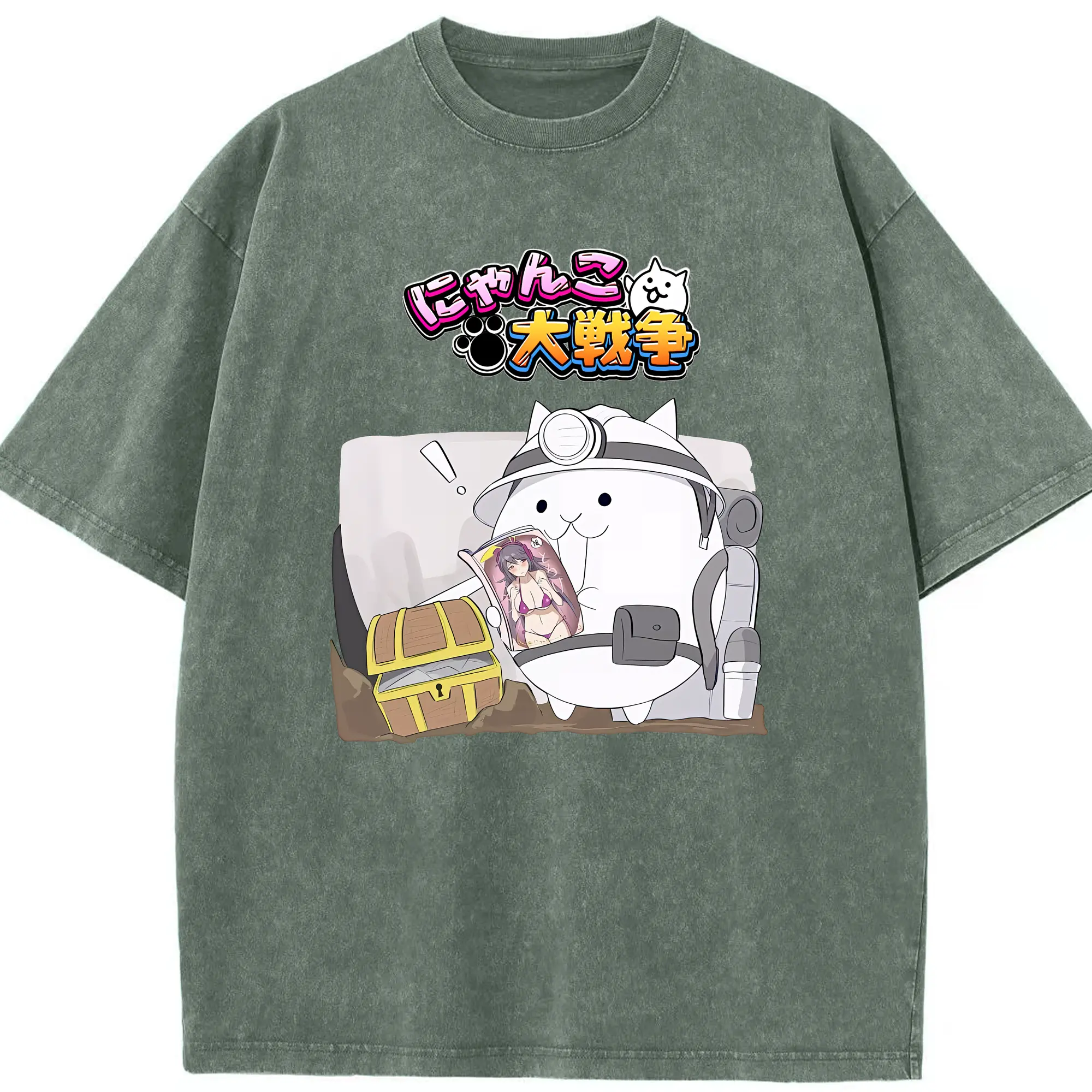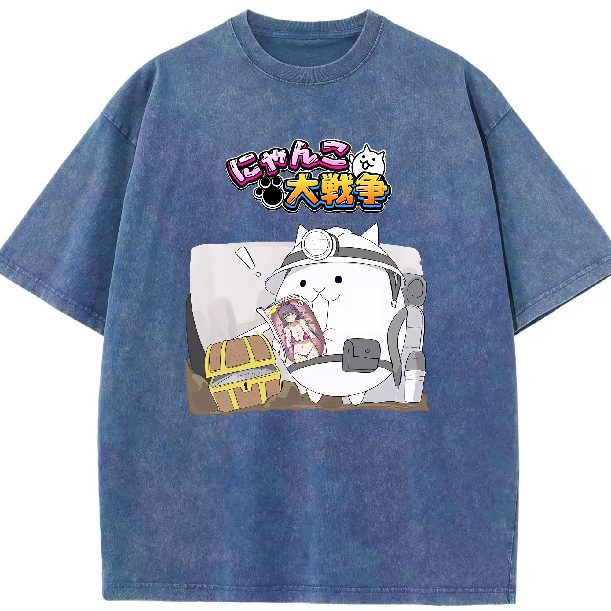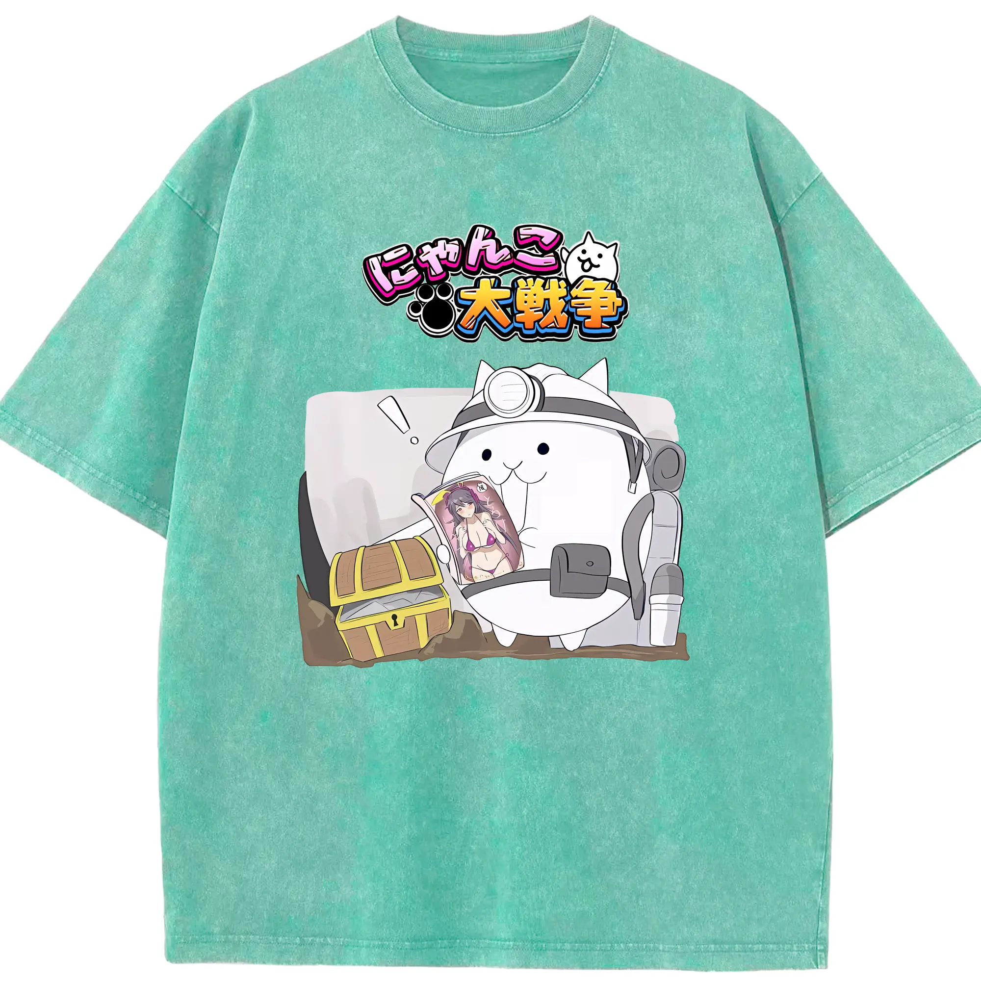 にゃんこ大戦争 グッズ - 綿100% ヴィンテージ風 半袖Tシャツ ・ 背面プリント ・ 柔らか肌触り ・ 通気性 快適 ・ スポーツ カジュアル 外出用