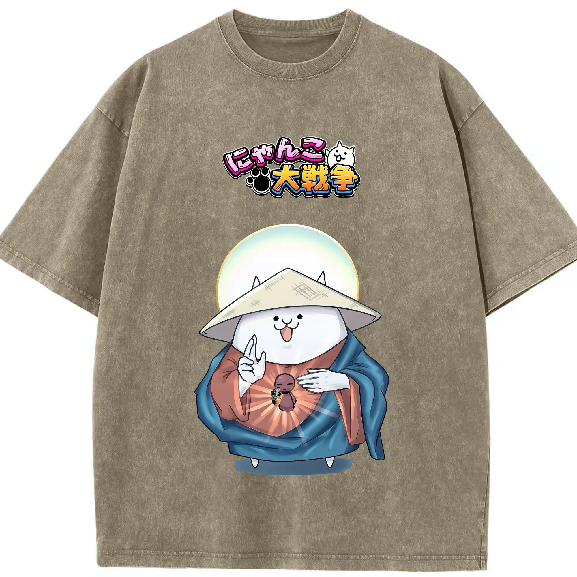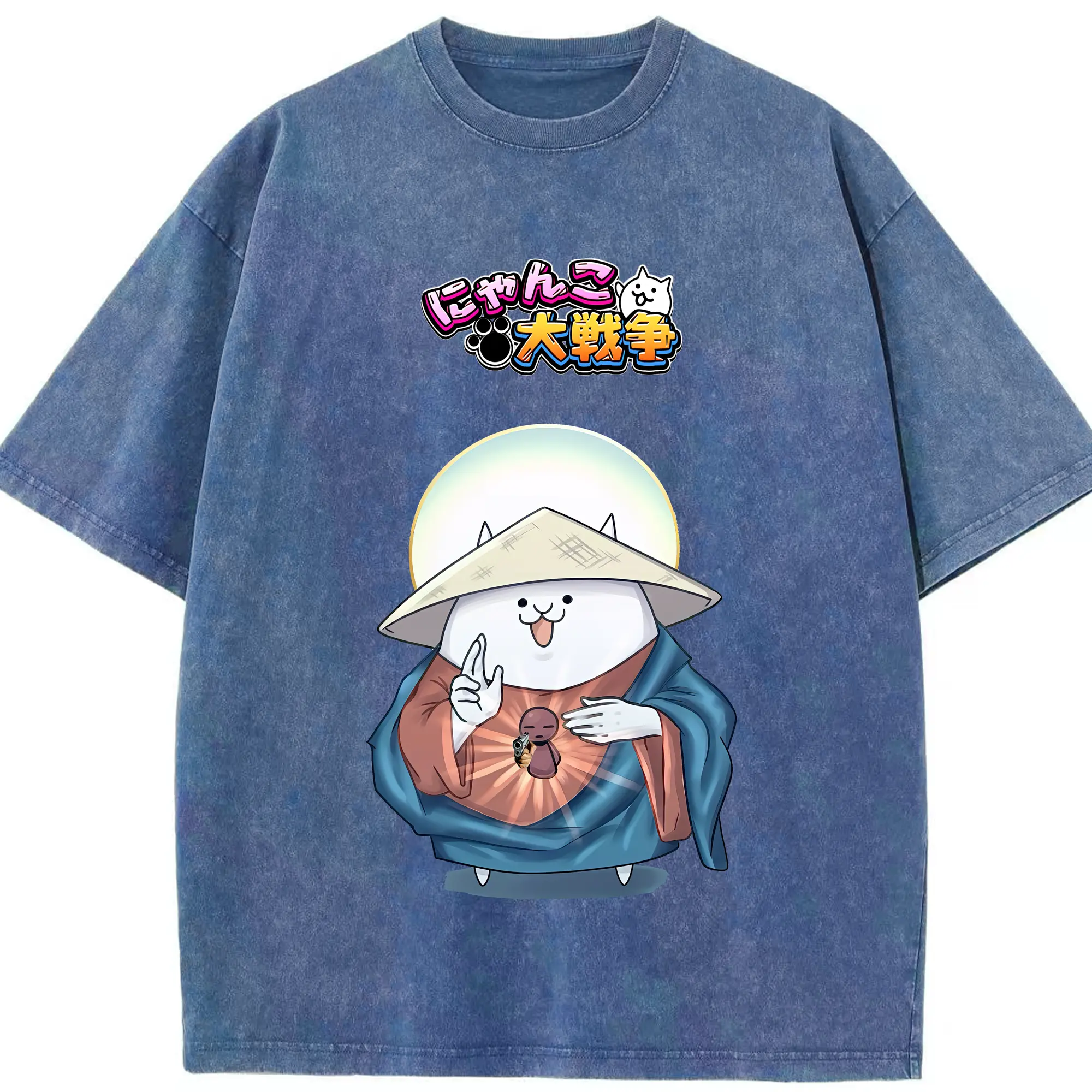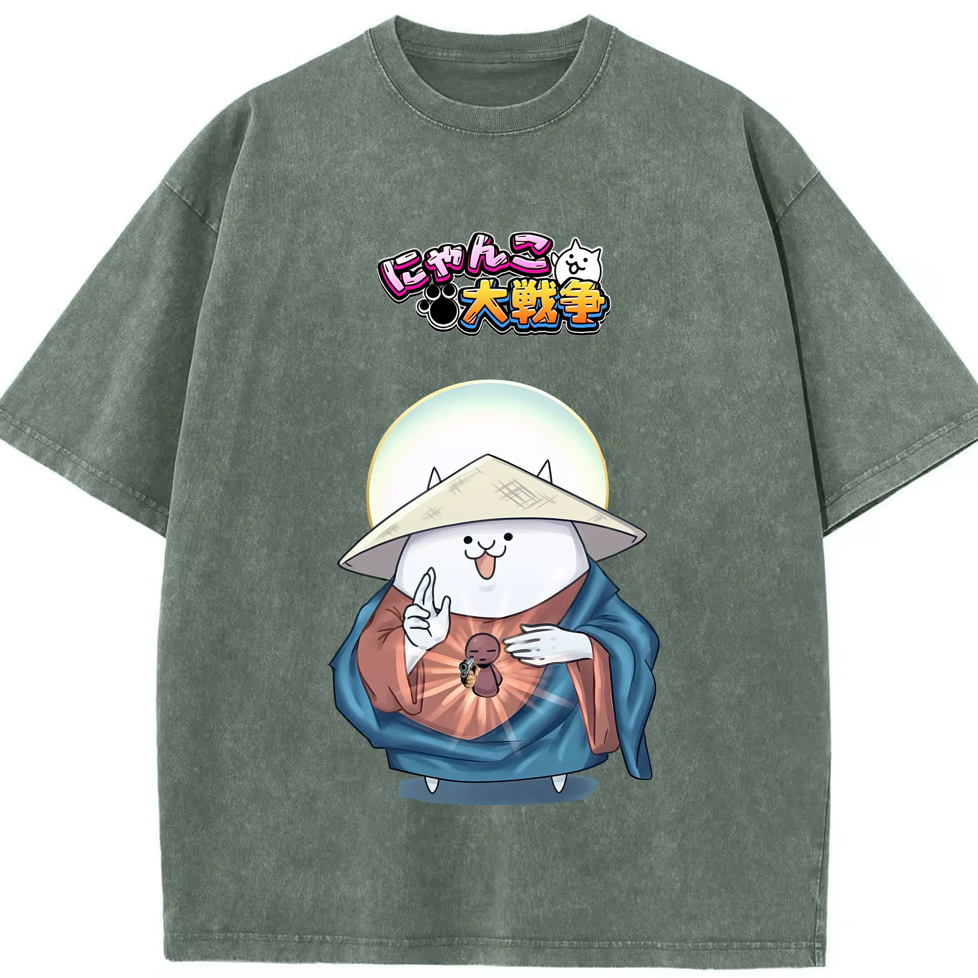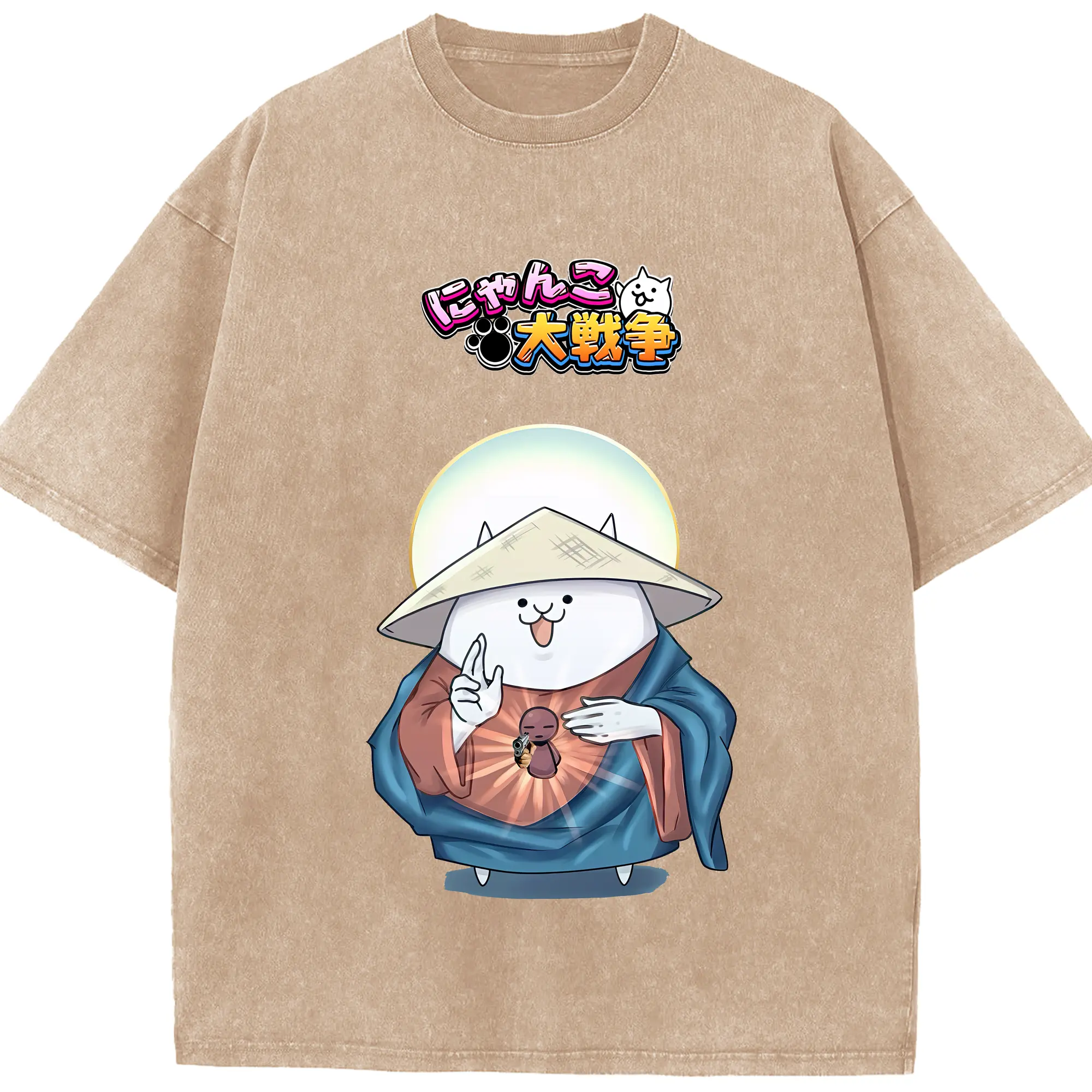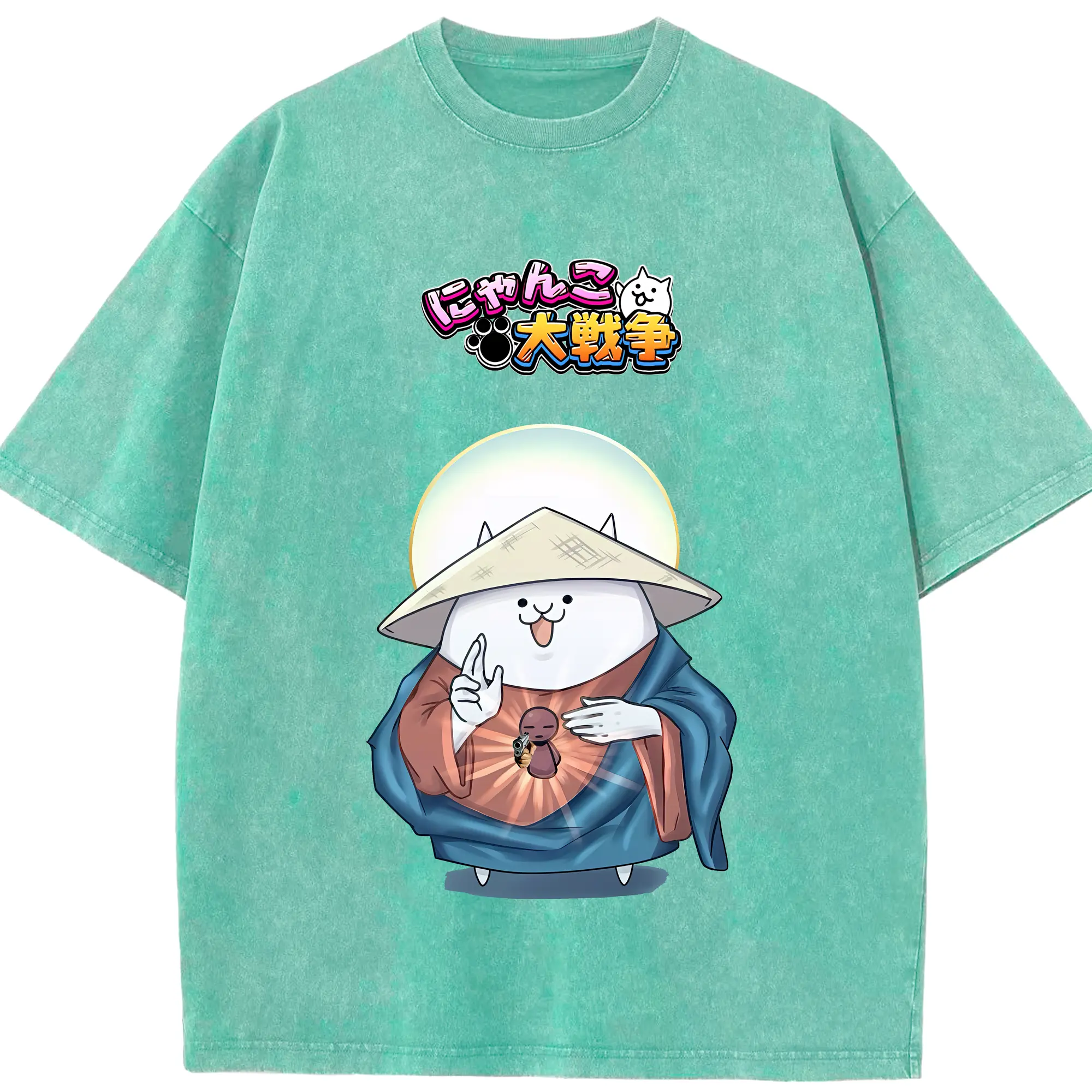 にゃんこ大戦争 グッズ - 綿100% ヴィンテージ風 半袖Tシャツ ・ 背面プリント ・ 柔らか肌触り ・ 通気性 快適 ・ スポーツ カジュアル 外出用