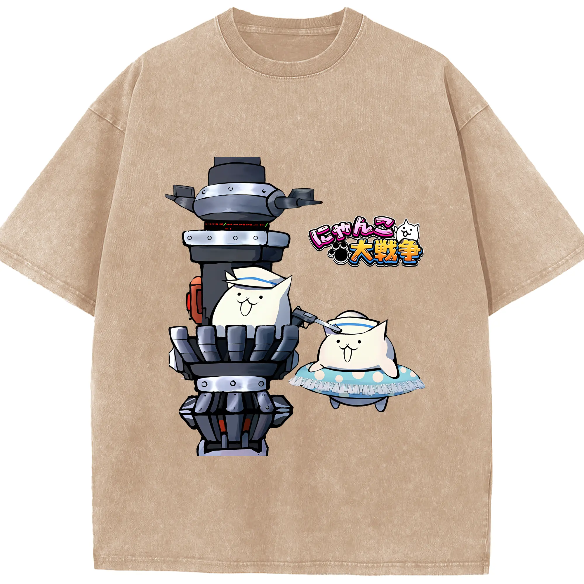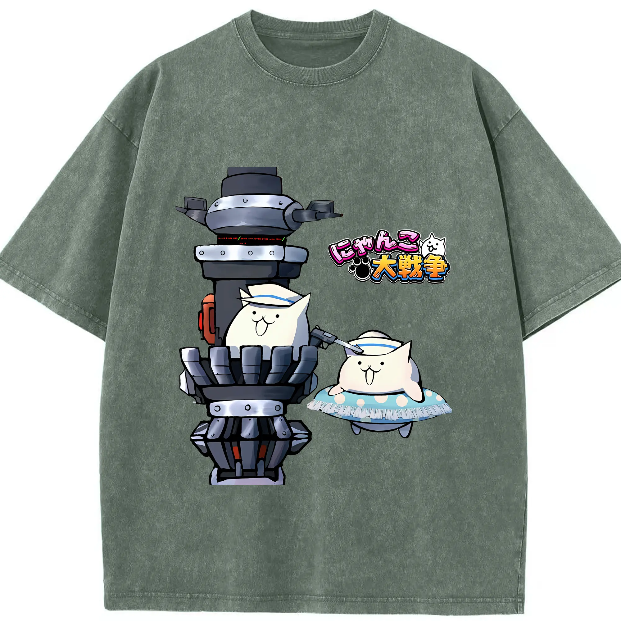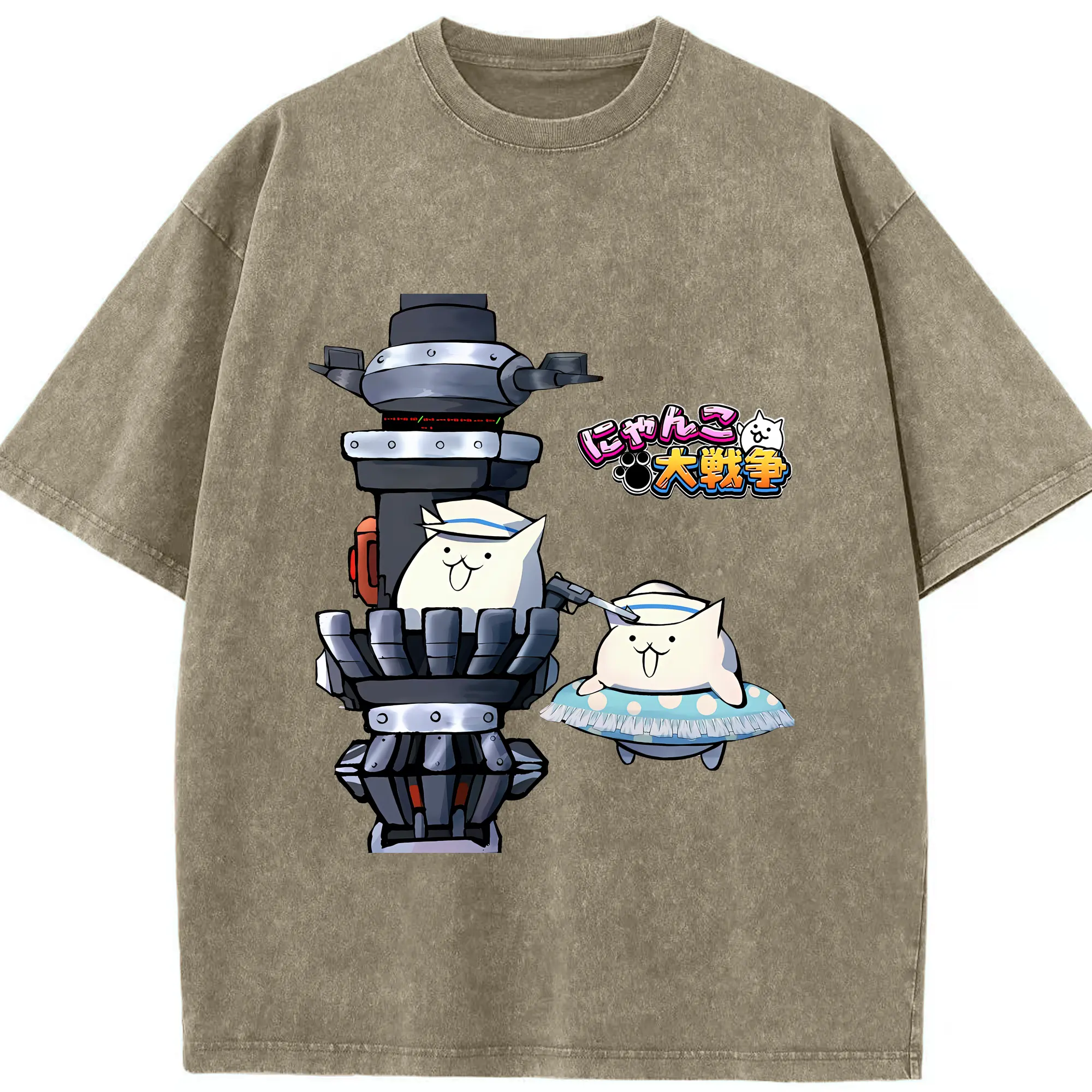 にゃんこ大戦争 グッズ - 綿100% ヴィンテージ風 半袖Tシャツ ・ 背面プリント ・ 柔らか肌触り ・ 通気性 快適 ・ スポーツ カジュアル 外出用