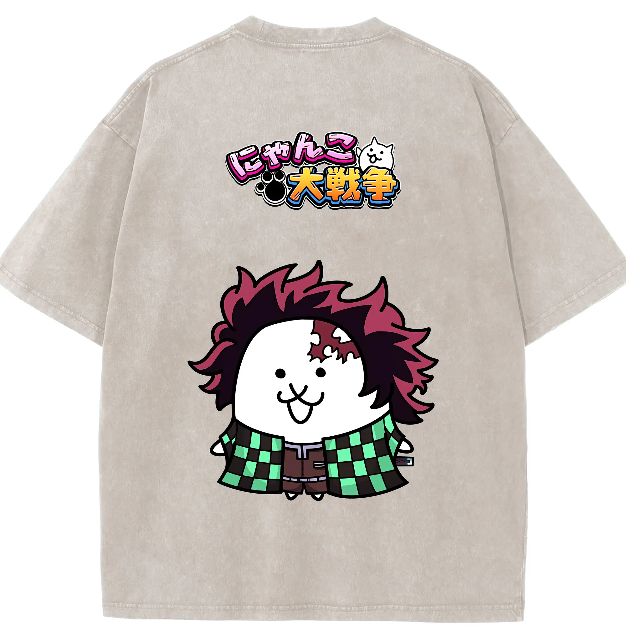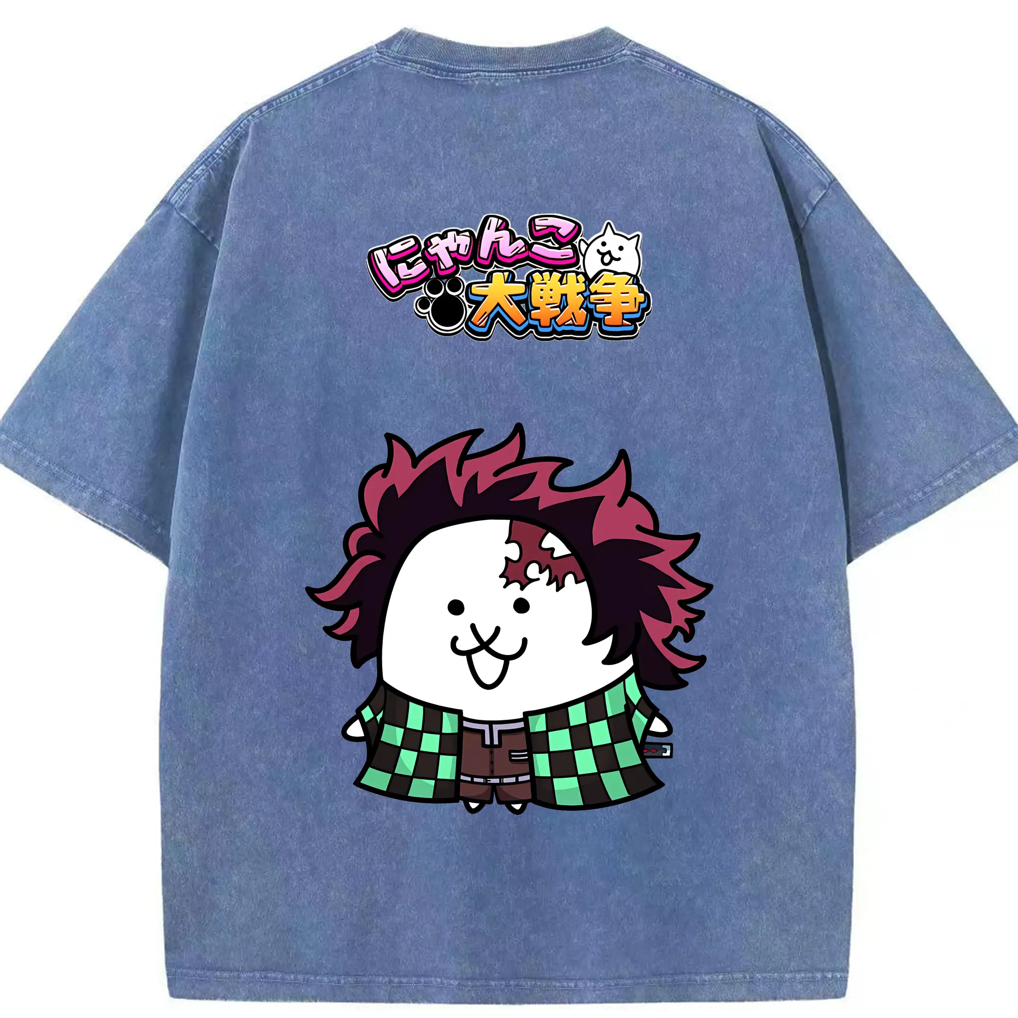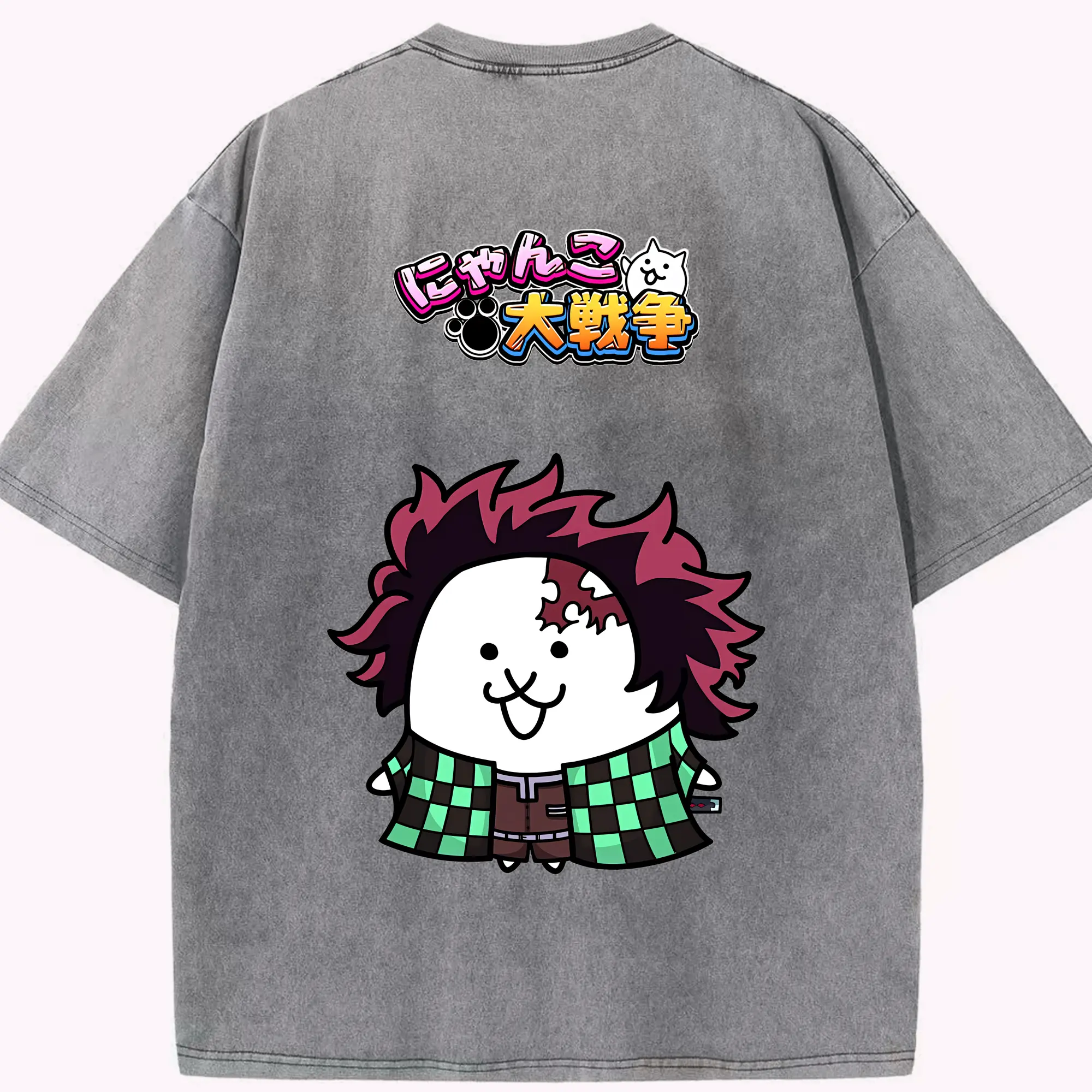 にゃんこ大戦争 グッズ - 綿100% ヴィンテージ風 半袖Tシャツ ・ フロントプリント ・ 柔らか肌触り ・ 通気性 快適 ・ スポーツ カジュアル 外出用