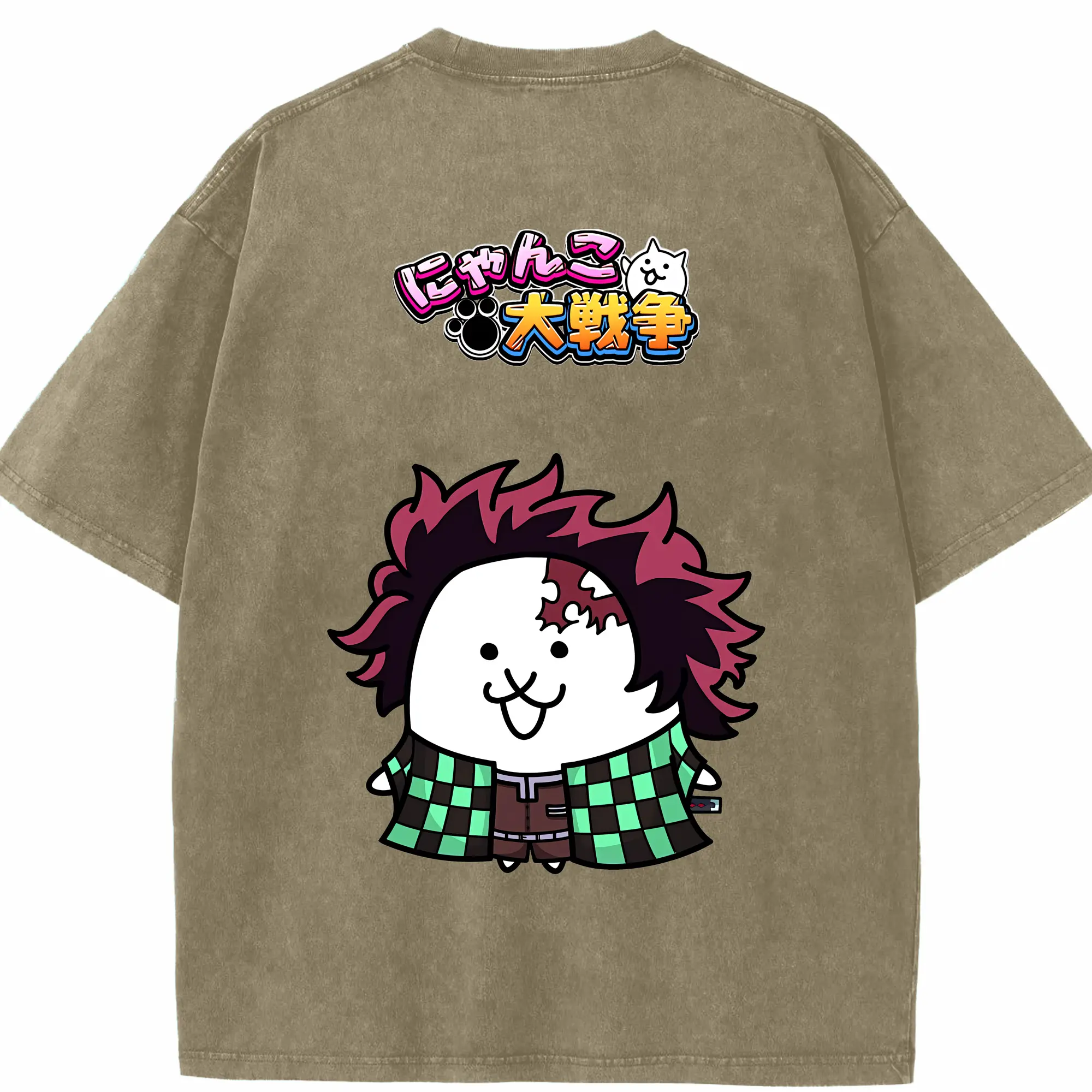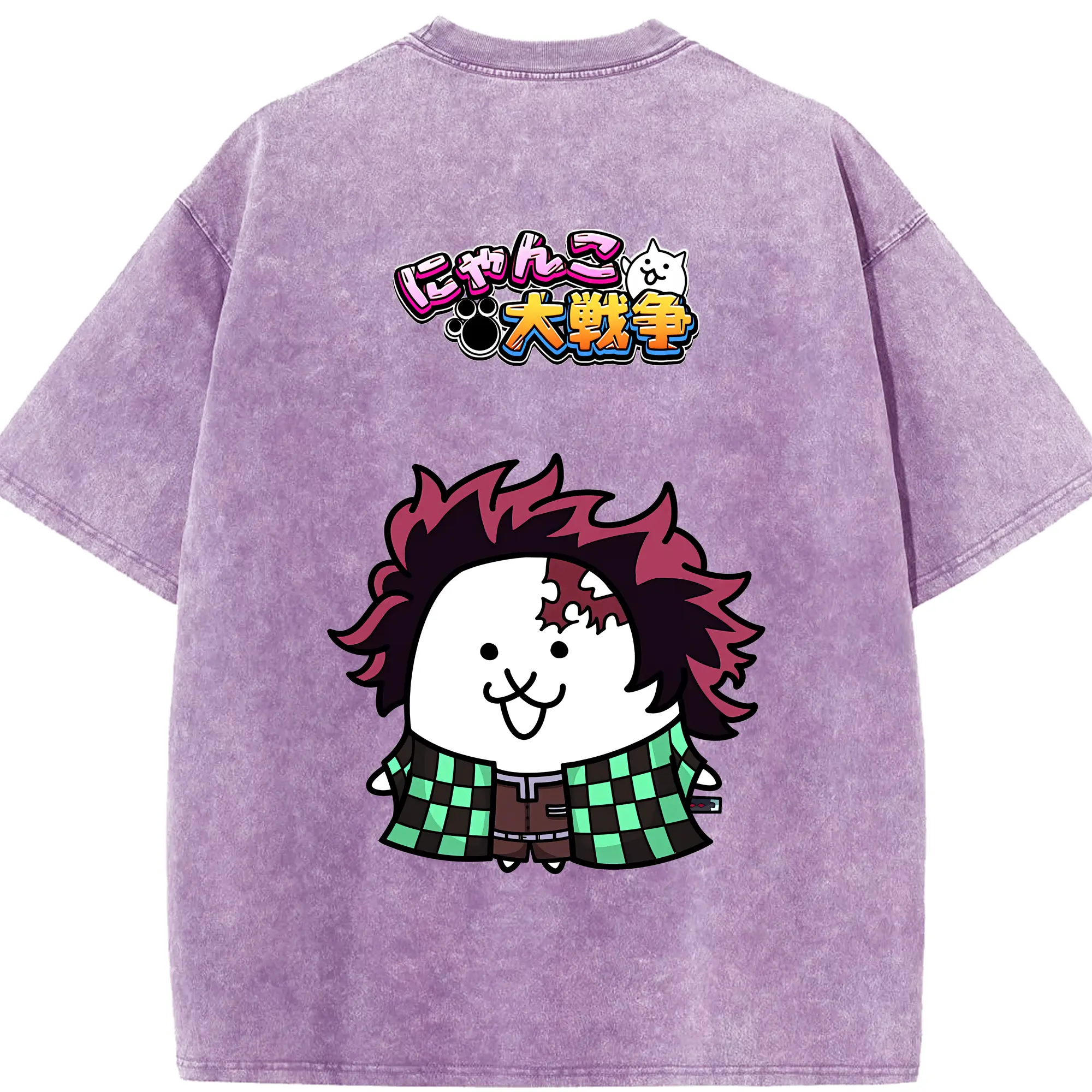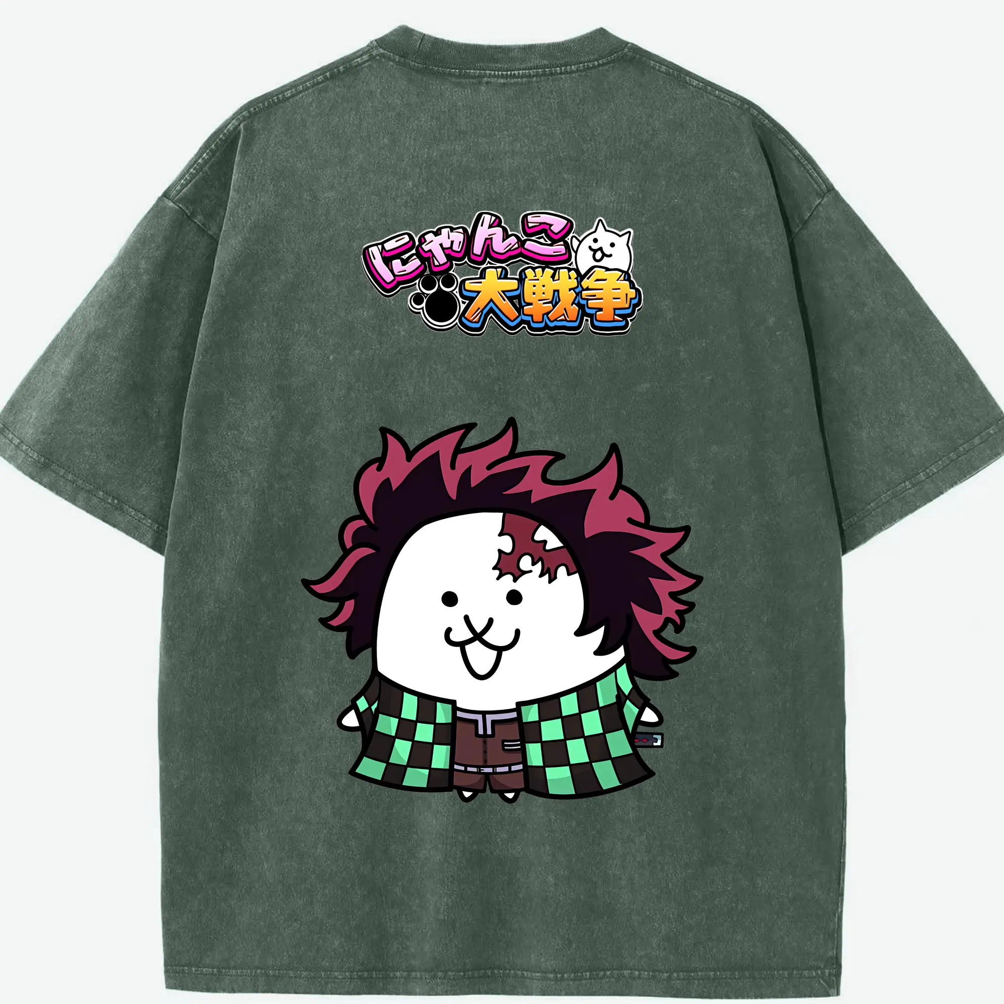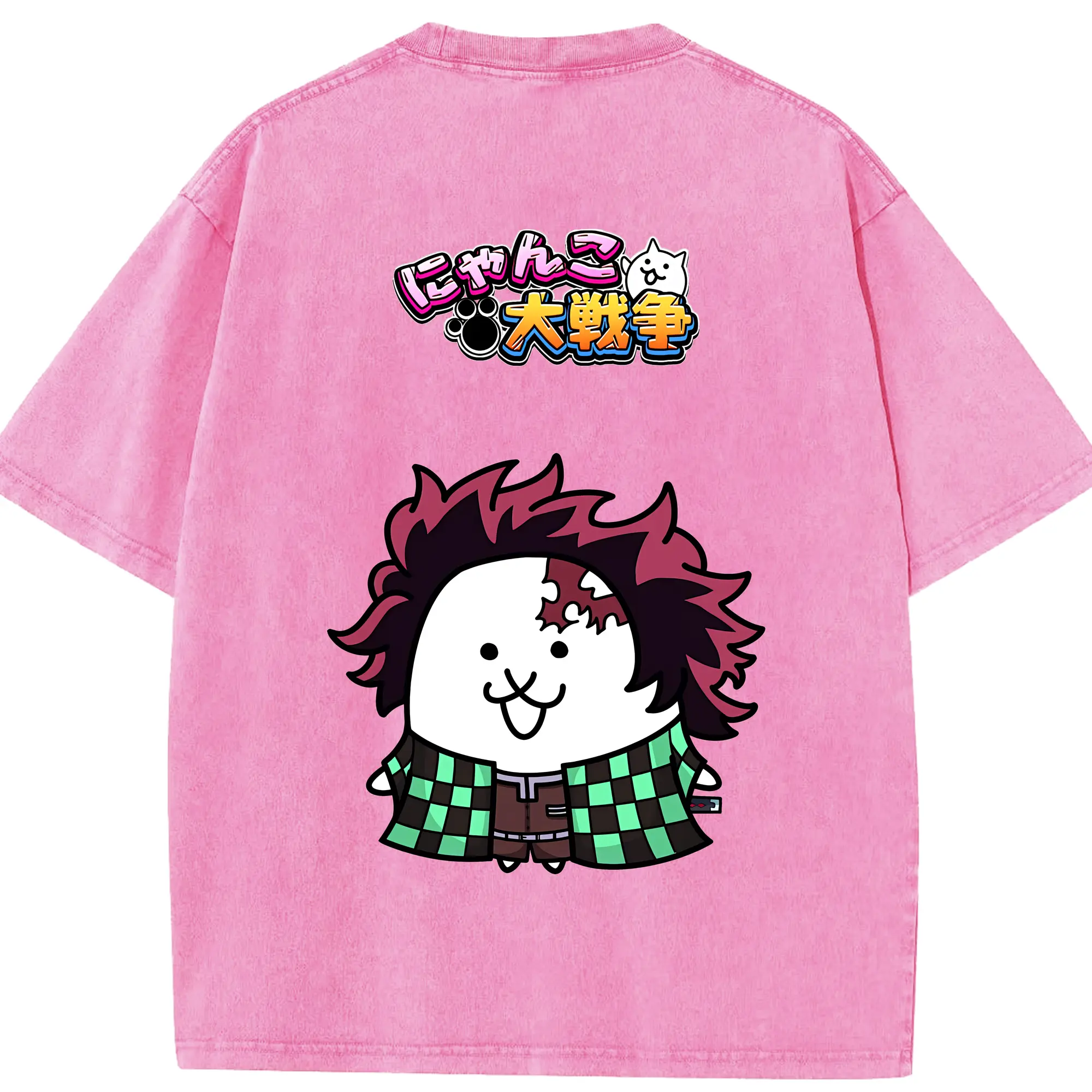 にゃんこ大戦争 グッズ - 綿100% ヴィンテージ風 半袖Tシャツ ・ フロントプリント ・ 柔らか肌触り ・ 通気性 快適 ・ スポーツ カジュアル 外出用