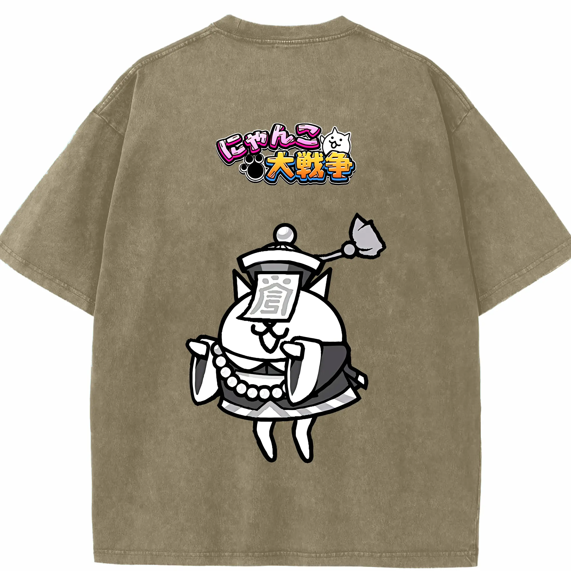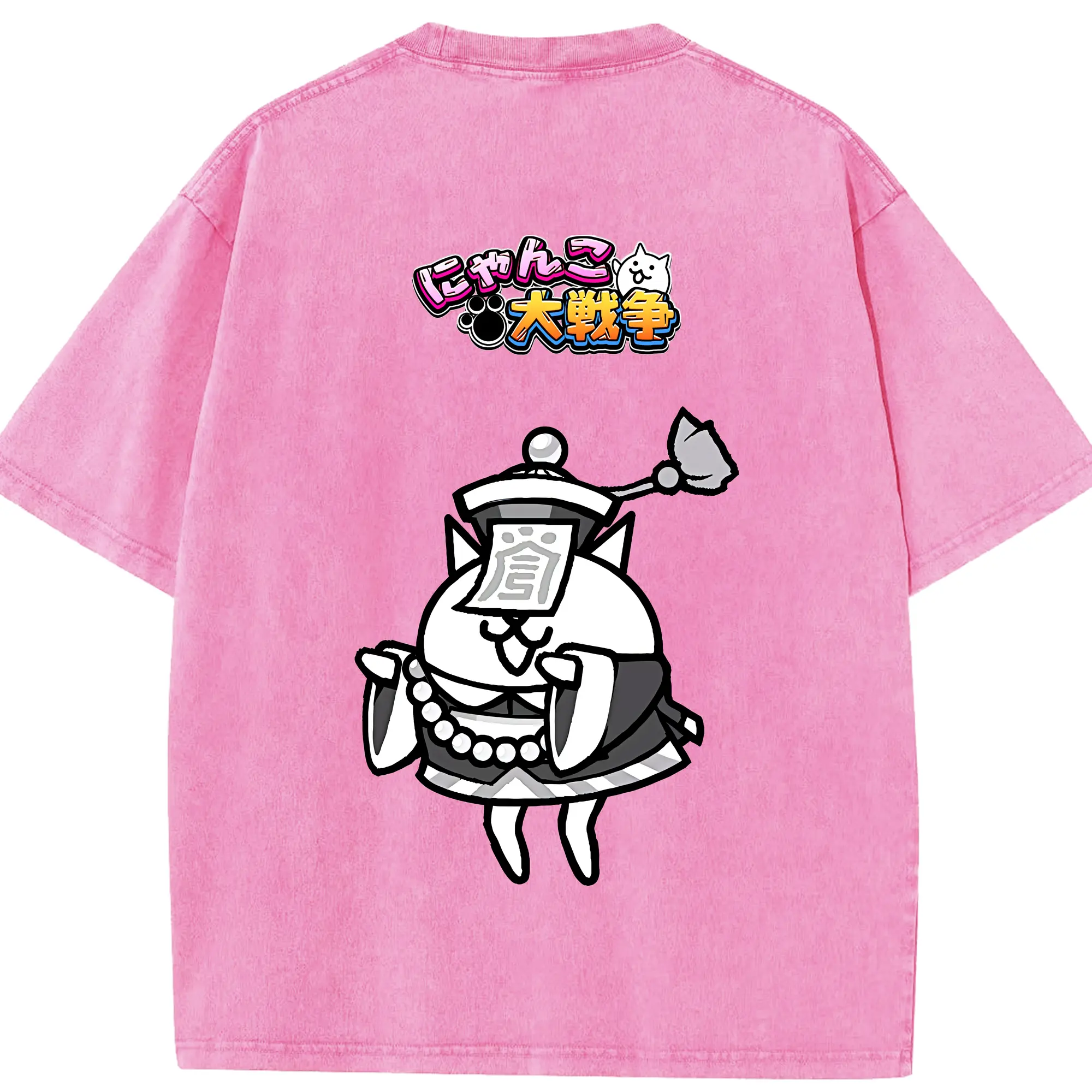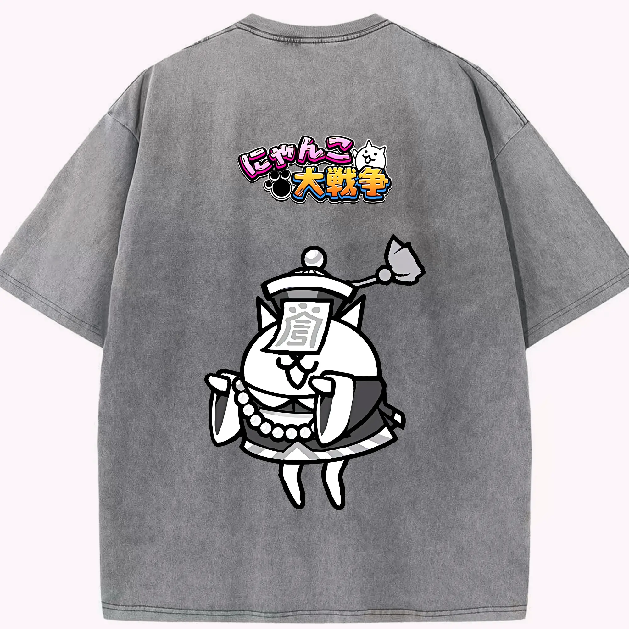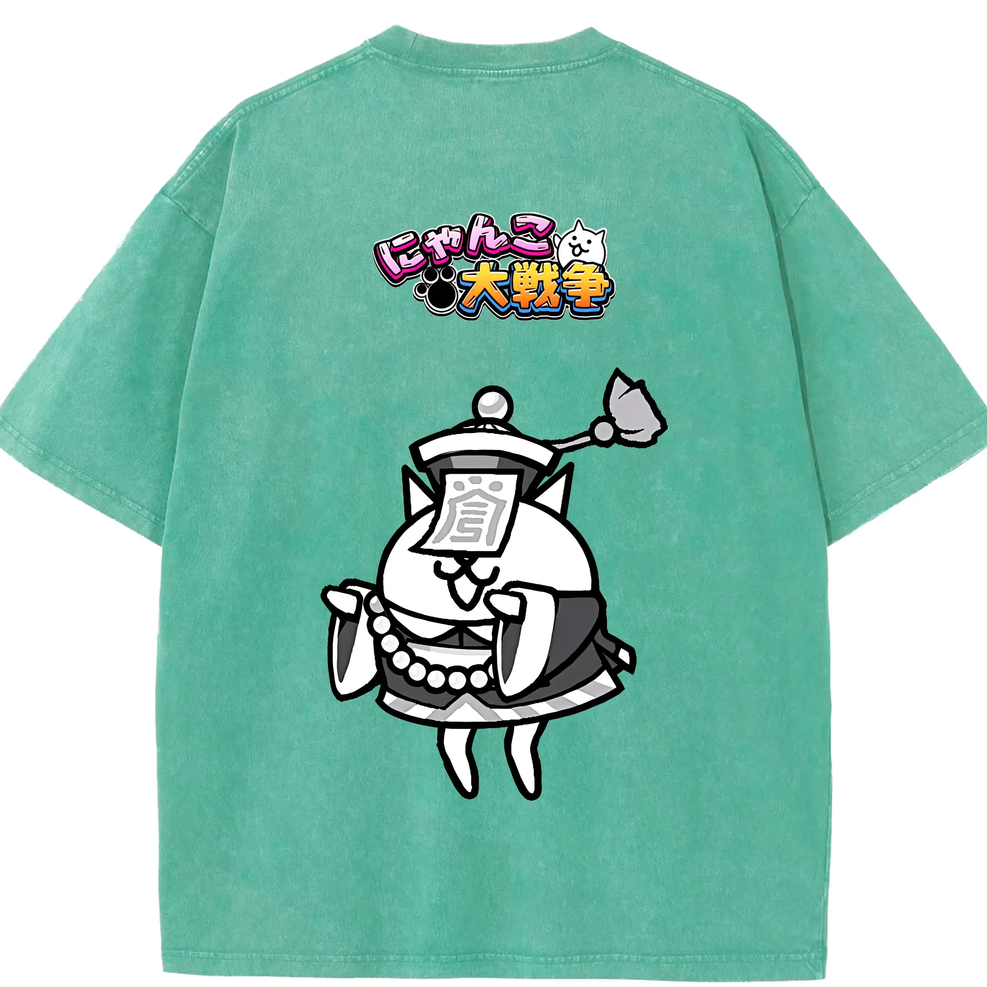 にゃんこ大戦争 グッズ - 綿100% ヴィンテージ風 半袖Tシャツ ・ フロントプリント ・ 柔らか肌触り ・ 通気性 快適 ・ スポーツ カジュアル 外出用