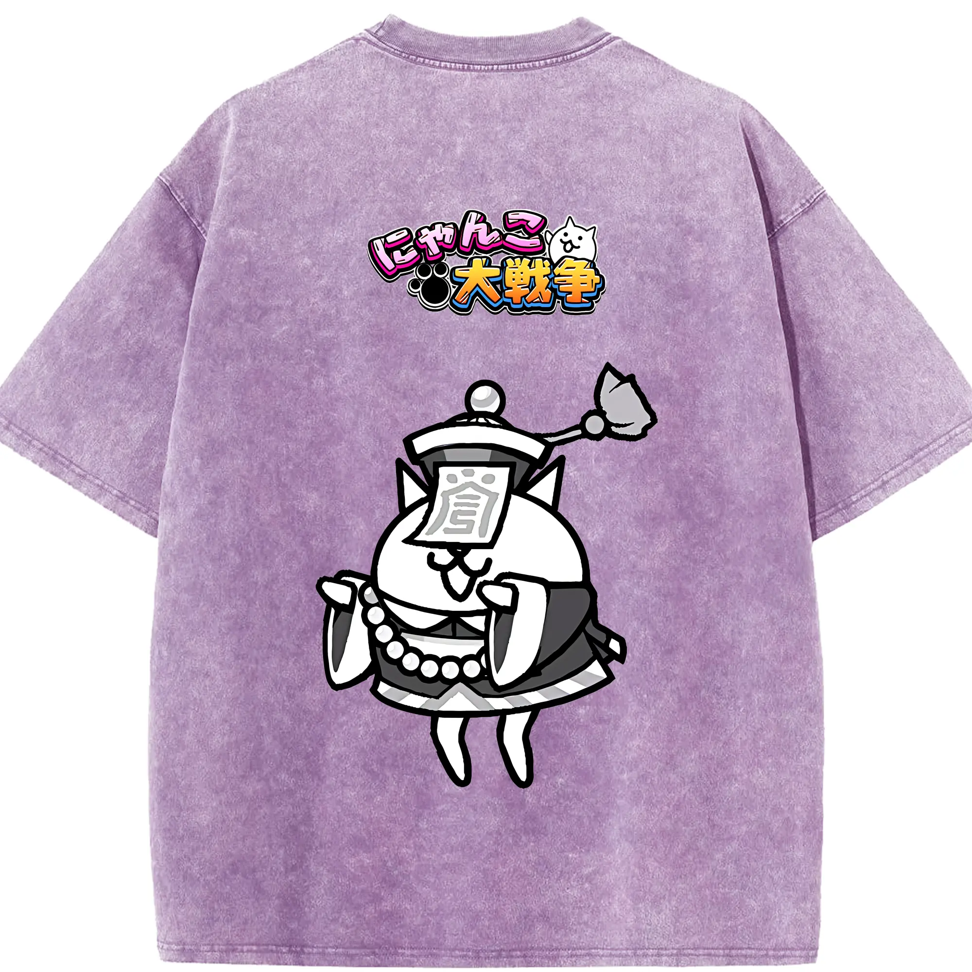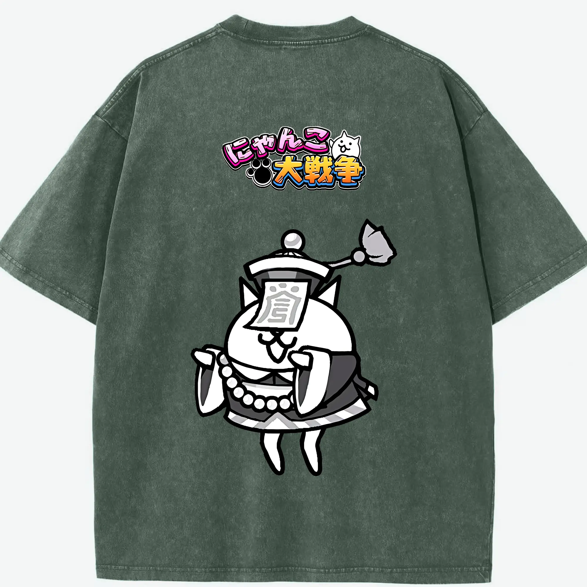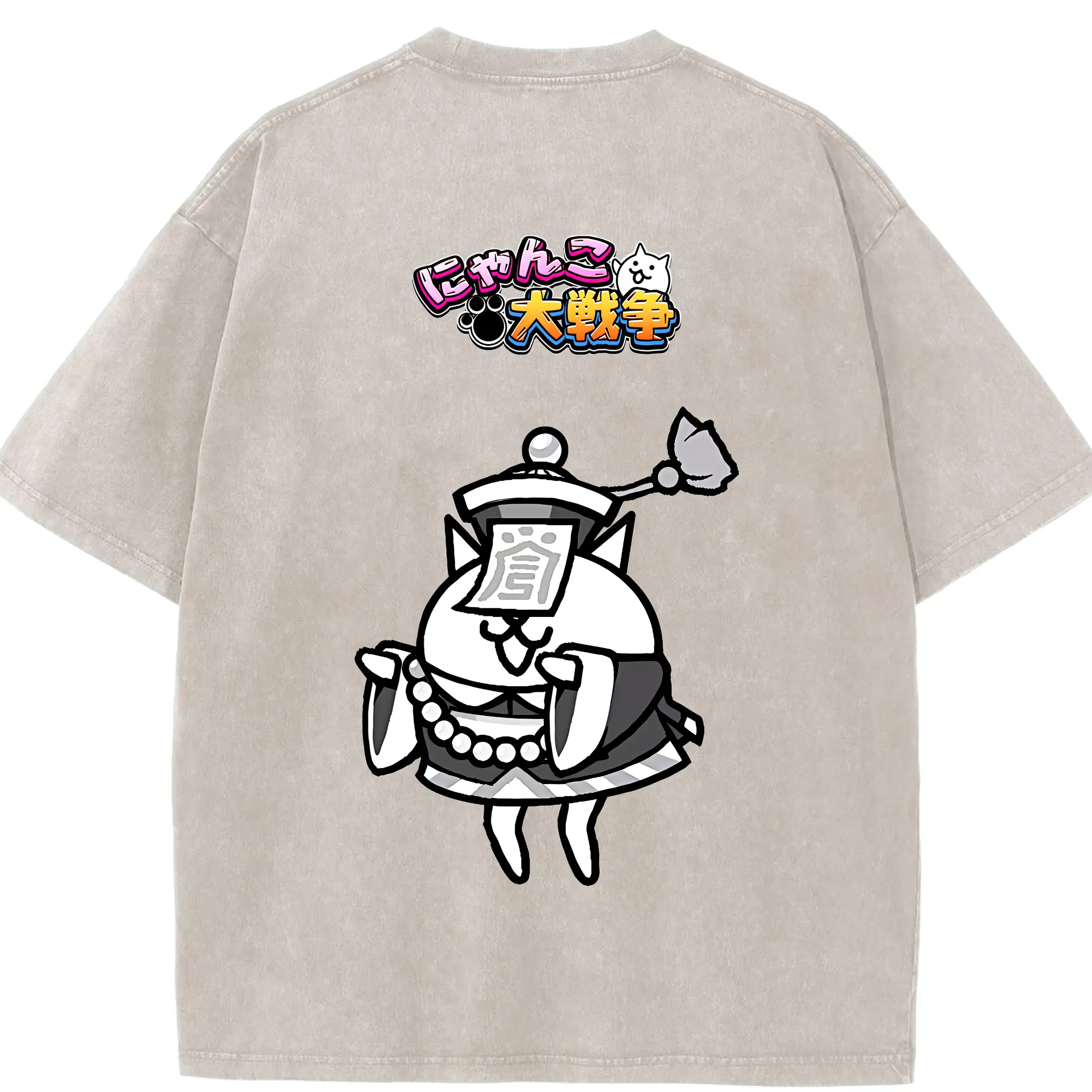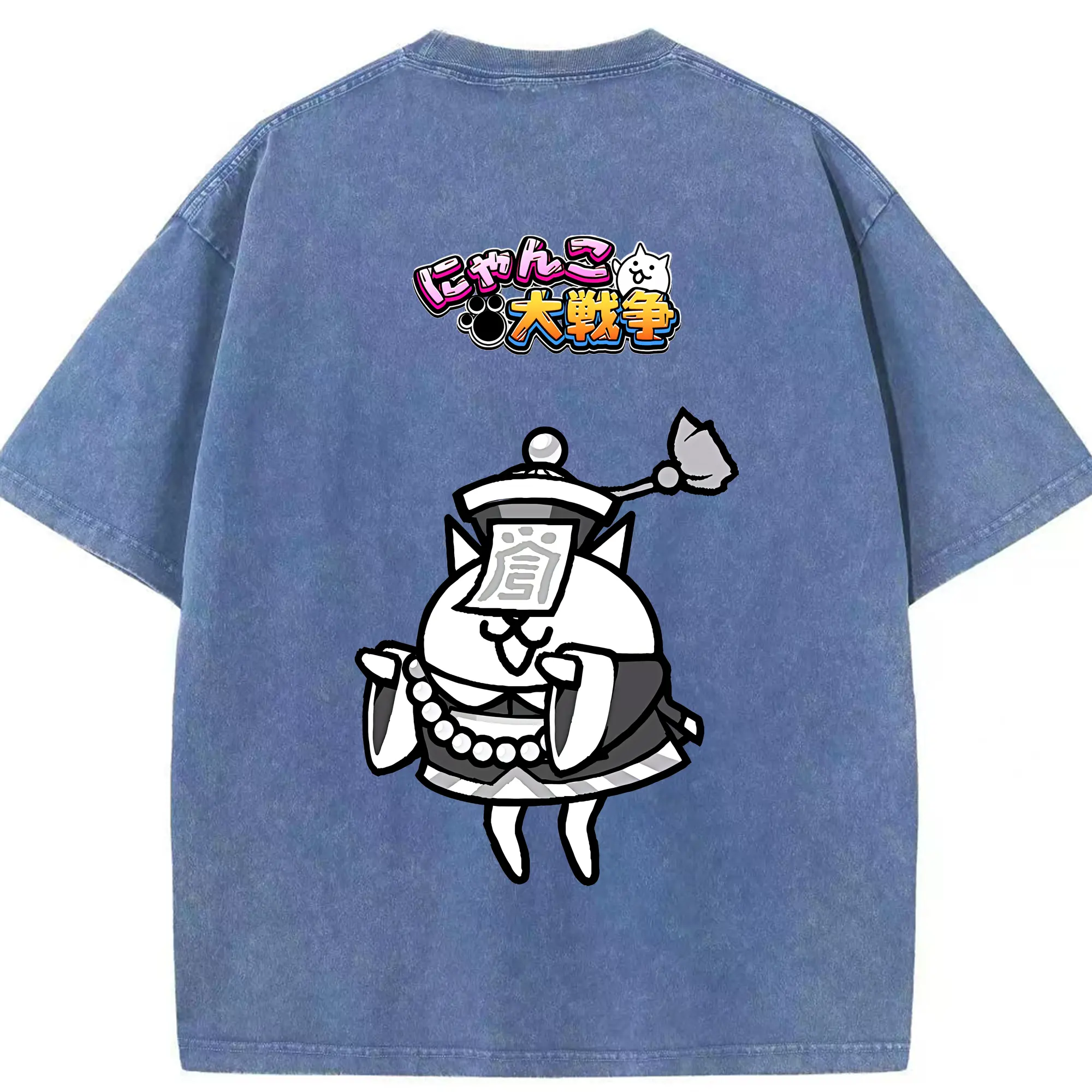 にゃんこ大戦争 グッズ - 綿100% ヴィンテージ風 半袖Tシャツ ・ フロントプリント ・ 柔らか肌触り ・ 通気性 快適 ・ スポーツ カジュアル 外出用