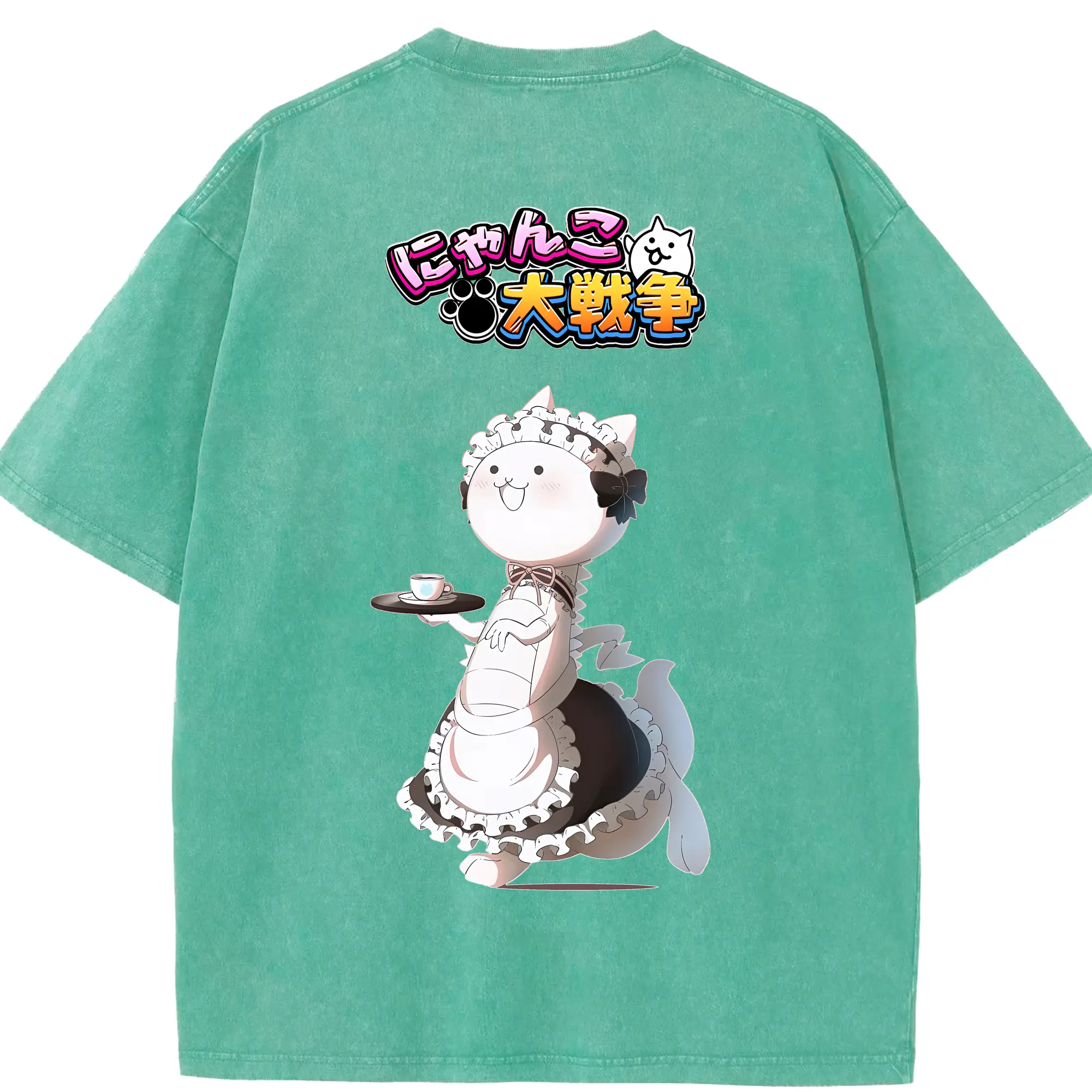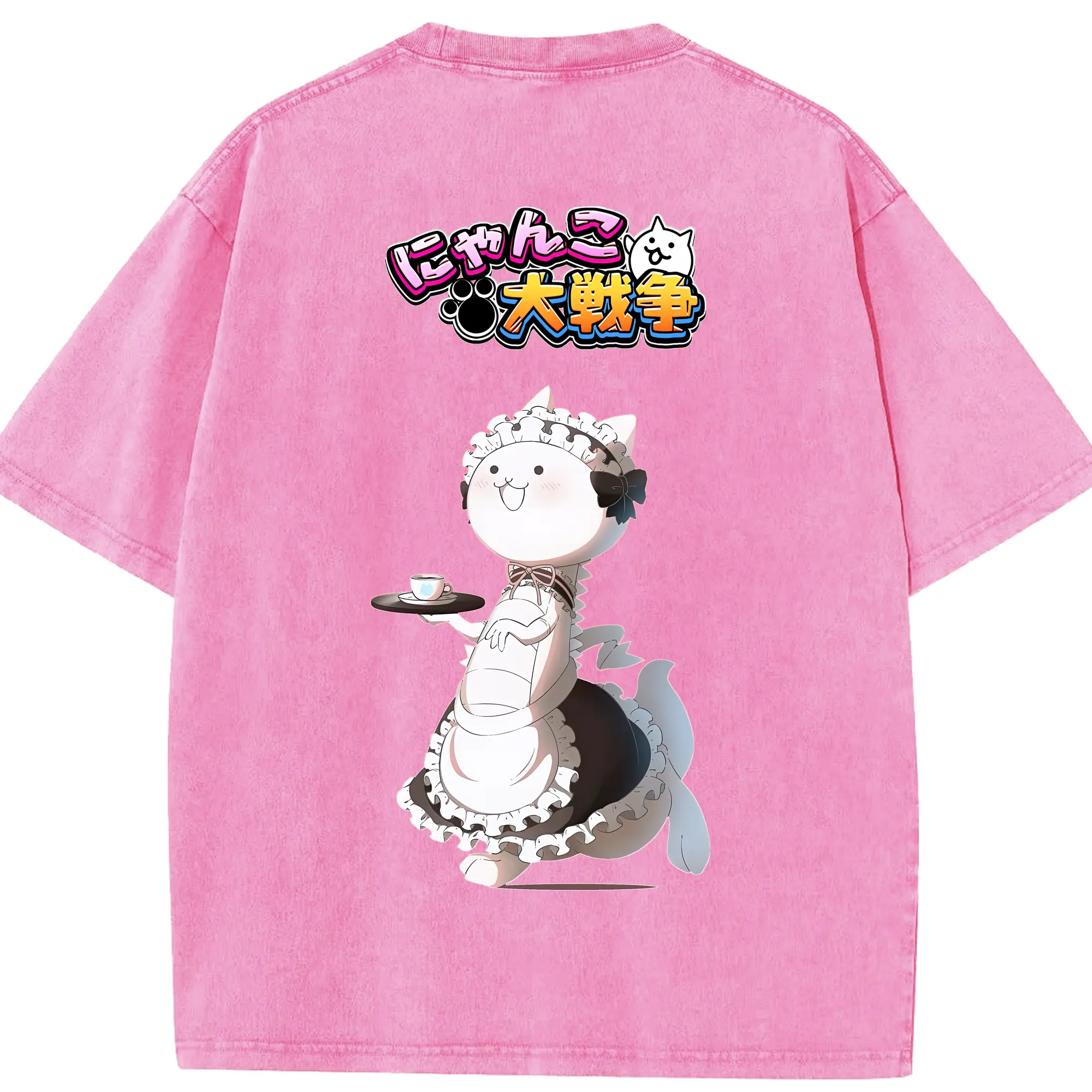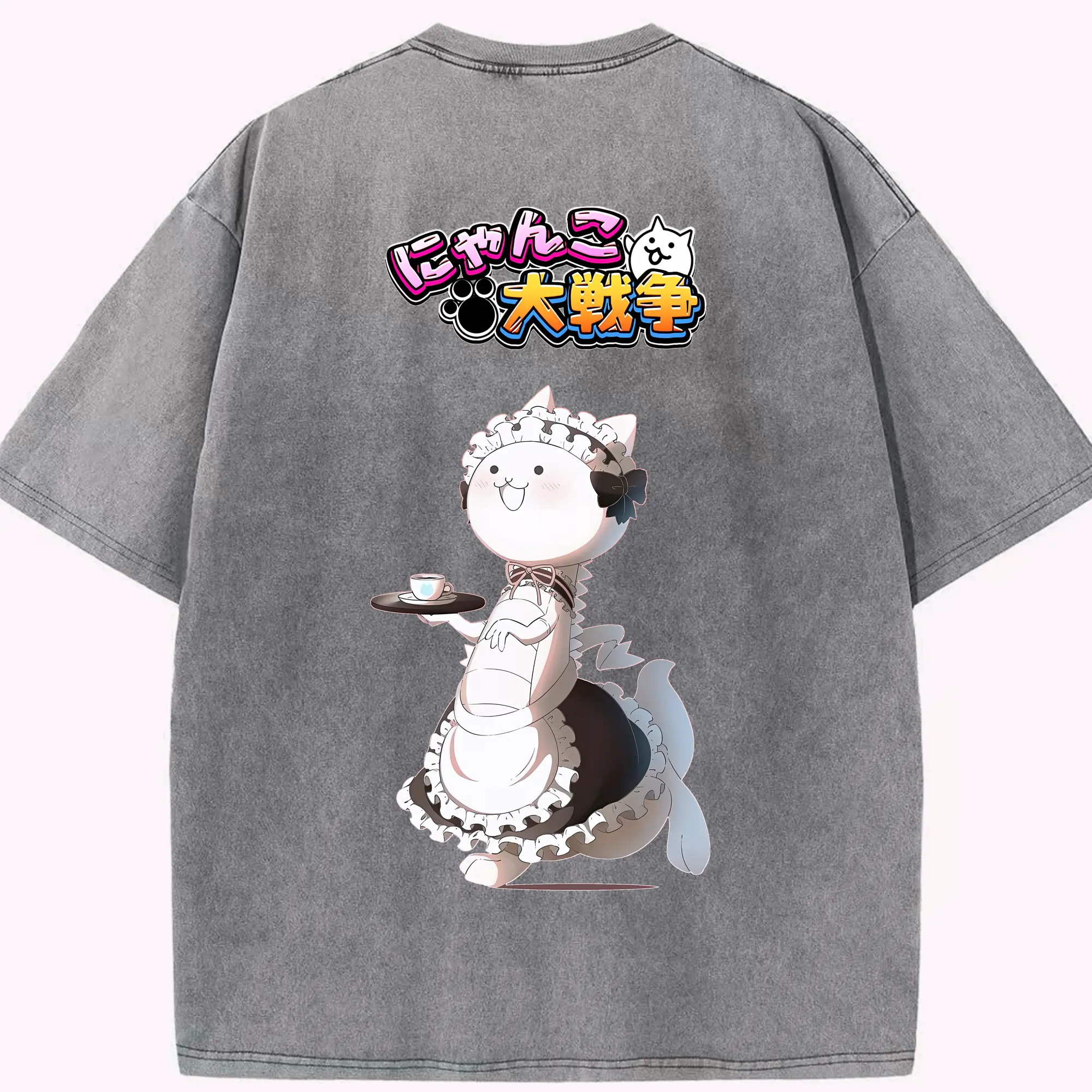 にゃんこ大戦争 グッズ - 綿100% ヴィンテージ風 半袖Tシャツ ・ フロントプリント ・ 柔らか肌触り ・ 通気性 快適 ・ スポーツ カジュアル 外出用