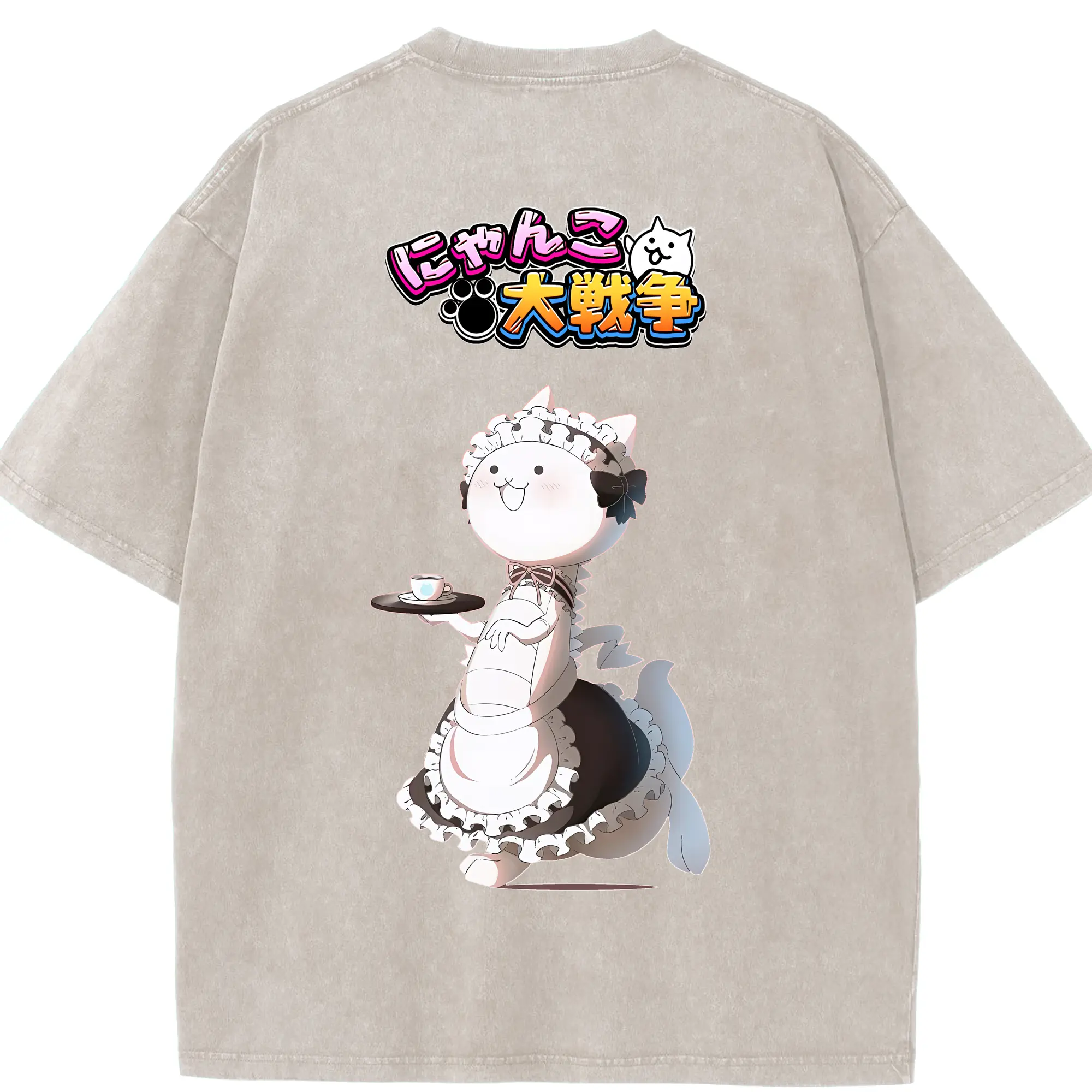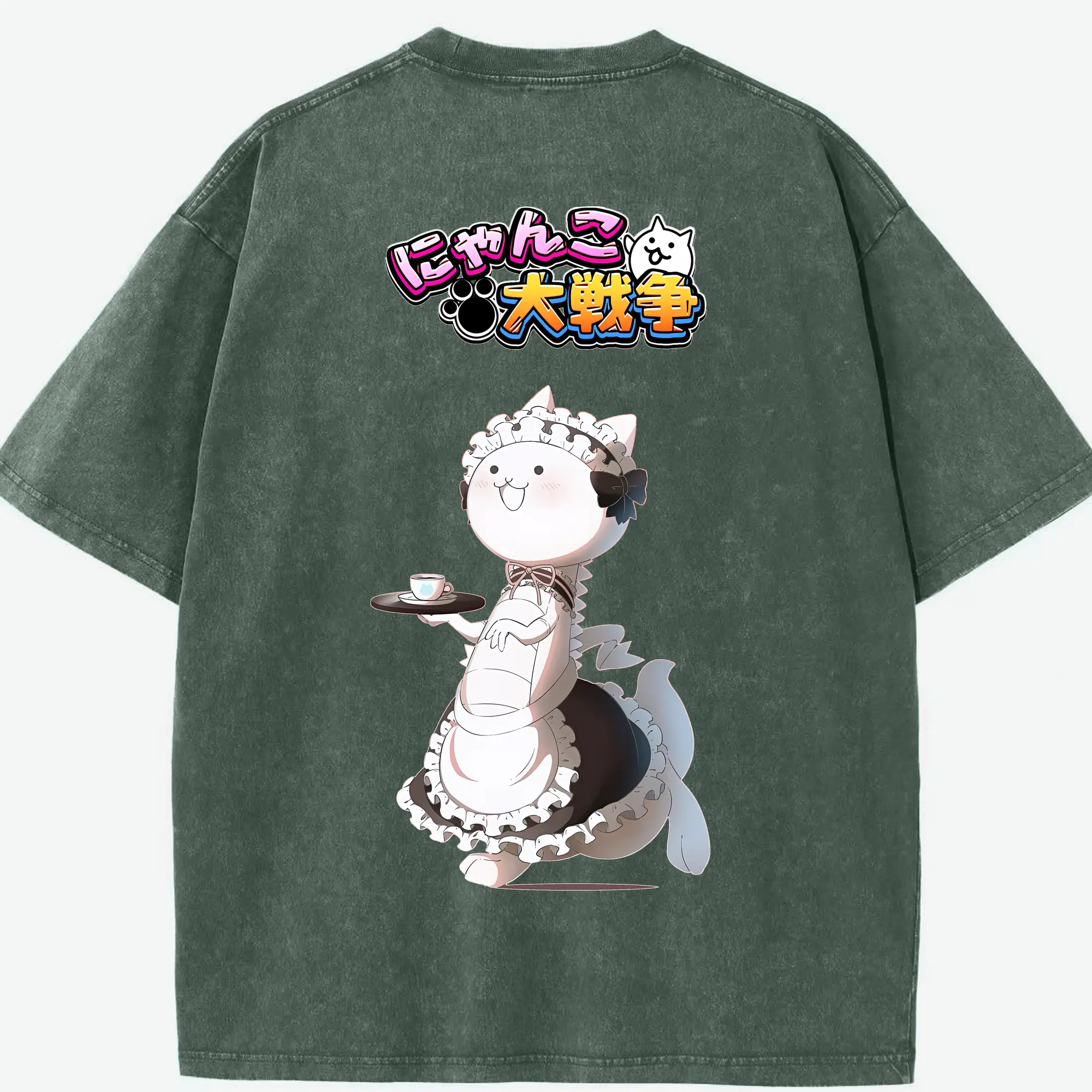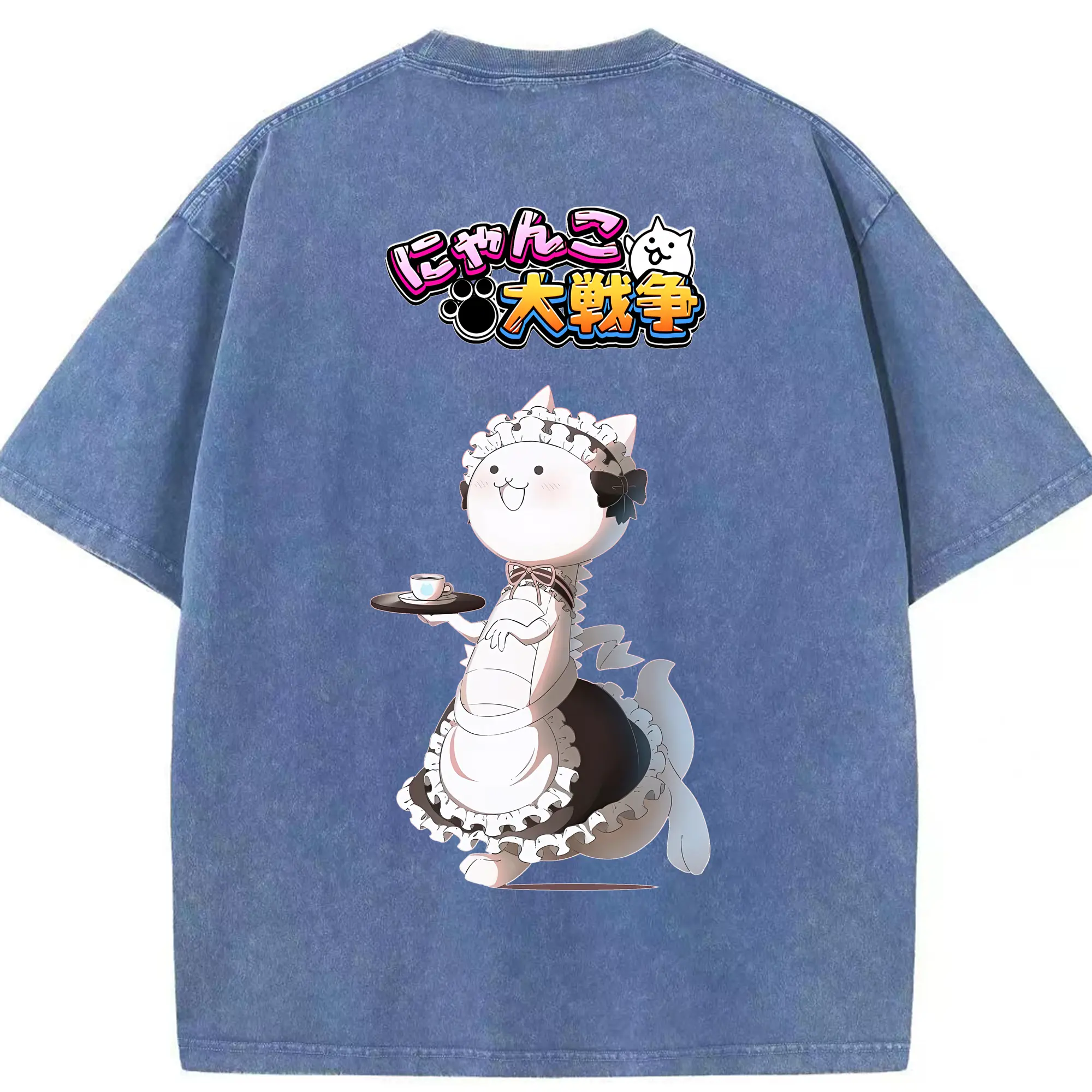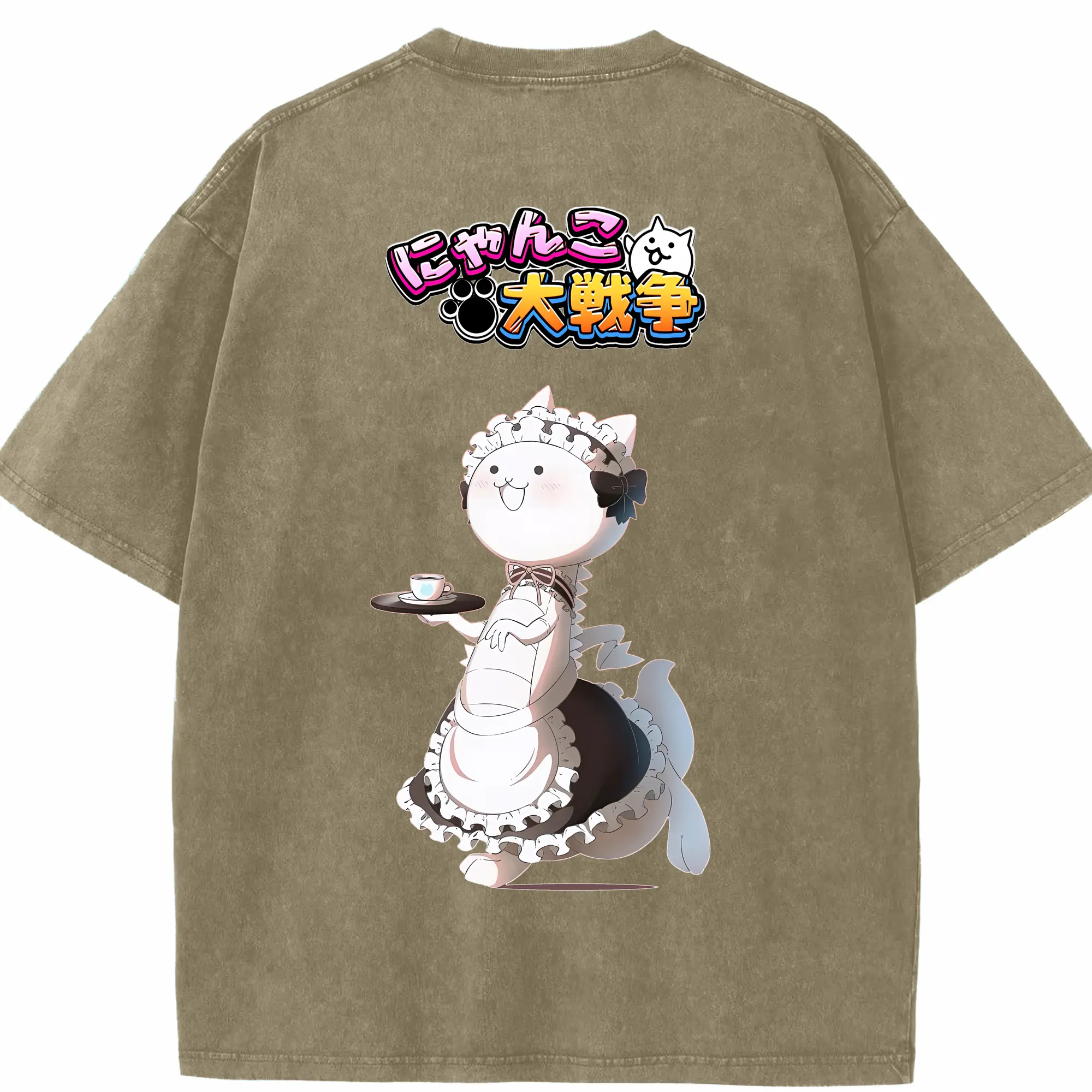 にゃんこ大戦争 グッズ - 綿100% ヴィンテージ風 半袖Tシャツ ・ フロントプリント ・ 柔らか肌触り ・ 通気性 快適 ・ スポーツ カジュアル 外出用