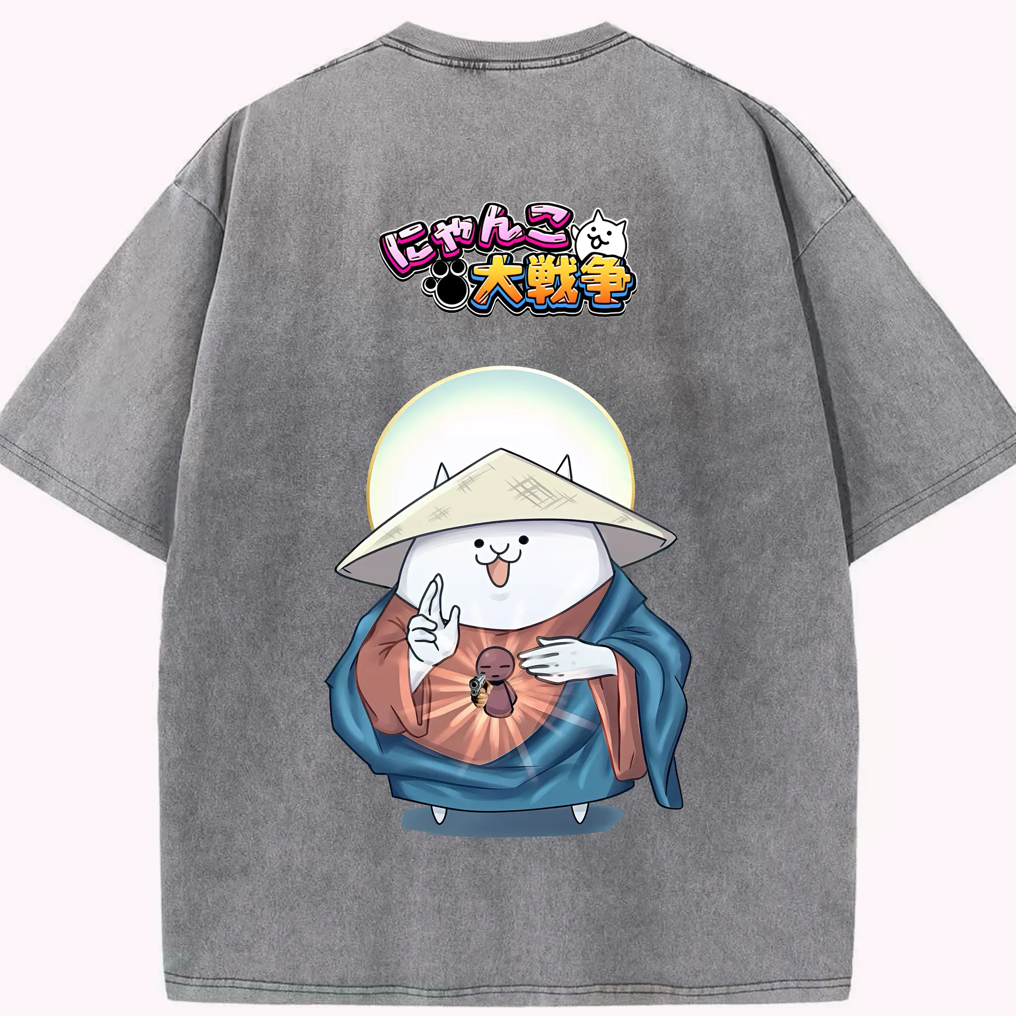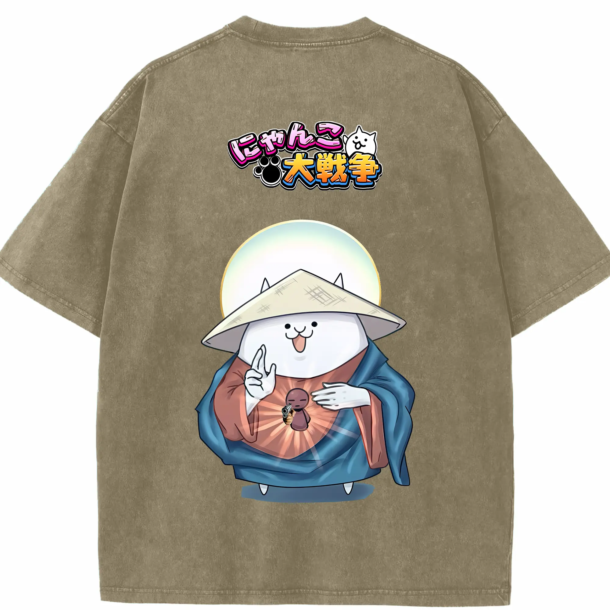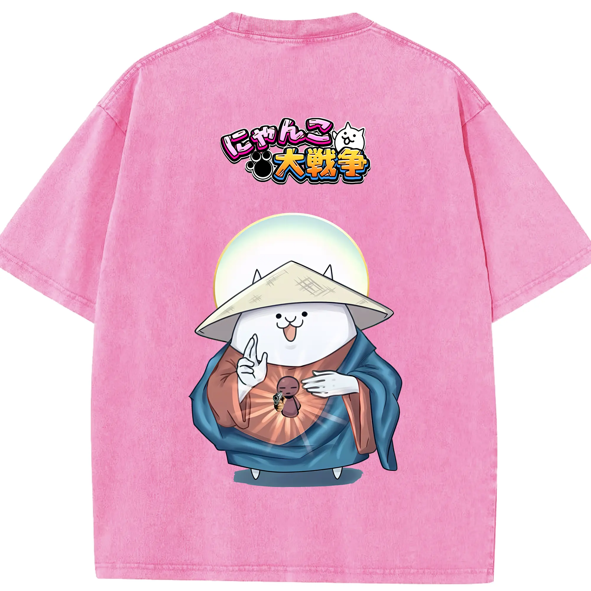 にゃんこ大戦争 グッズ - 綿100% ヴィンテージ風 半袖Tシャツ ・ フロントプリント ・ 柔らか肌触り ・ 通気性 快適 ・ スポーツ カジュアル 外出用