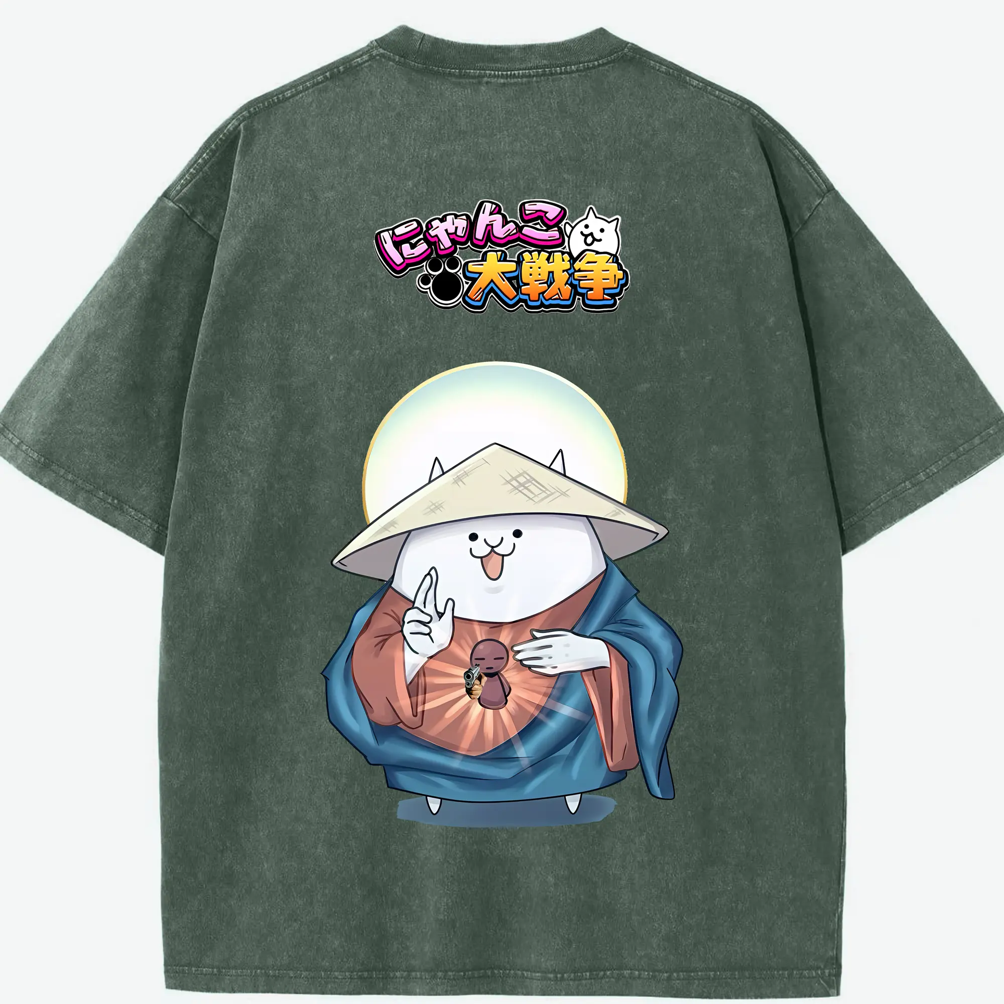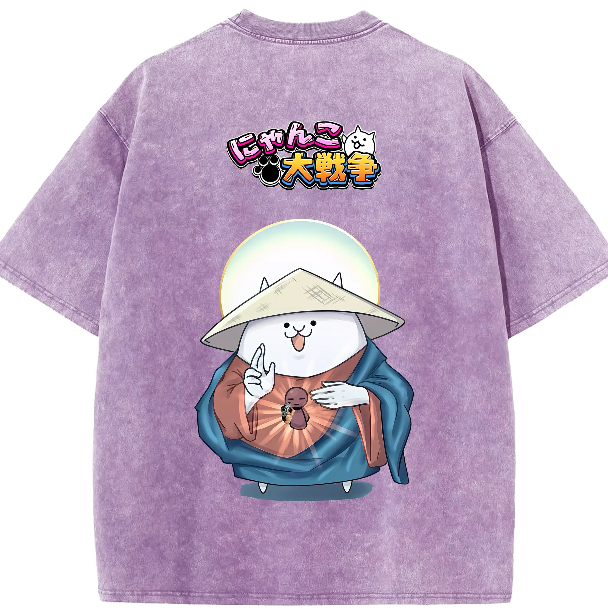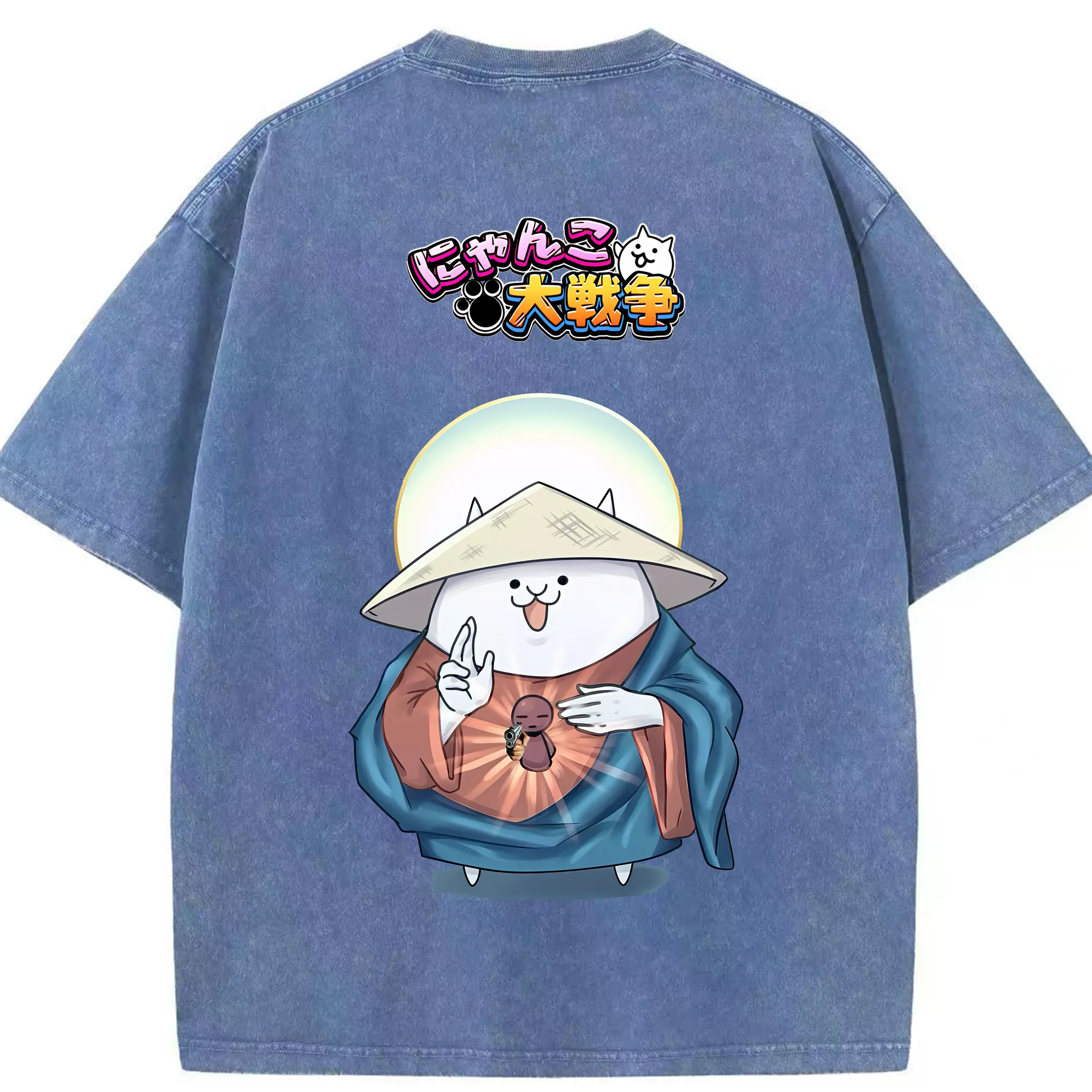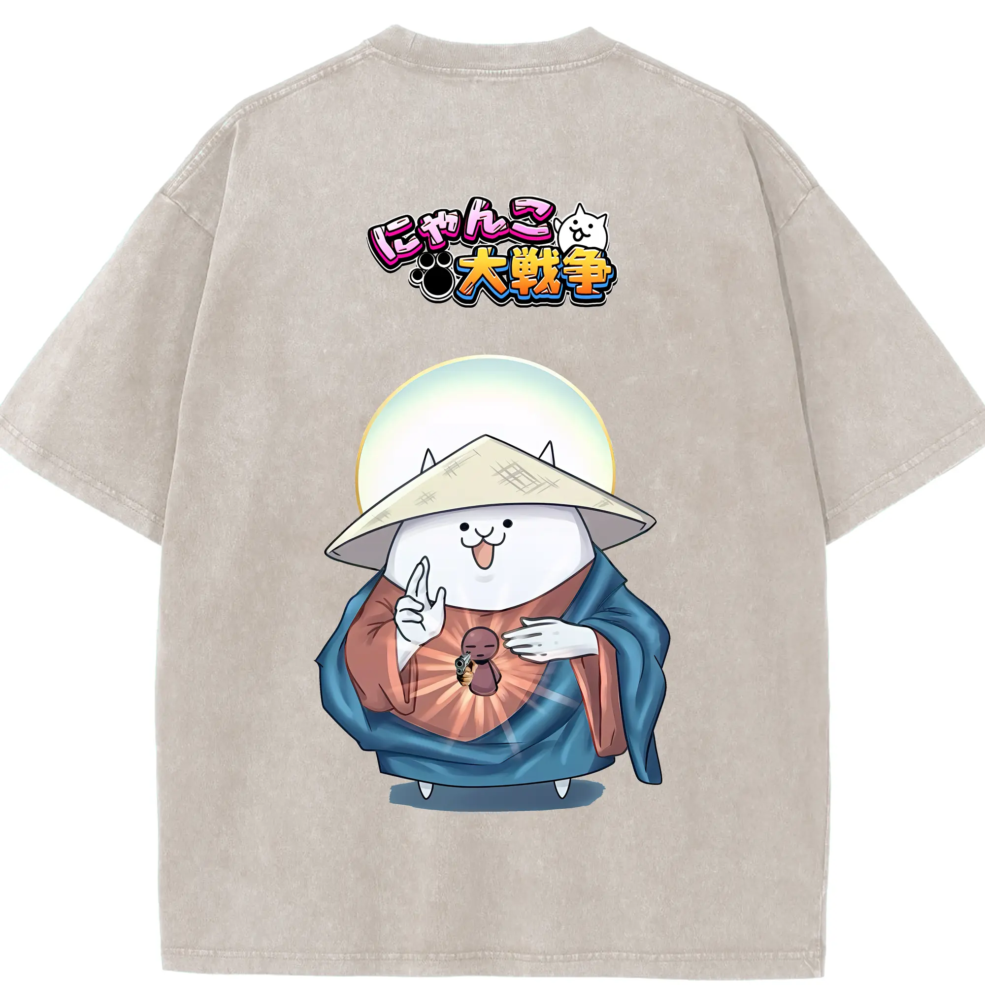 にゃんこ大戦争 グッズ - 綿100% ヴィンテージ風 半袖Tシャツ ・ フロントプリント ・ 柔らか肌触り ・ 通気性 快適 ・ スポーツ カジュアル 外出用