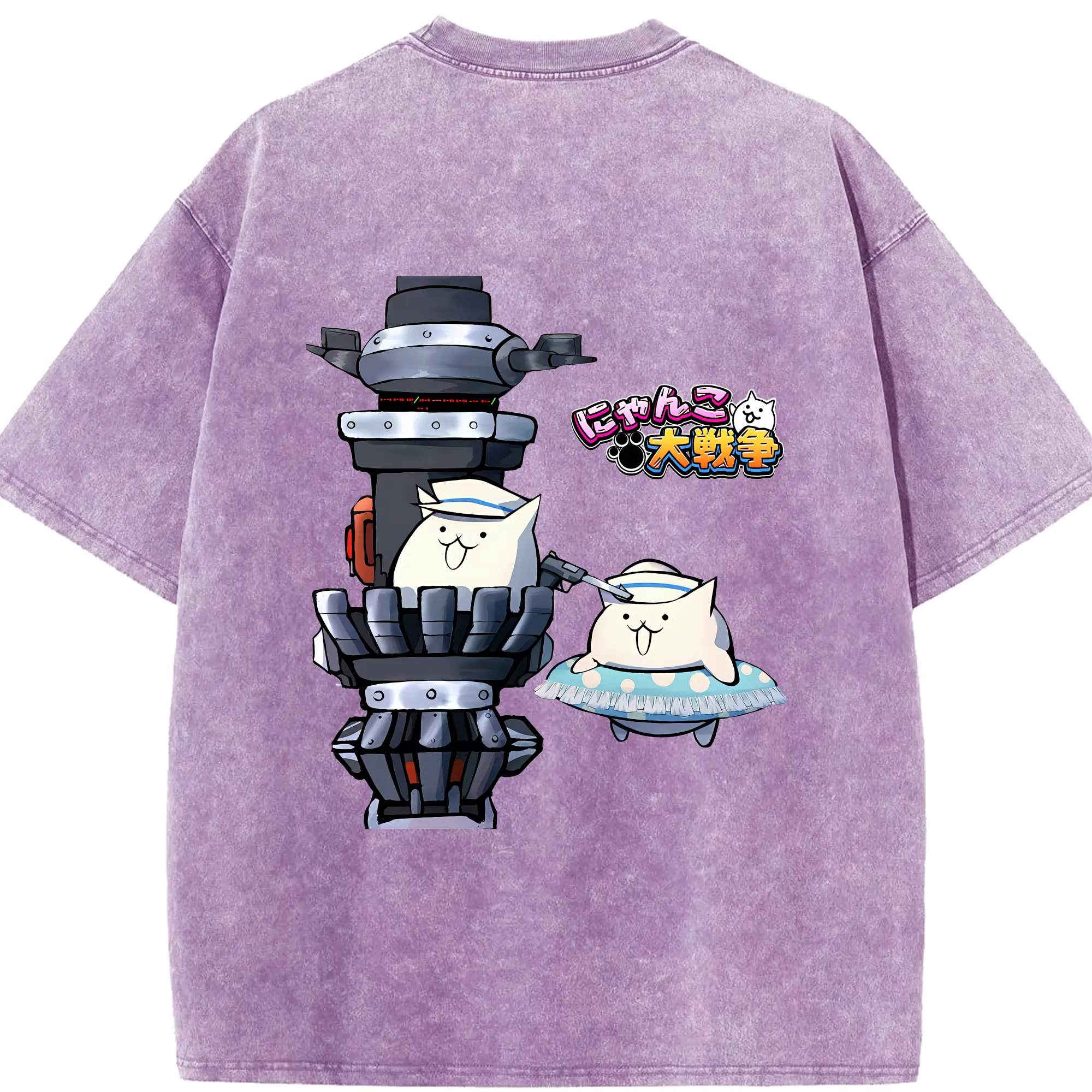 にゃんこ大戦争 グッズ - 綿100% 半袖Tシャツ ・ バックプリント ・ 快適 通気性 ・ 日常使い 散歩 スポーツ用