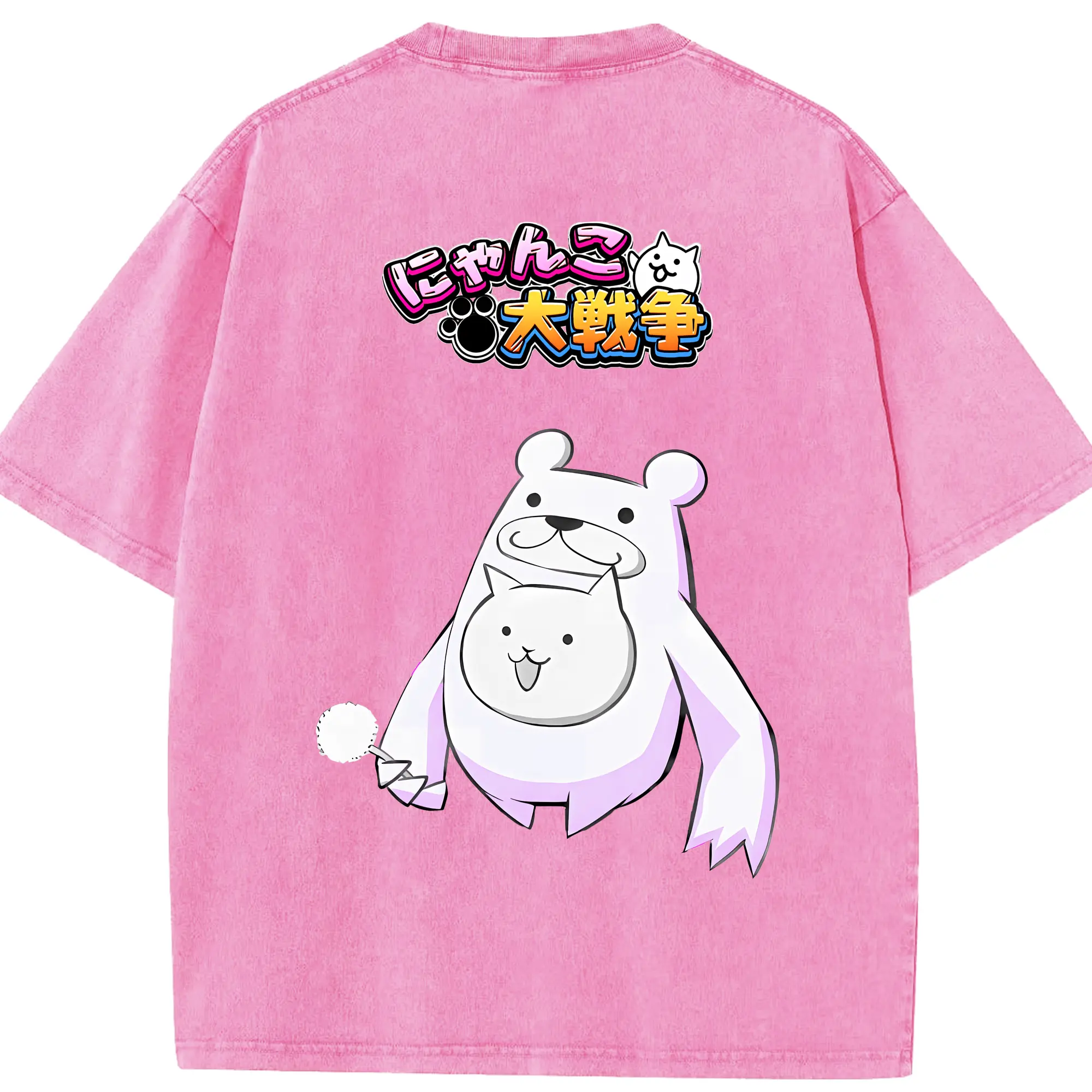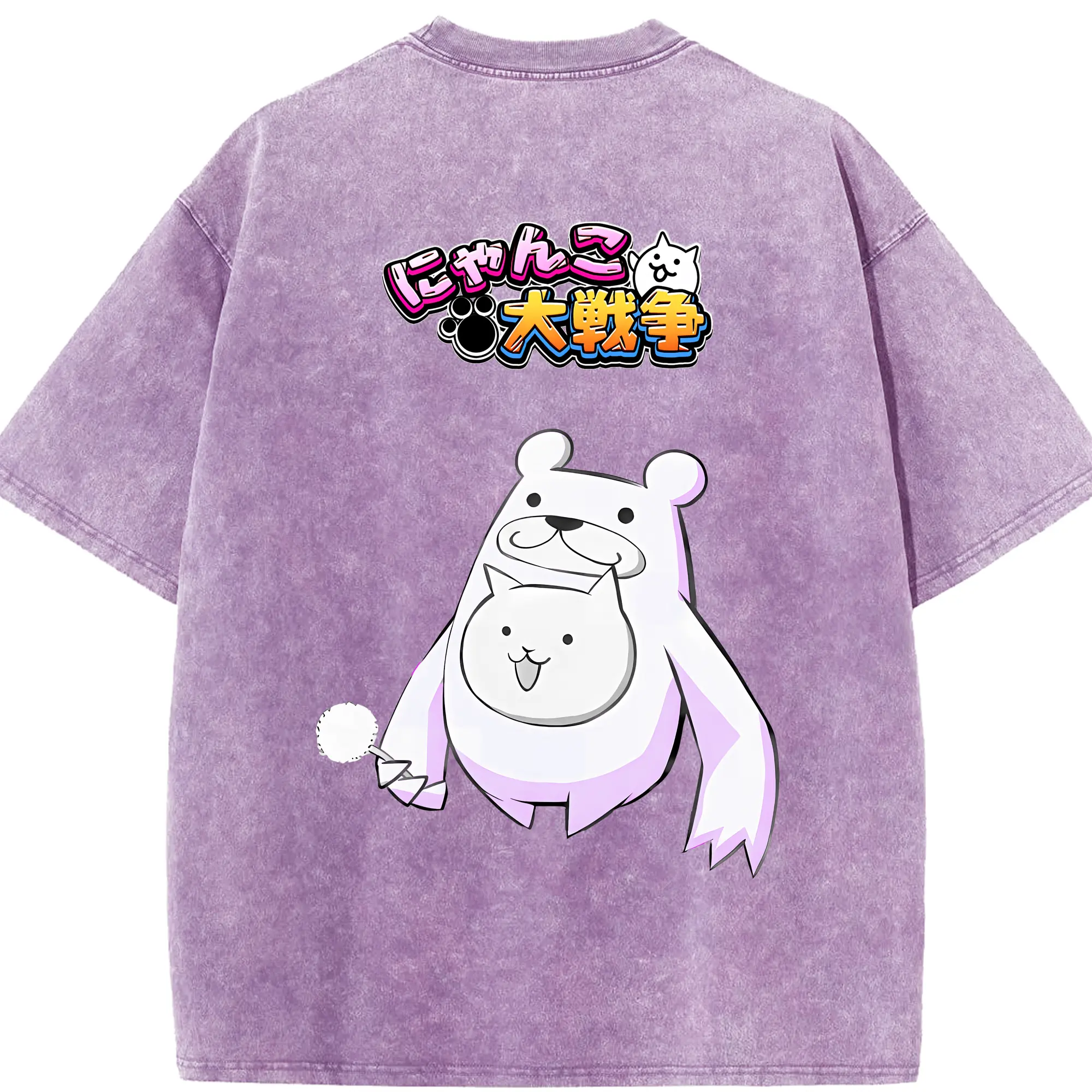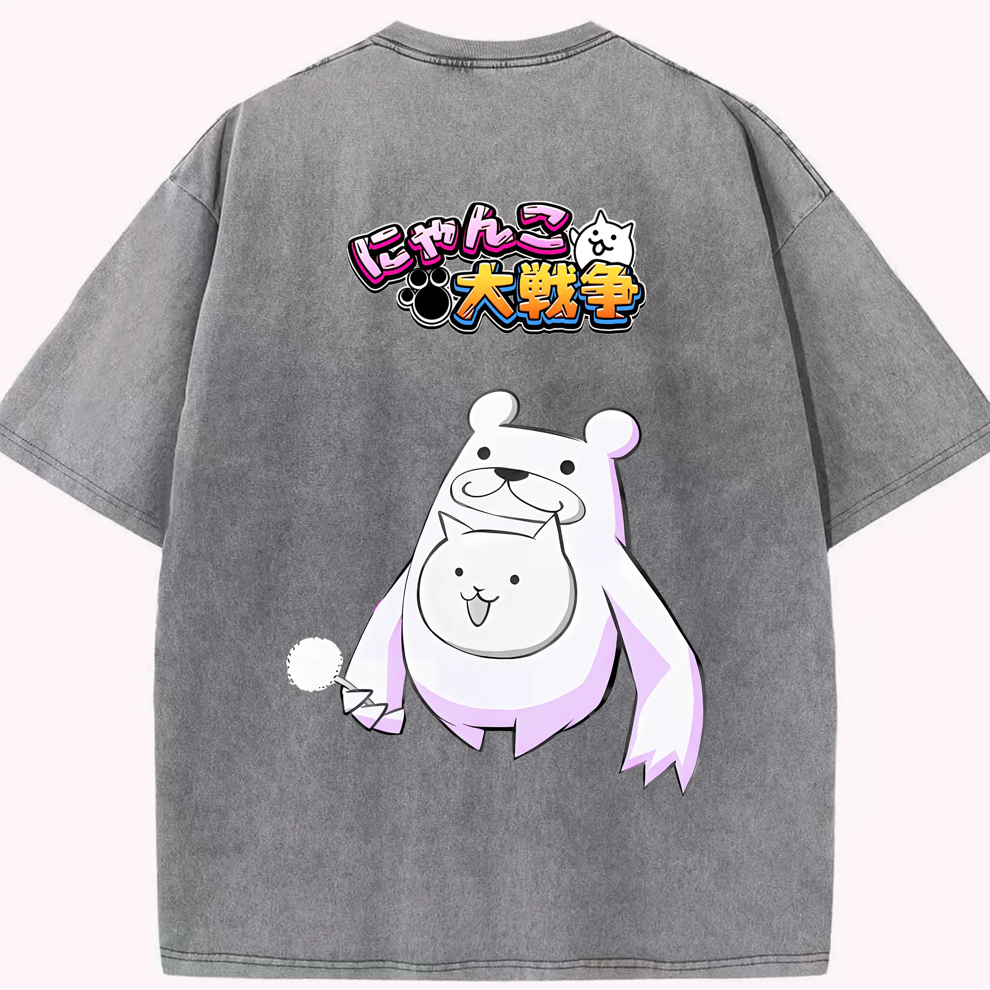 にゃんこ大戦争 グッズ - 綿100% ヴィンテージ風 半袖Tシャツ ・ フロントプリント ・ 柔らか肌触り ・ 通気性 快適 ・ スポーツ カジュアル 外出用