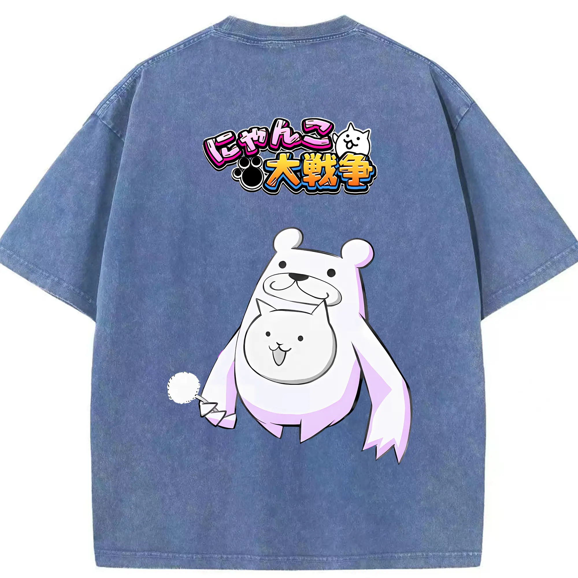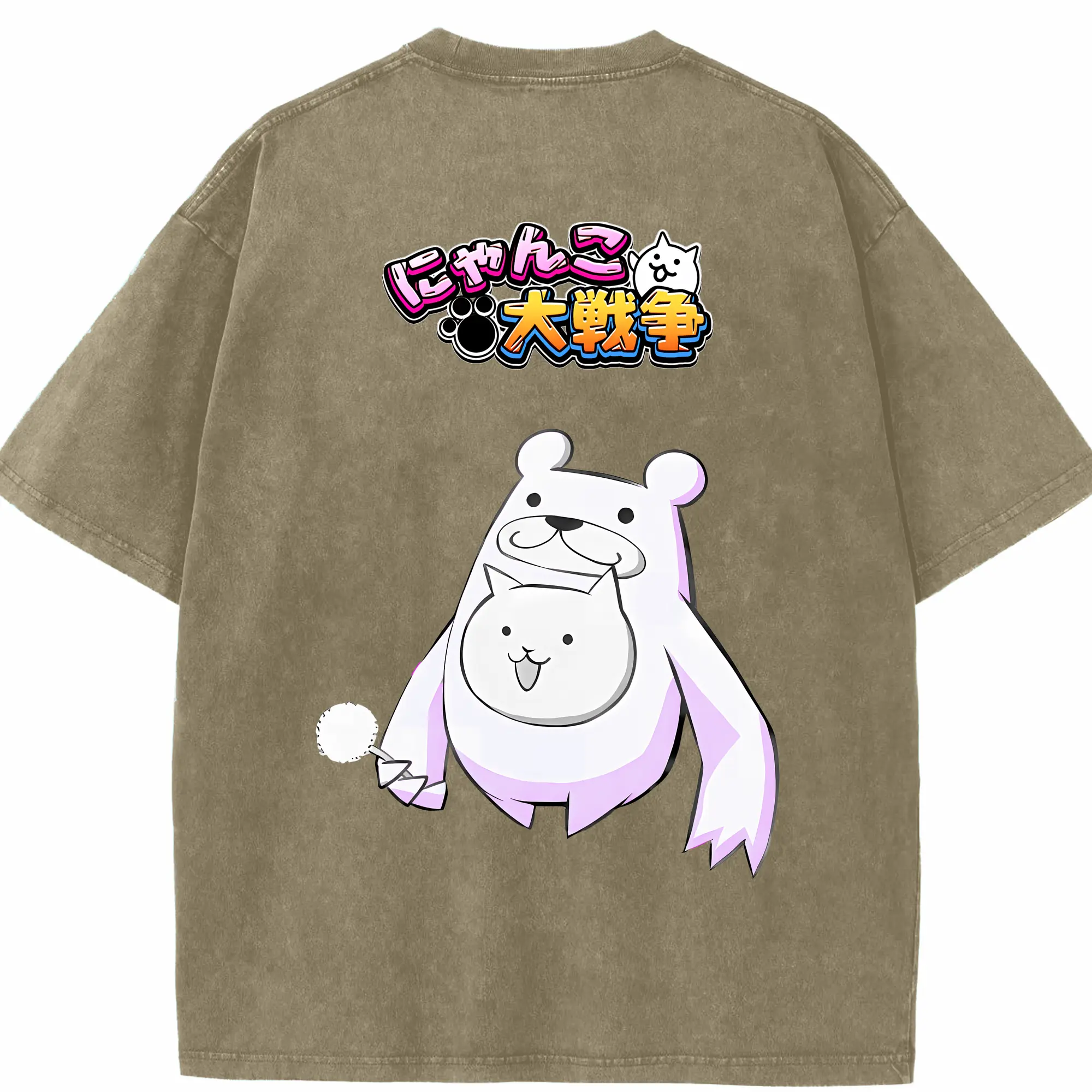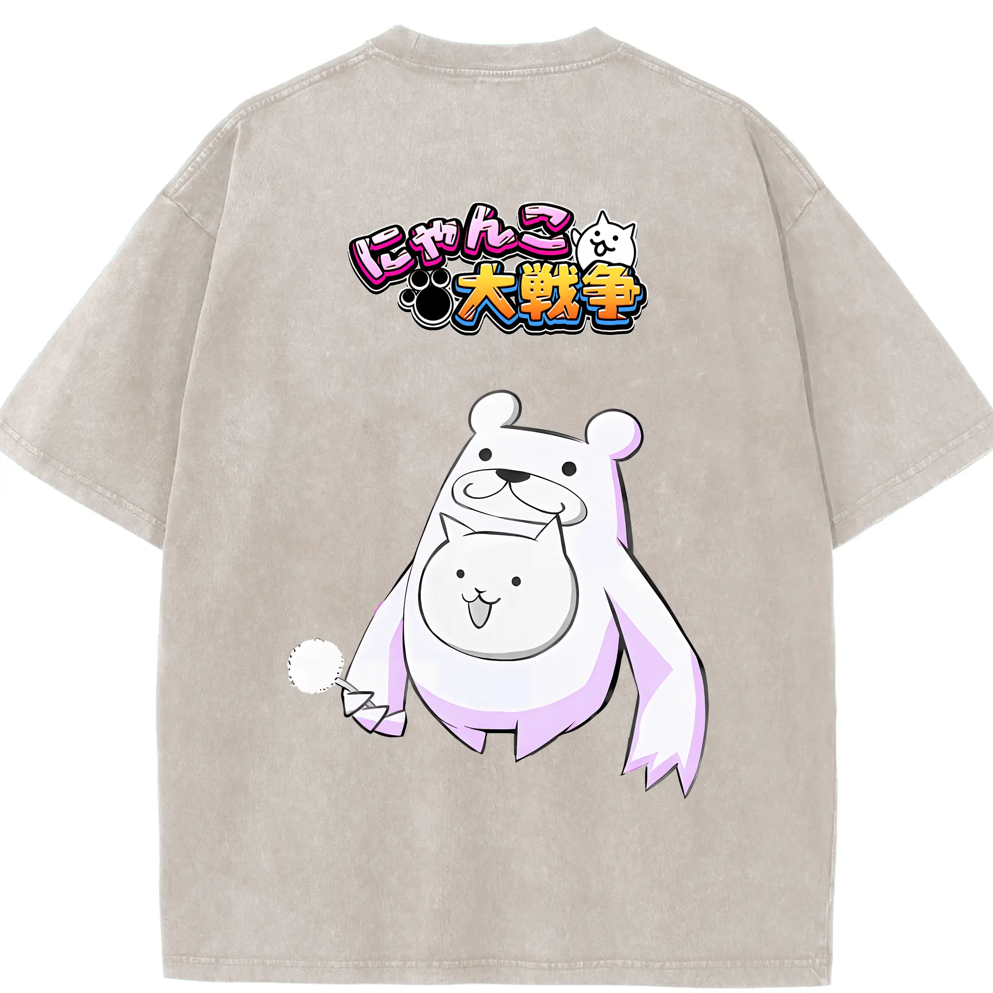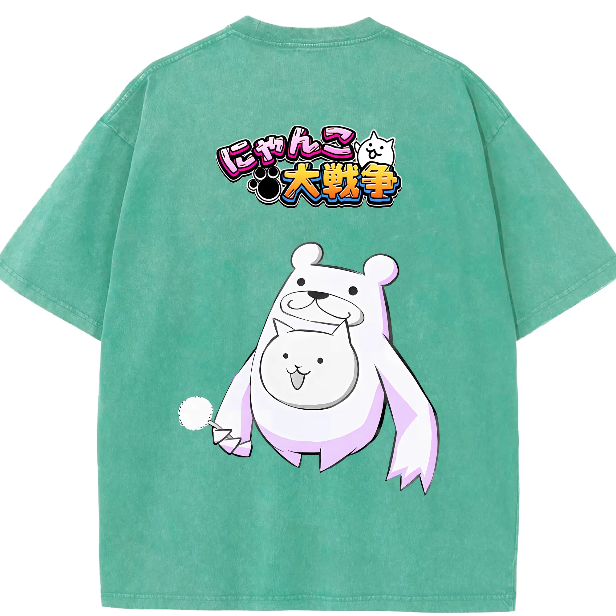 にゃんこ大戦争 グッズ - 綿100% ヴィンテージ風 半袖Tシャツ ・ フロントプリント ・ 柔らか肌触り ・ 通気性 快適 ・ スポーツ カジュアル 外出用