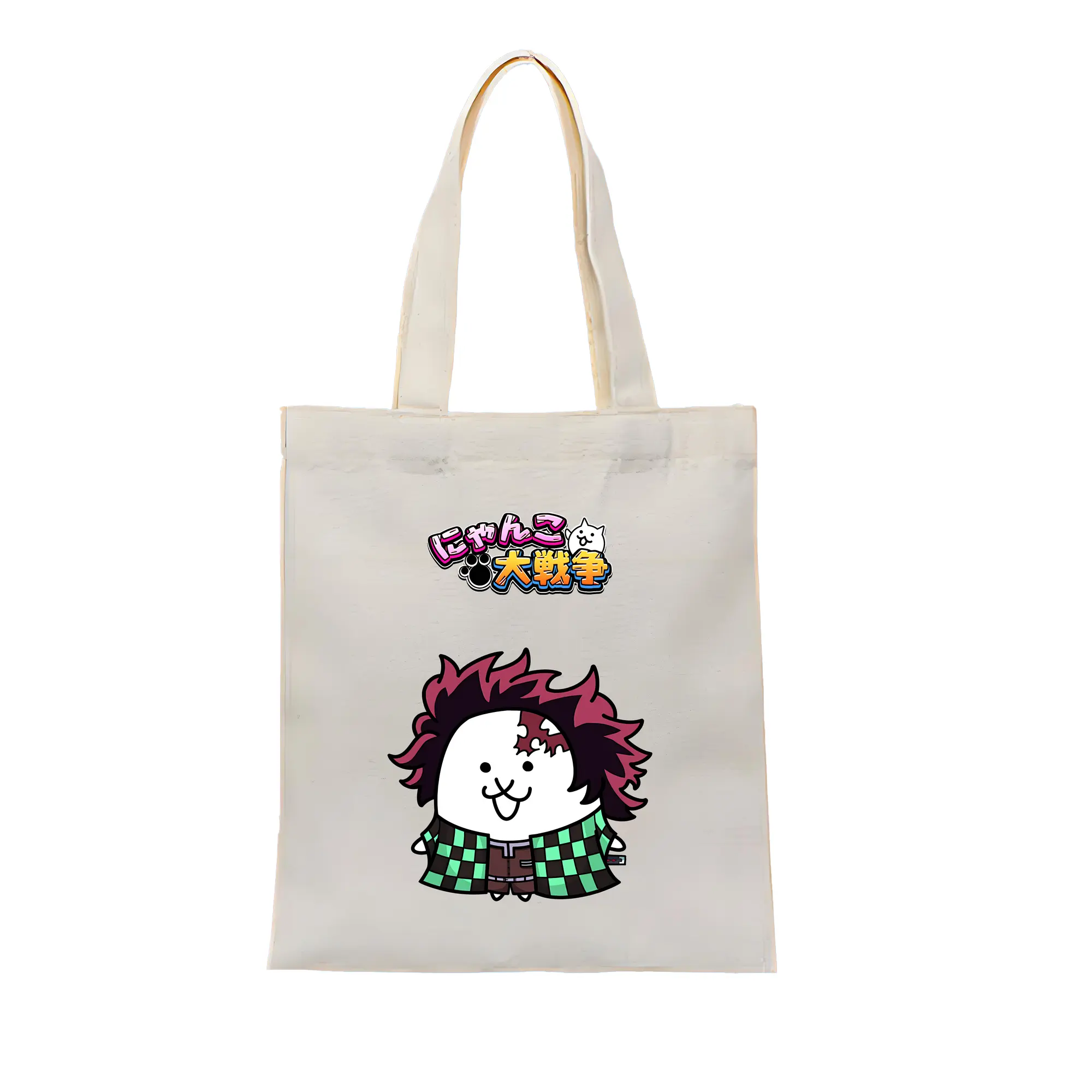 にゃんこ大戦争 グッズ - 縦型キャンバス手提げバッグ(トートバッグ) ・ キャンバス素材 ・ ショッピング用 ・ 軽量 丈夫 お手入れ簡単