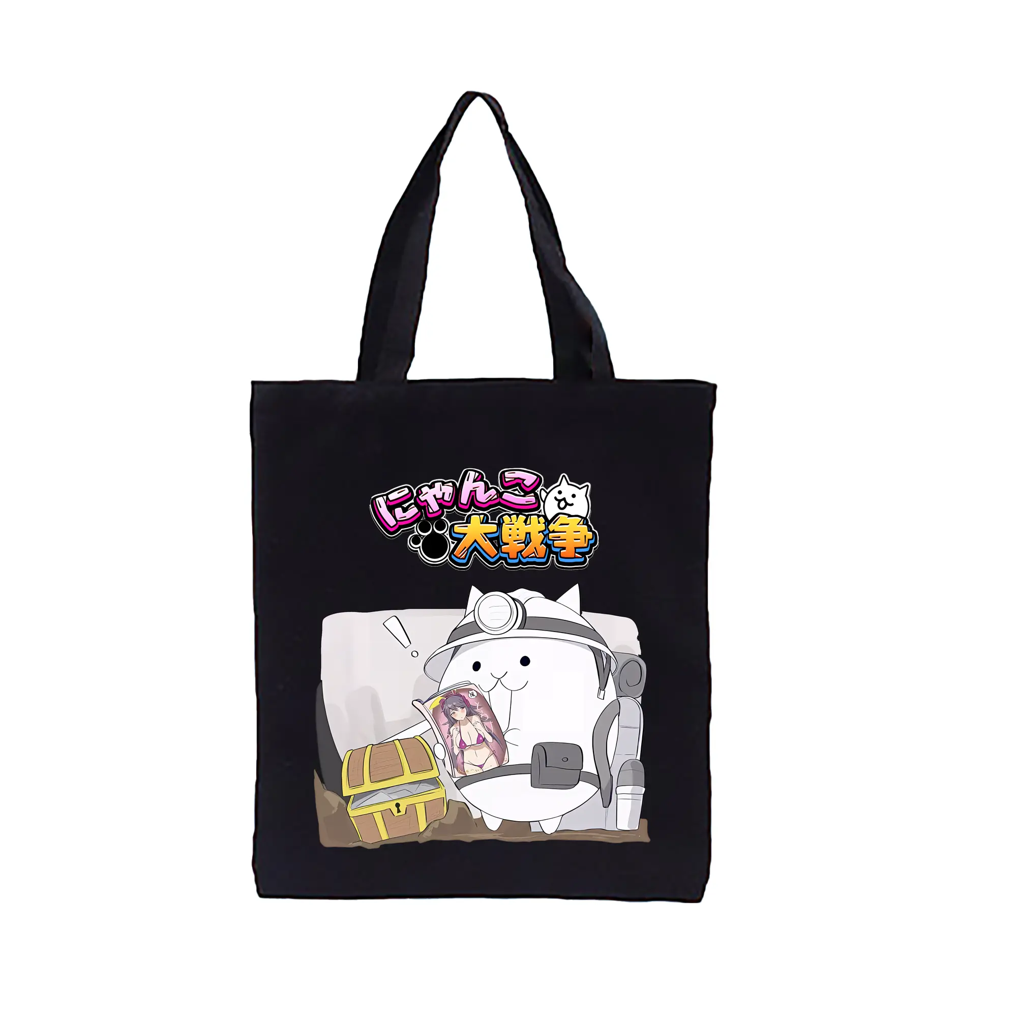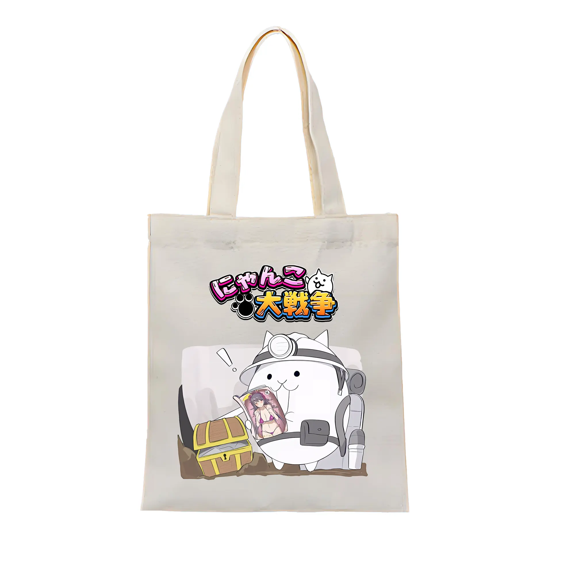 にゃんこ大戦争 グッズ - 縦型キャンバス手提げバッグ(トートバッグ) ・ キャンバス素材 ・ ショッピング用 ・ 軽量 丈夫 お手入れ簡単