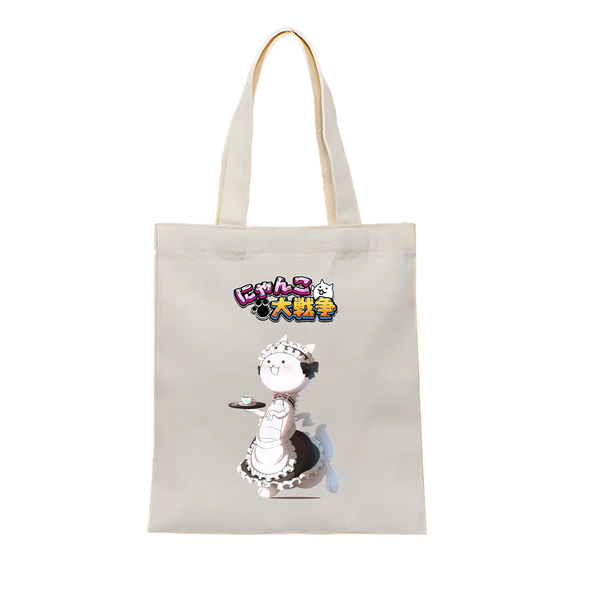にゃんこ大戦争 グッズ - 縦型キャンバス手提げバッグ(トートバッグ) ・ キャンバス素材 ・ ショッピング用 ・ 軽量 丈夫 お手入れ簡単