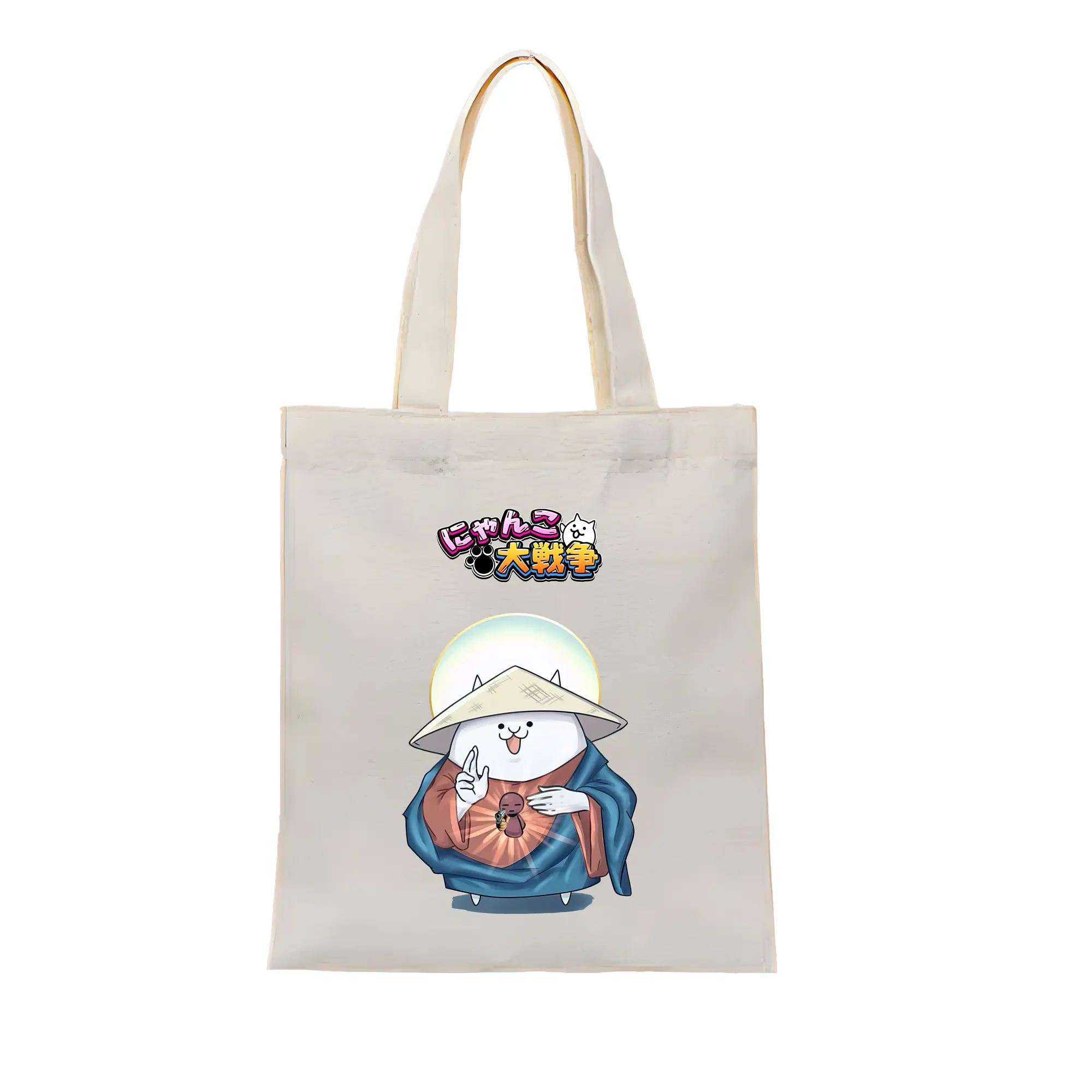 にゃんこ大戦争 グッズ - 縦型キャンバス手提げバッグ(トートバッグ) ・ キャンバス素材 ・ ショッピング用 ・ 軽量 丈夫 お手入れ簡単