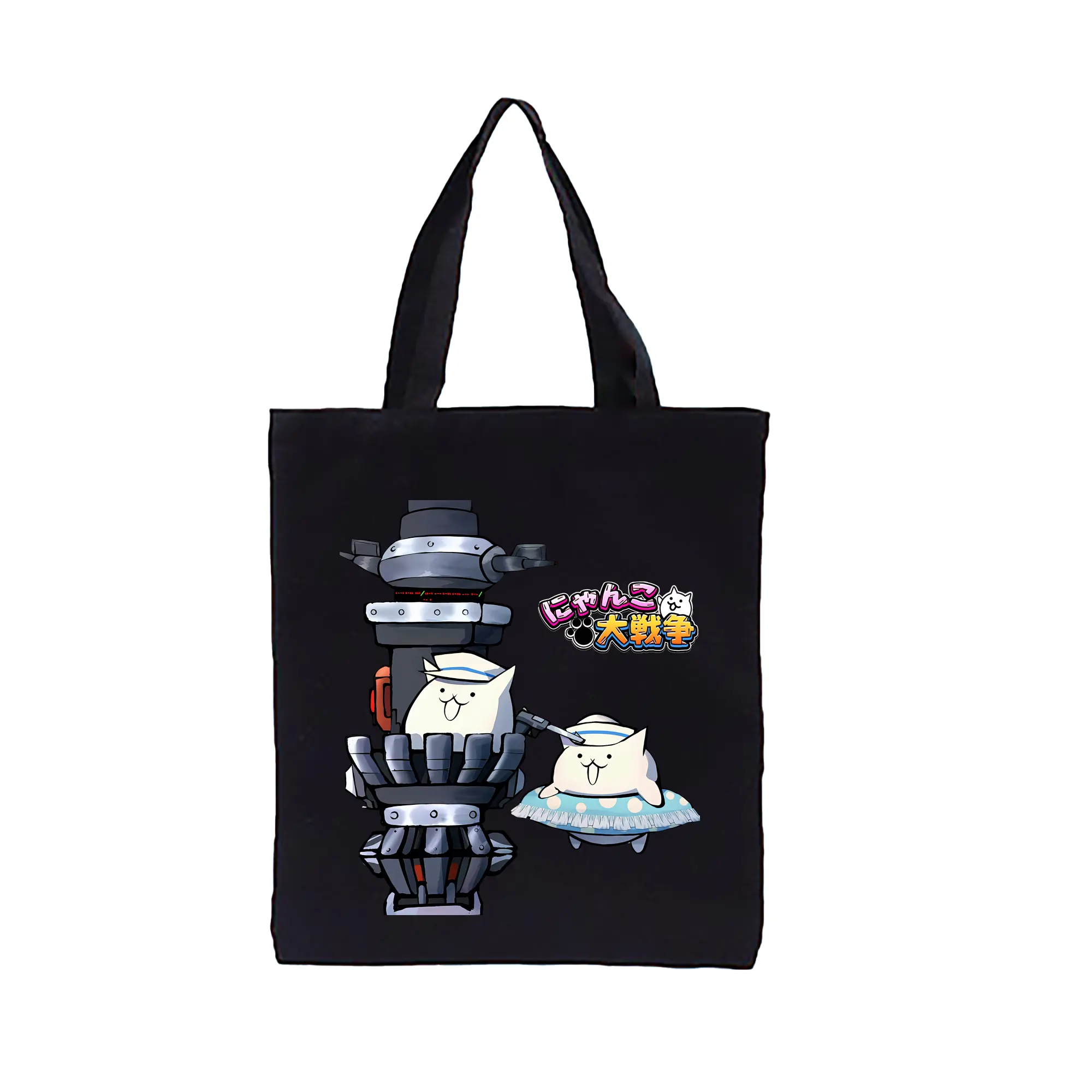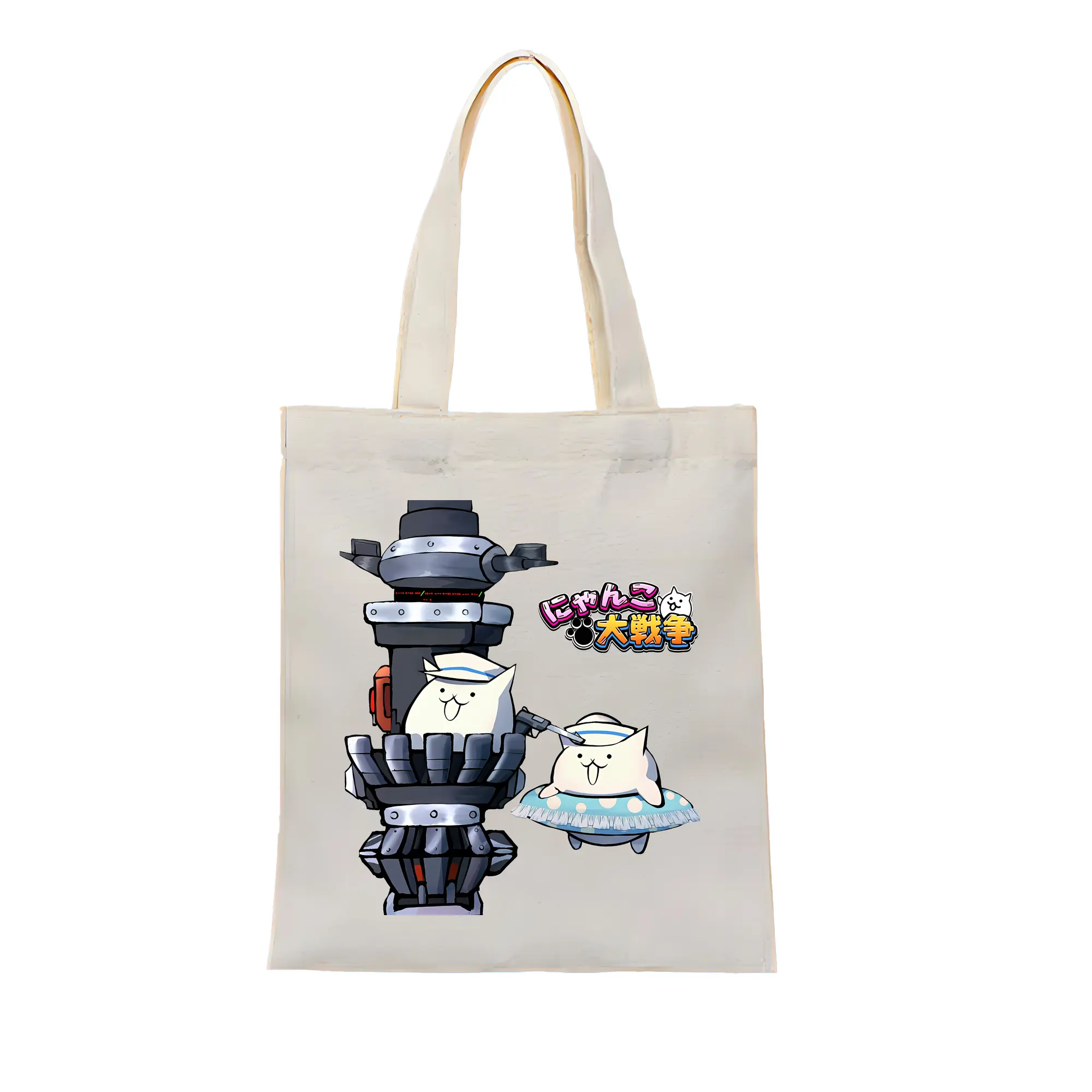 にゃんこ大戦争 グッズ - 縦型キャンバス手提げバッグ(トートバッグ) ・ キャンバス素材 ・ ショッピング用 ・ 軽量 丈夫 お手入れ簡単