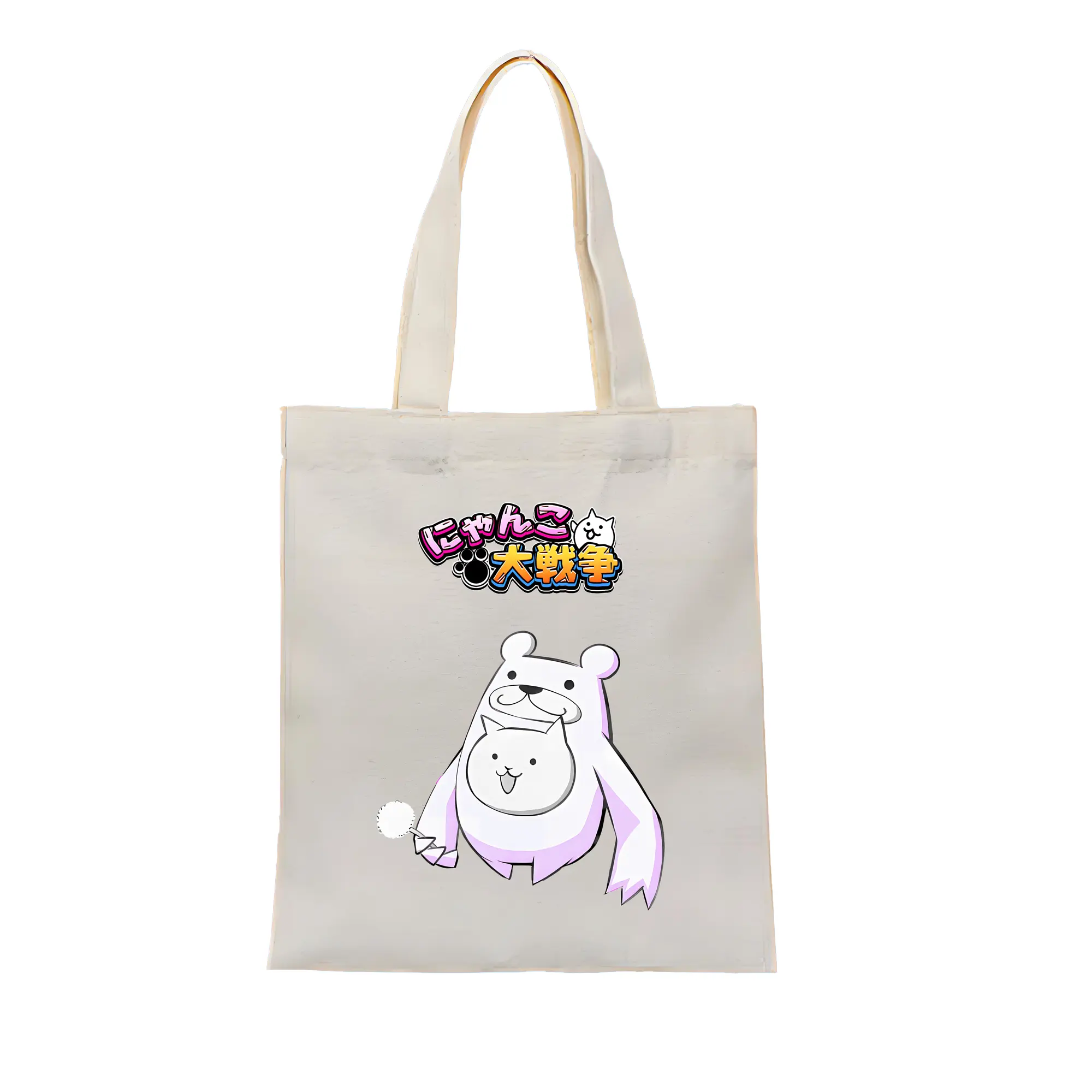 にゃんこ大戦争 グッズ - 縦型キャンバス手提げバッグ(トートバッグ) ・ キャンバス素材 ・ ショッピング用 ・ 軽量 丈夫 お手入れ簡単