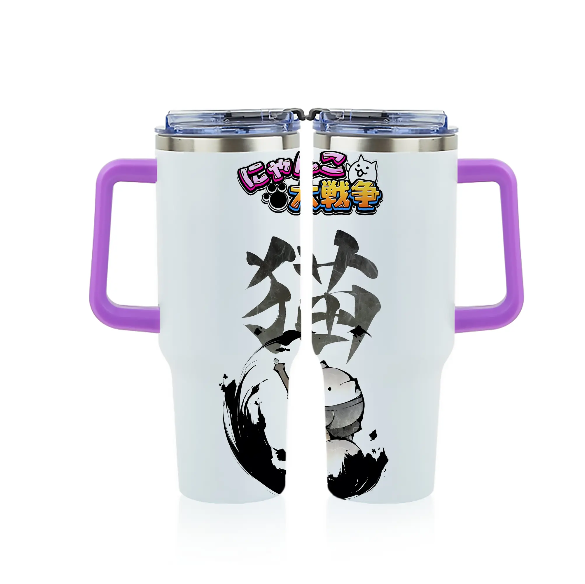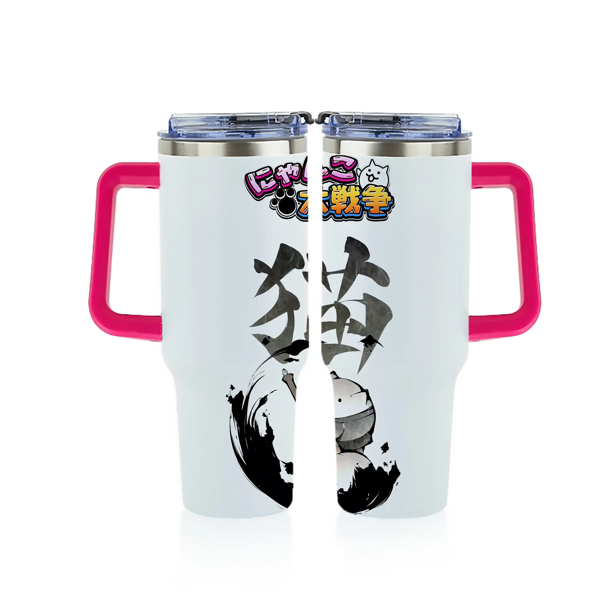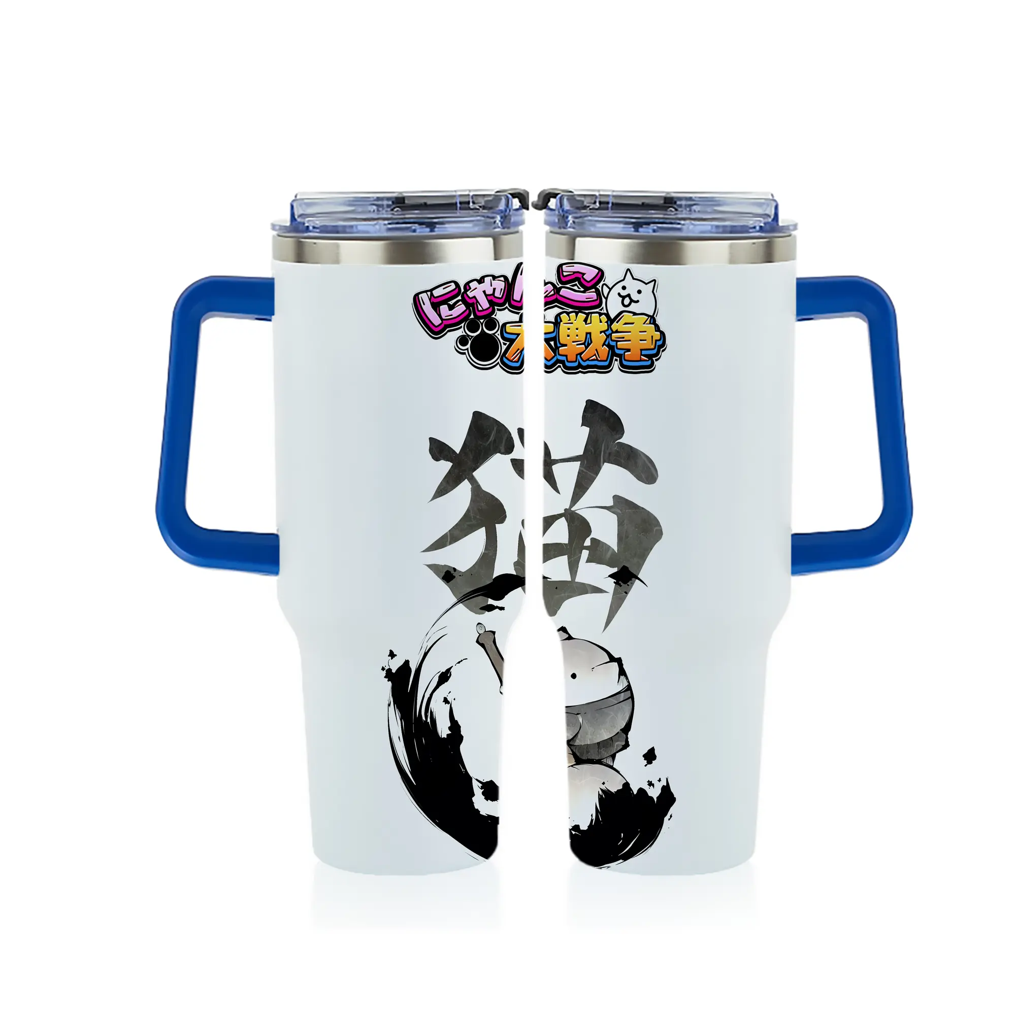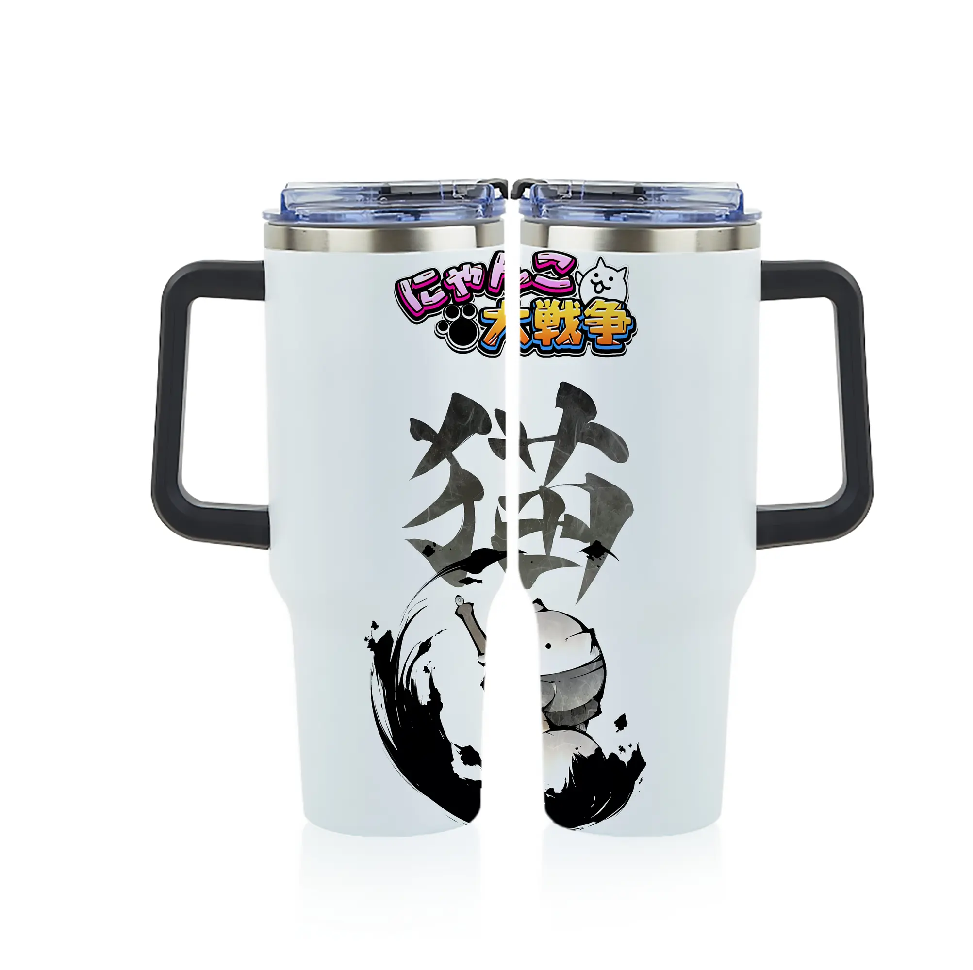 にゃんこ大戦争 グッズ - 1200mL フルプリント車用タンブラー ・ 304ステンレス 内側 ・ 201ステンレス 外側 ・ 保温 保冷 ・ 通勤 ドライブ アウトドア用