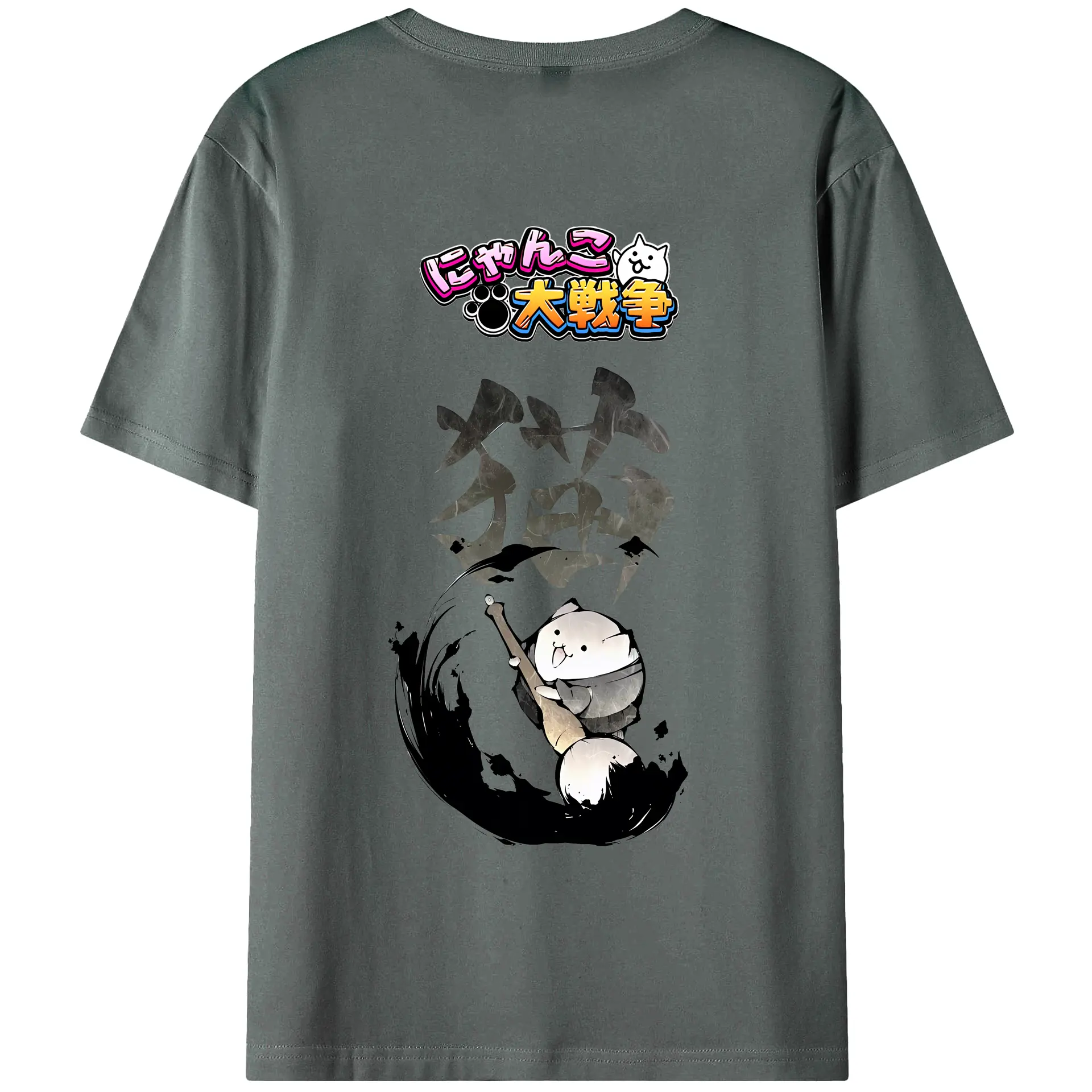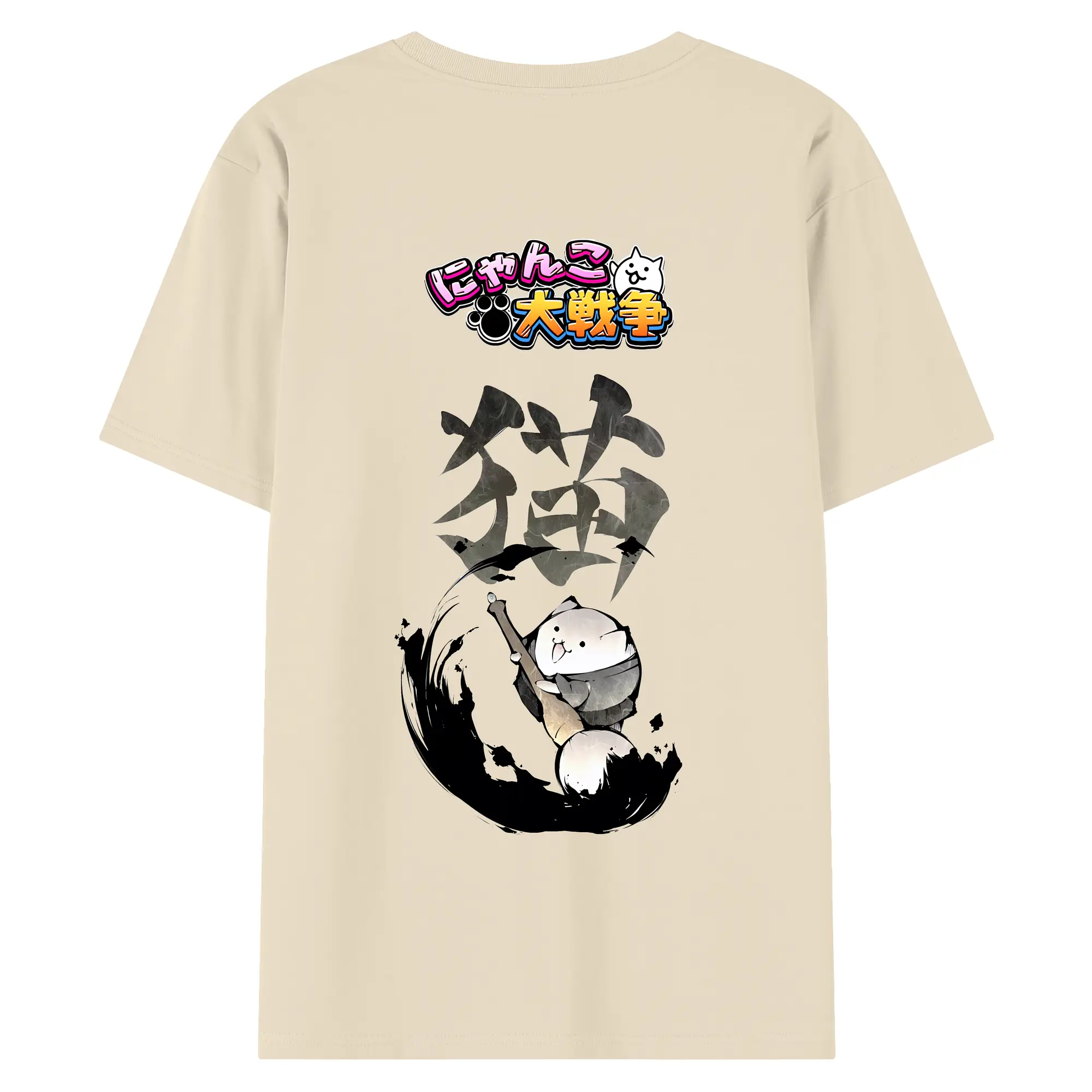 にゃんこ大戦争 グッズ - 綿100% ヴィンテージ風 半袖Tシャツ ・ 背面プリント ・ 柔らか肌触り ・ 通気性 快適 ・ スポーツ カジュアル 外出用