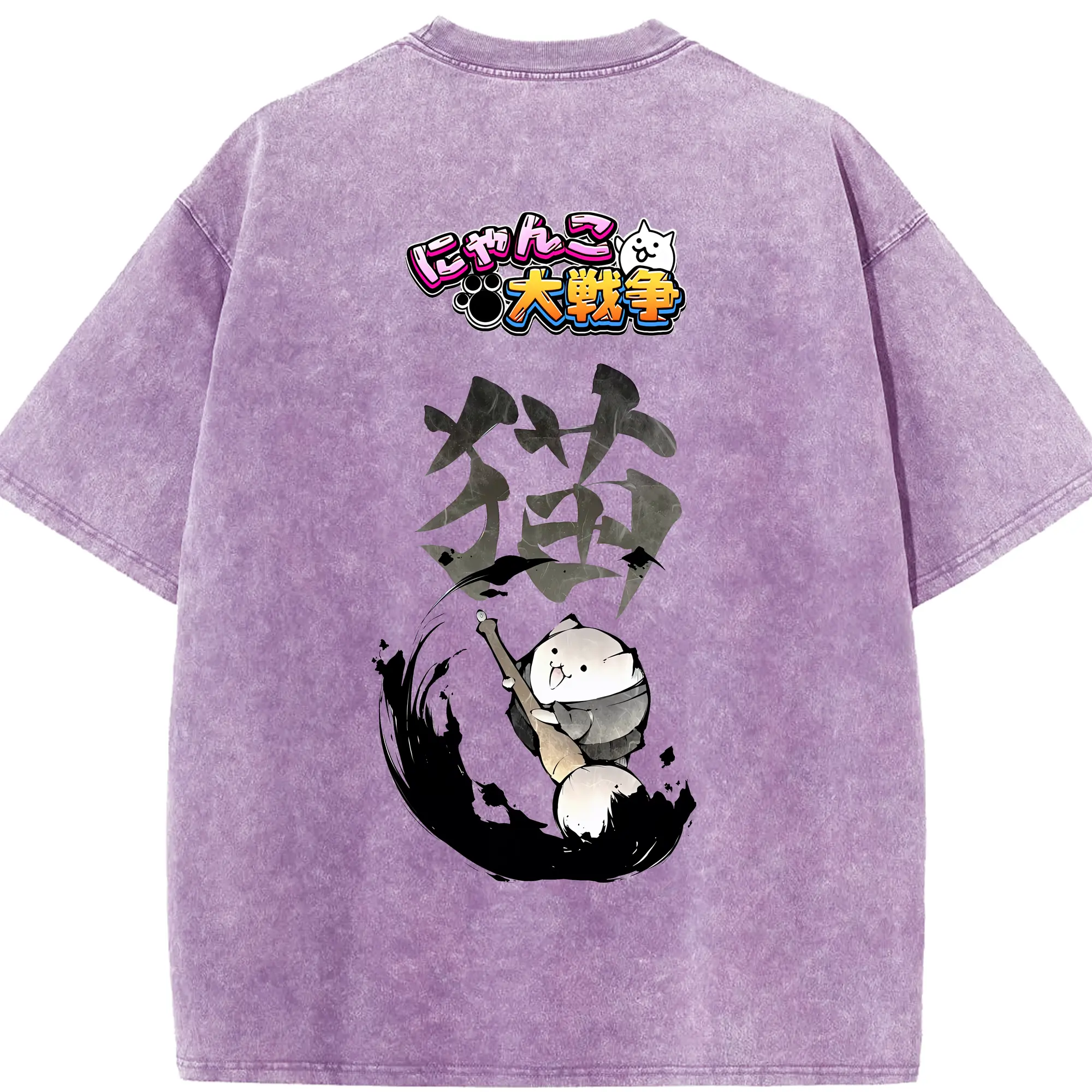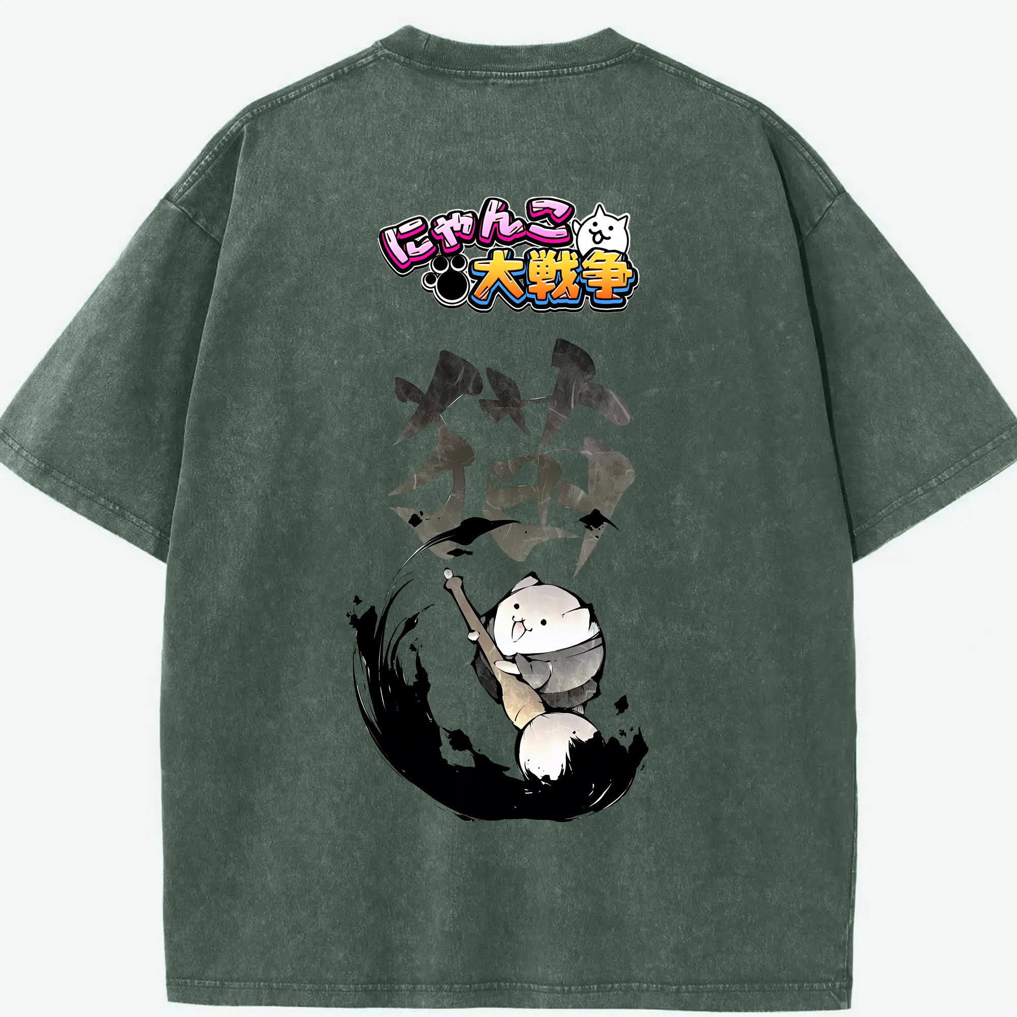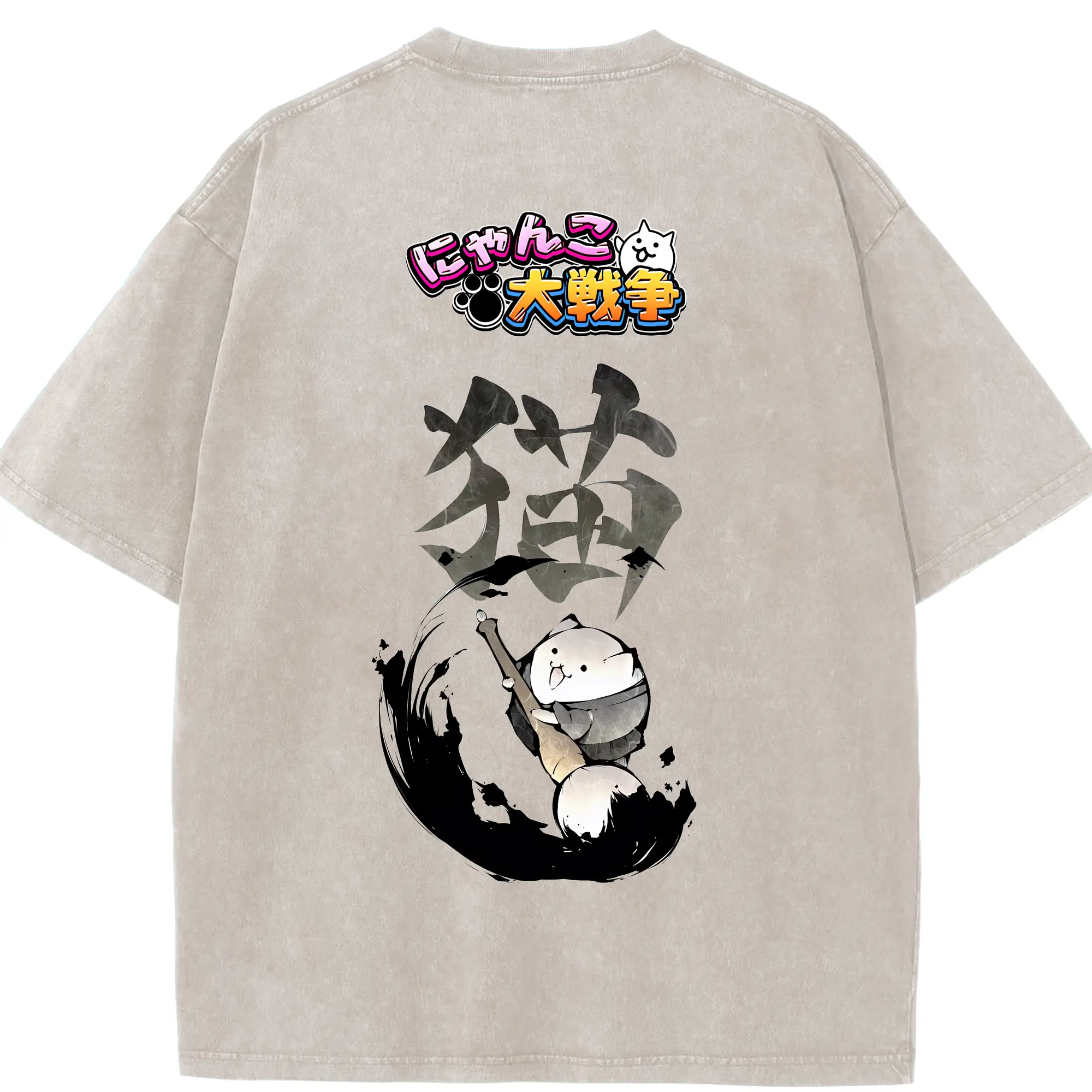 にゃんこ大戦争 グッズ - 綿100% ヴィンテージ風 半袖Tシャツ ・ フロントプリント ・ 柔らか肌触り ・ 通気性 快適 ・ スポーツ カジュアル 外出用
