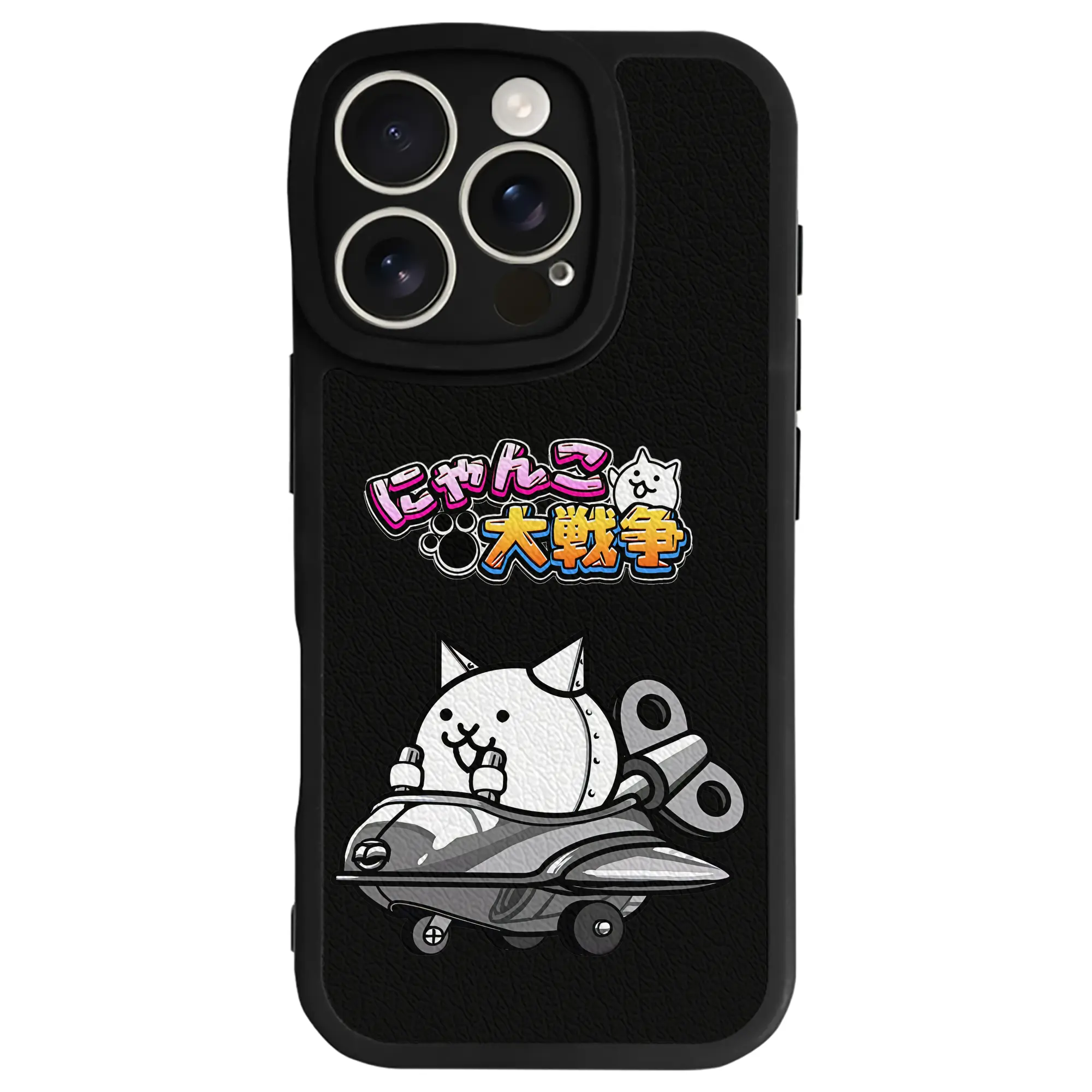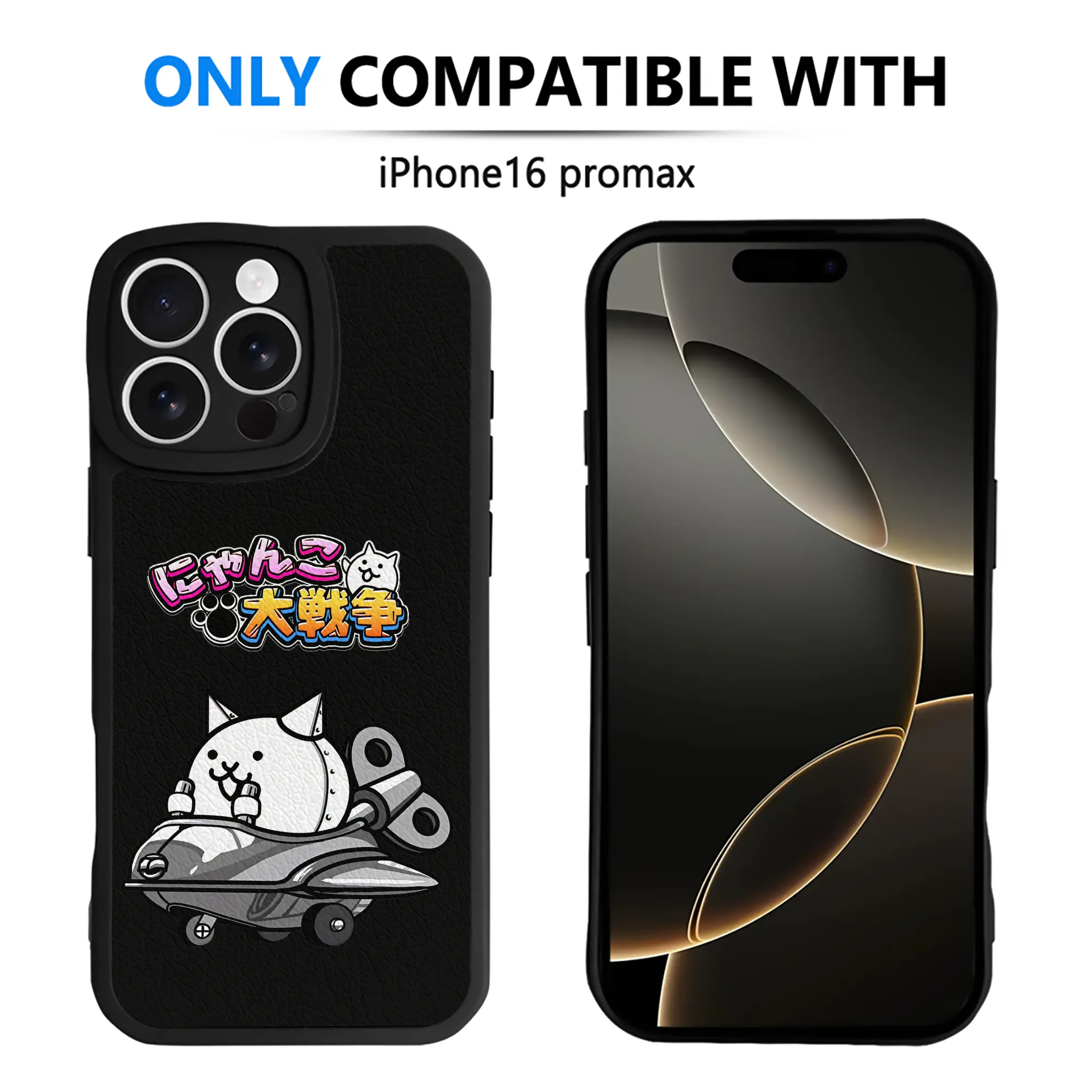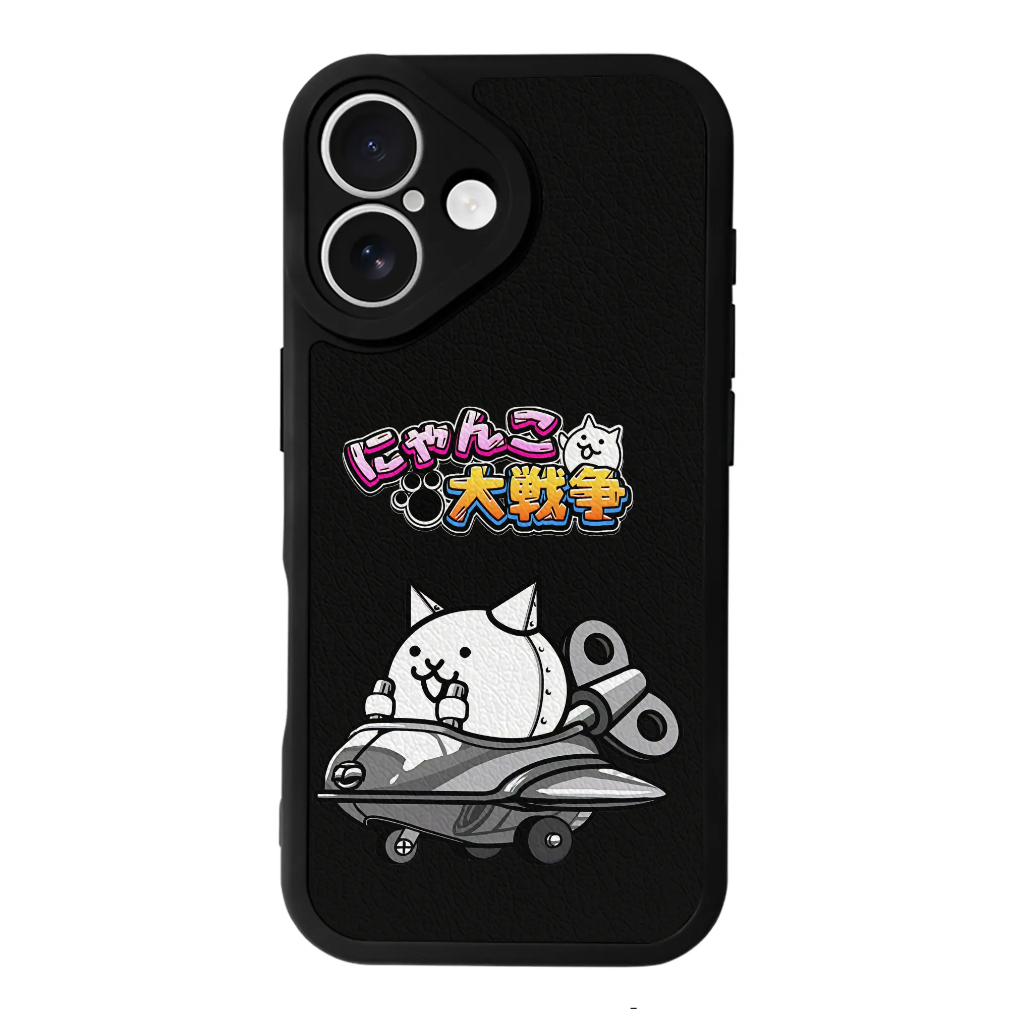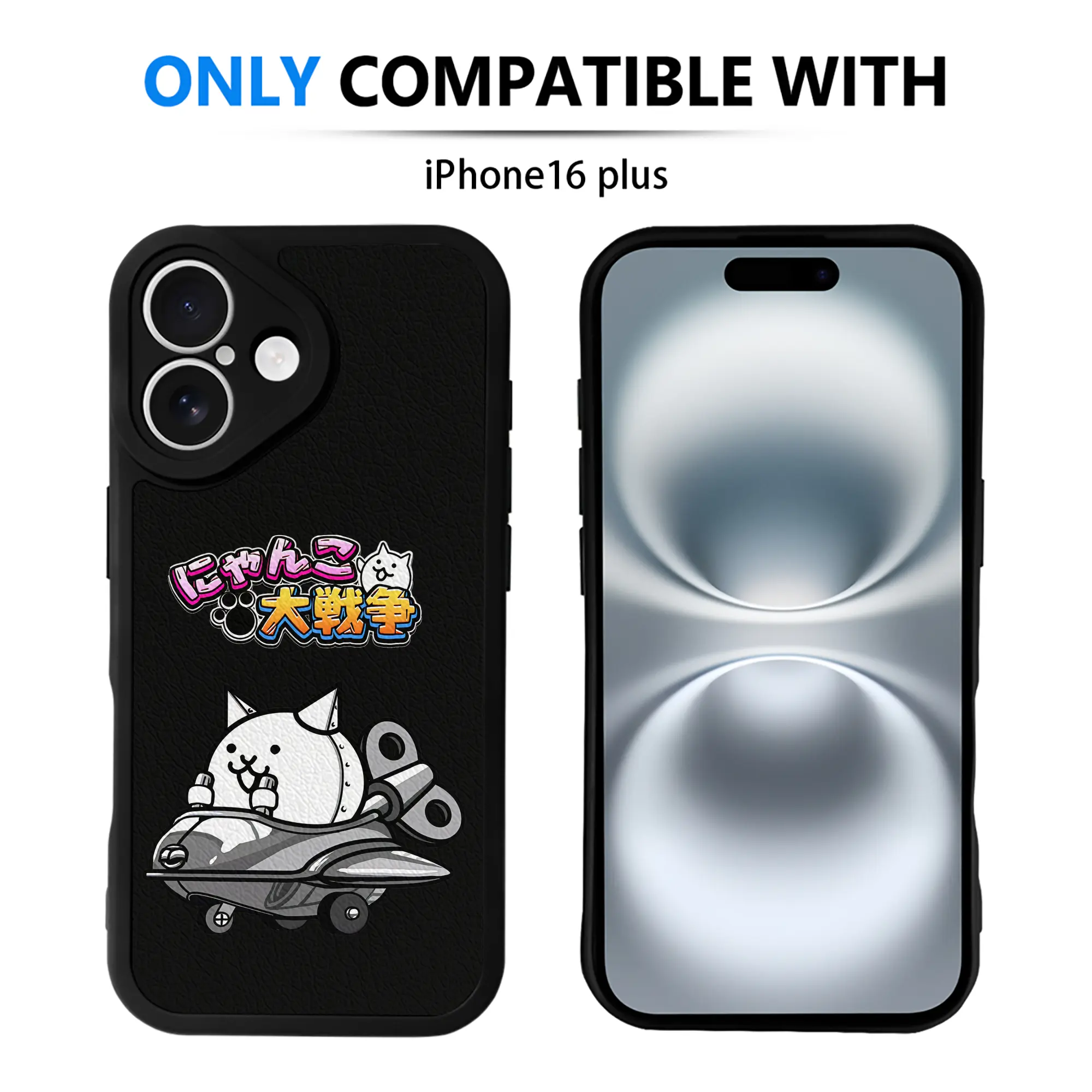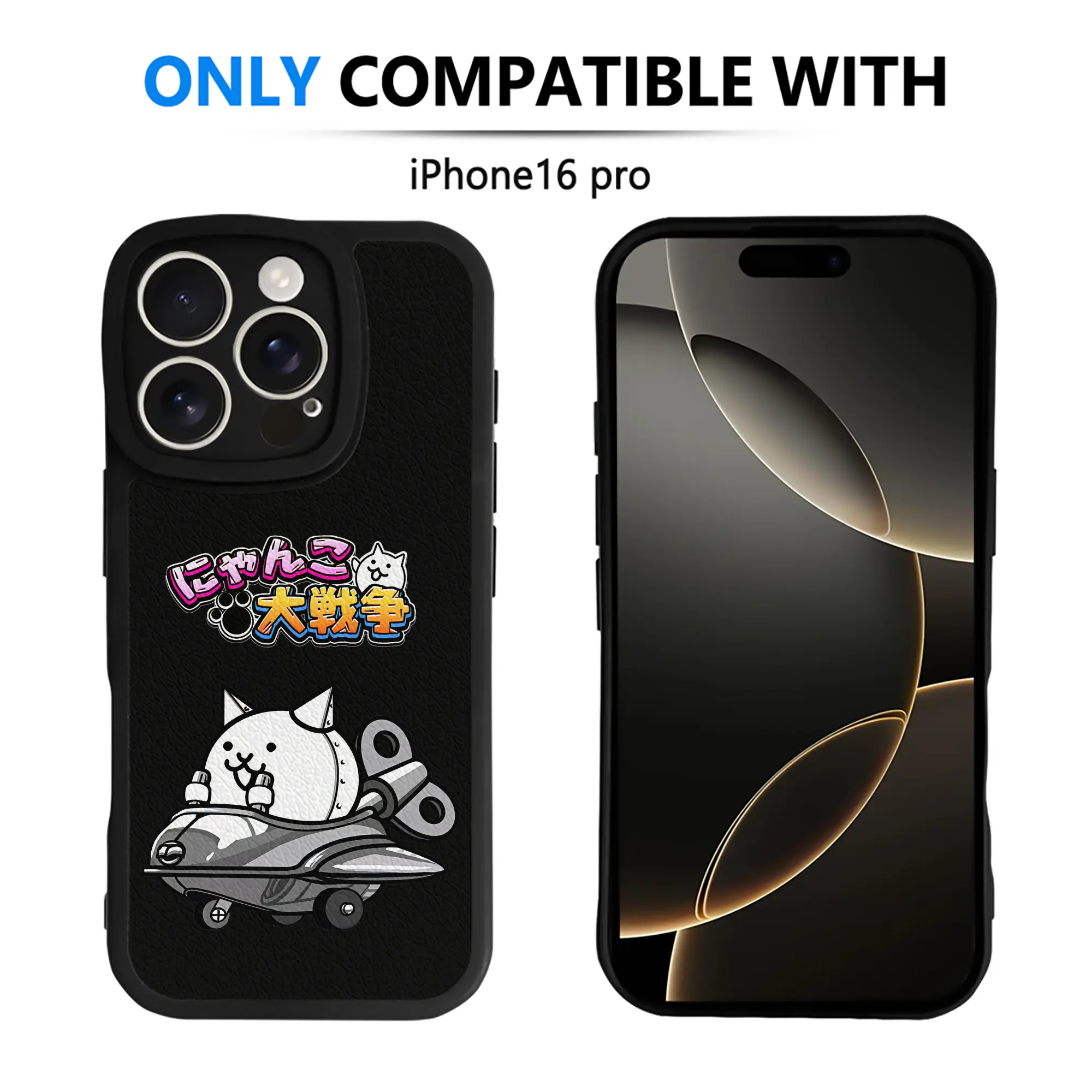 にゃんこ大戦争 グッズ - IPhone 16シリーズ対応 ・ シリコンスマホケース ・ レザー調 ・ 高精度フィット ・ 耐衝撃 ・ ワイヤレス充電対応 ・ 精密カット