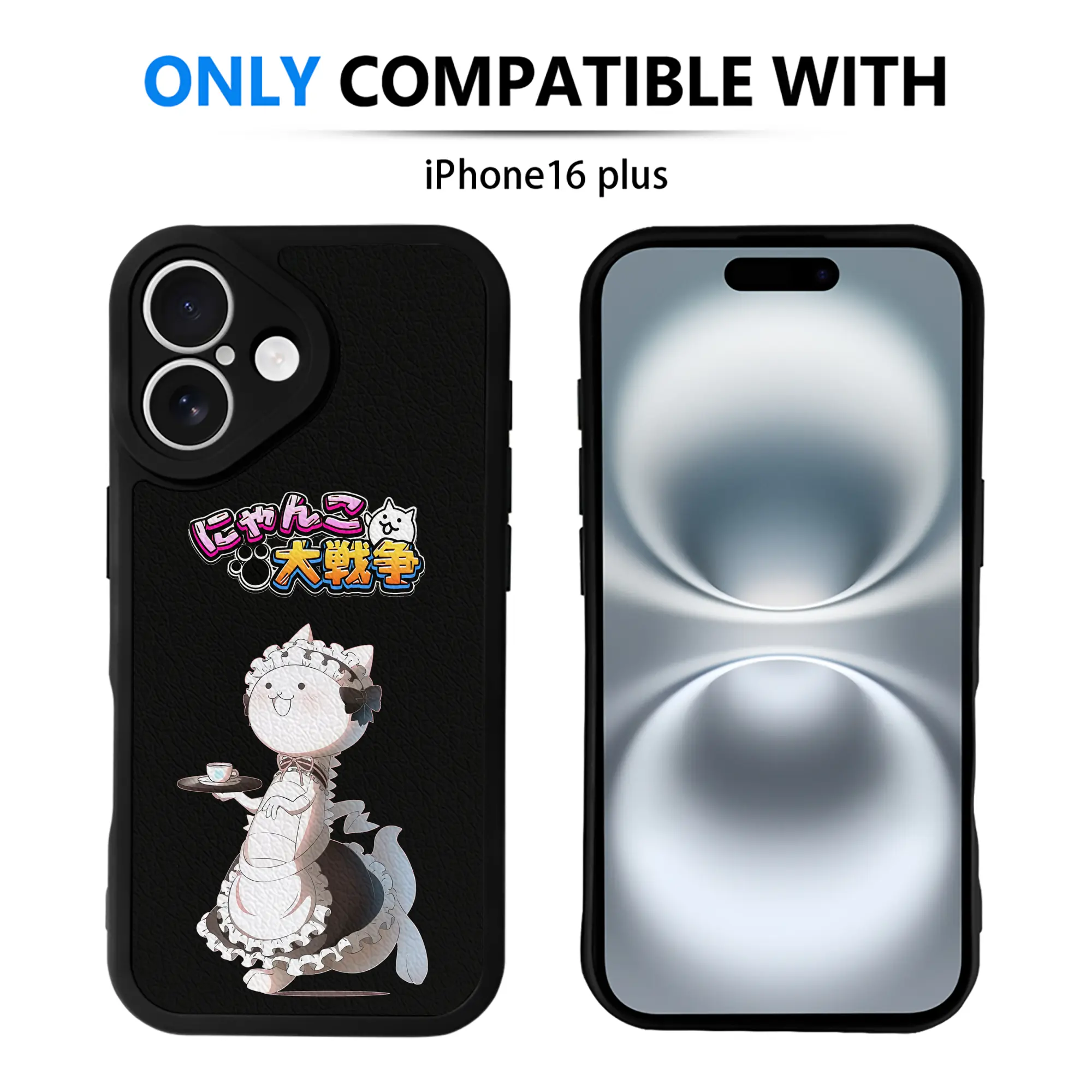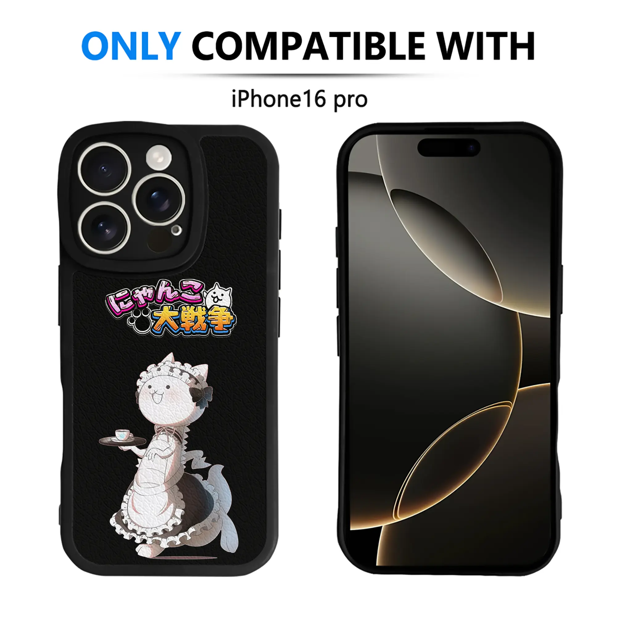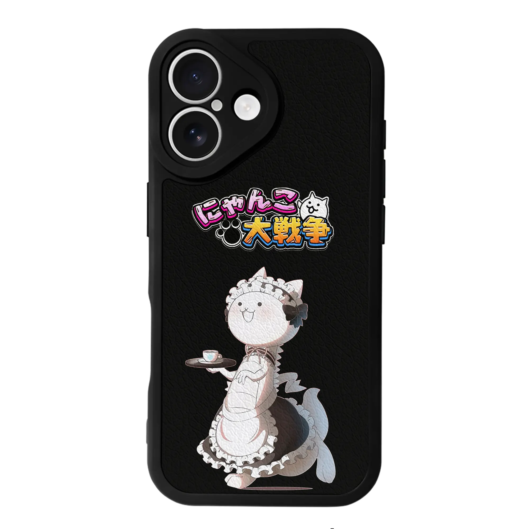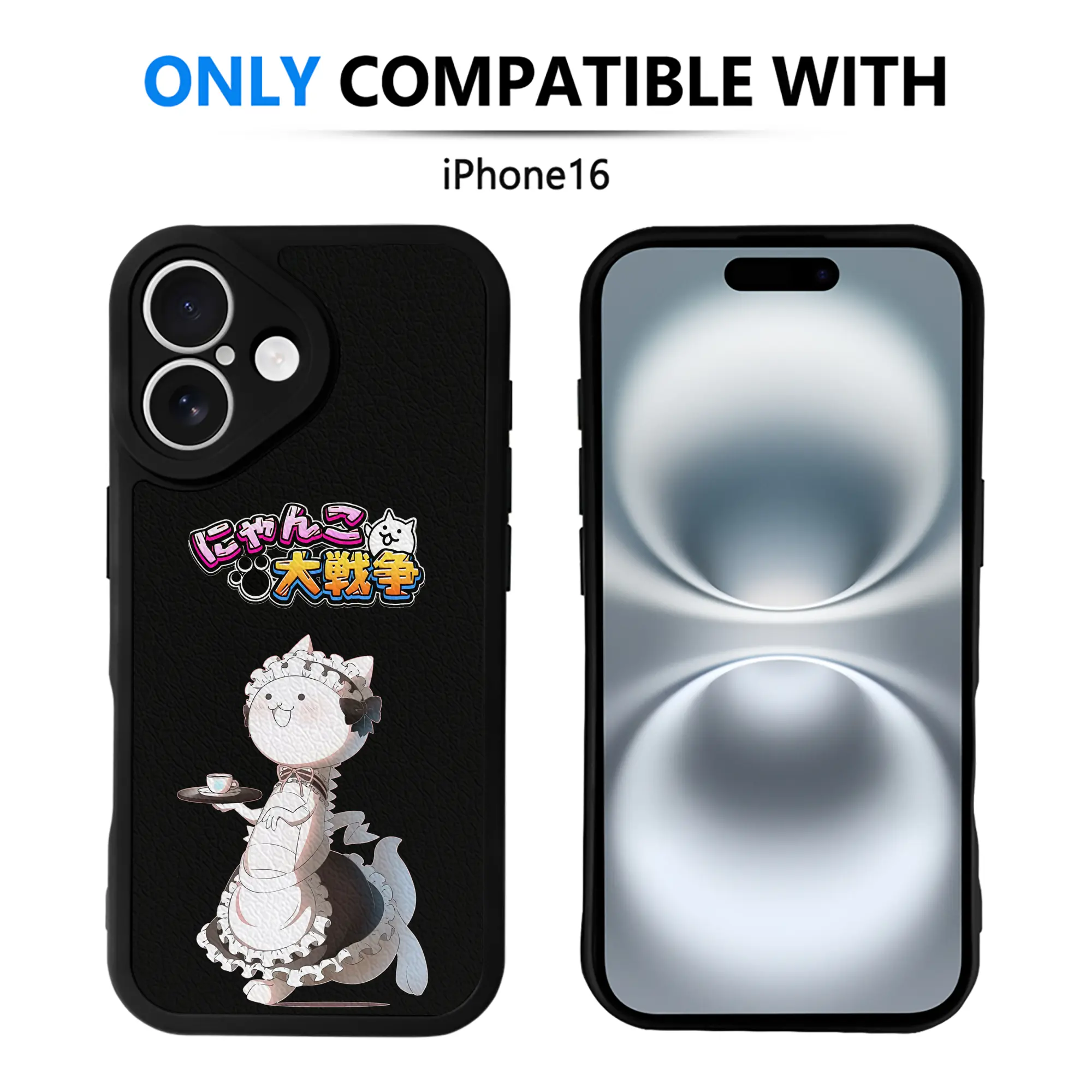 にゃんこ大戦争 グッズ - IPhone 16シリーズ対応 ・ シリコンスマホケース ・ レザー調 ・ 高精度フィット ・ 耐衝撃 ・ ワイヤレス充電対応 ・ 精密カット