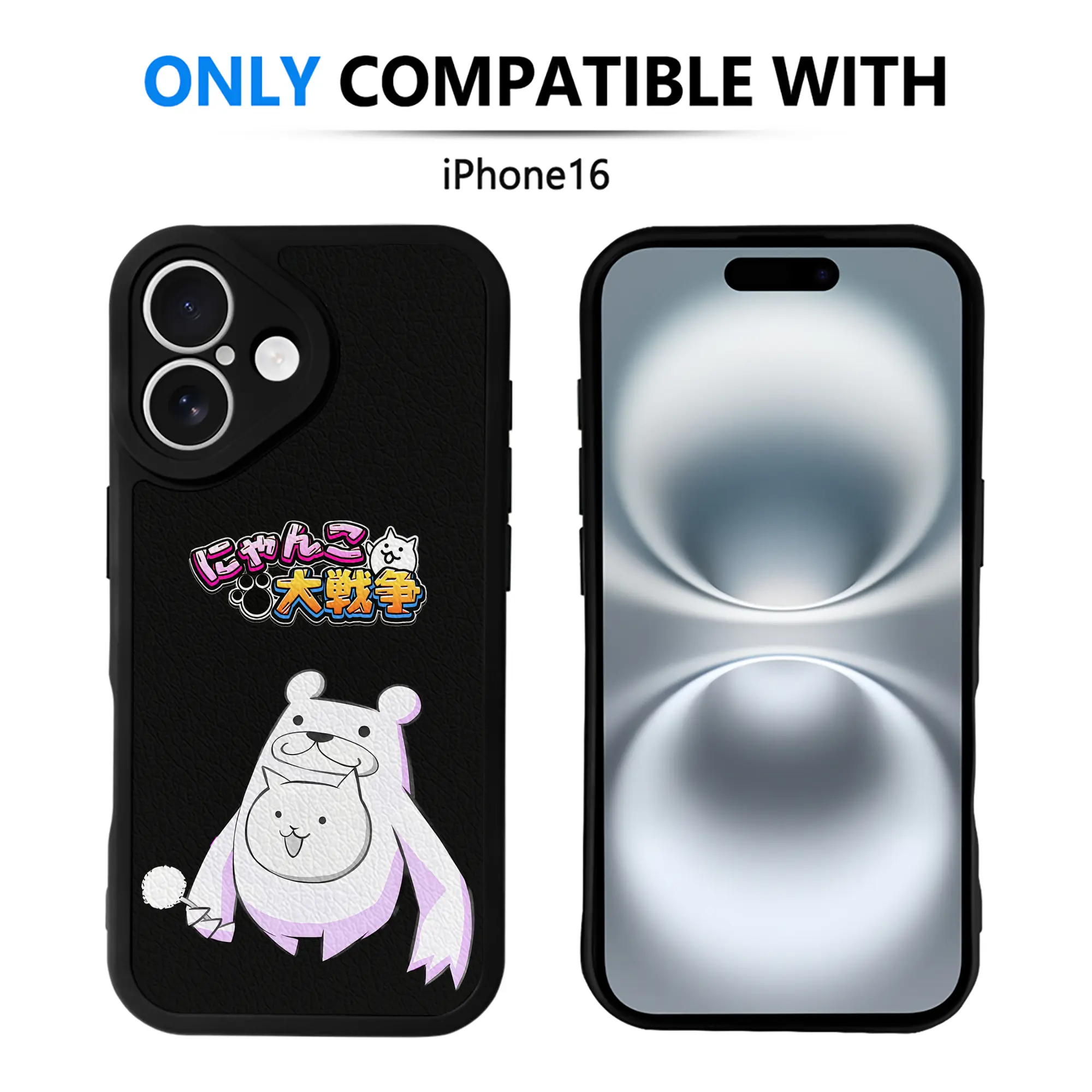 にゃんこ大戦争 グッズ - IPhone 16シリーズ対応 ・ シリコンスマホケース ・ レザー調 ・ 高精度フィット ・ 耐衝撃 ・ ワイヤレス充電対応 ・ 精密カット