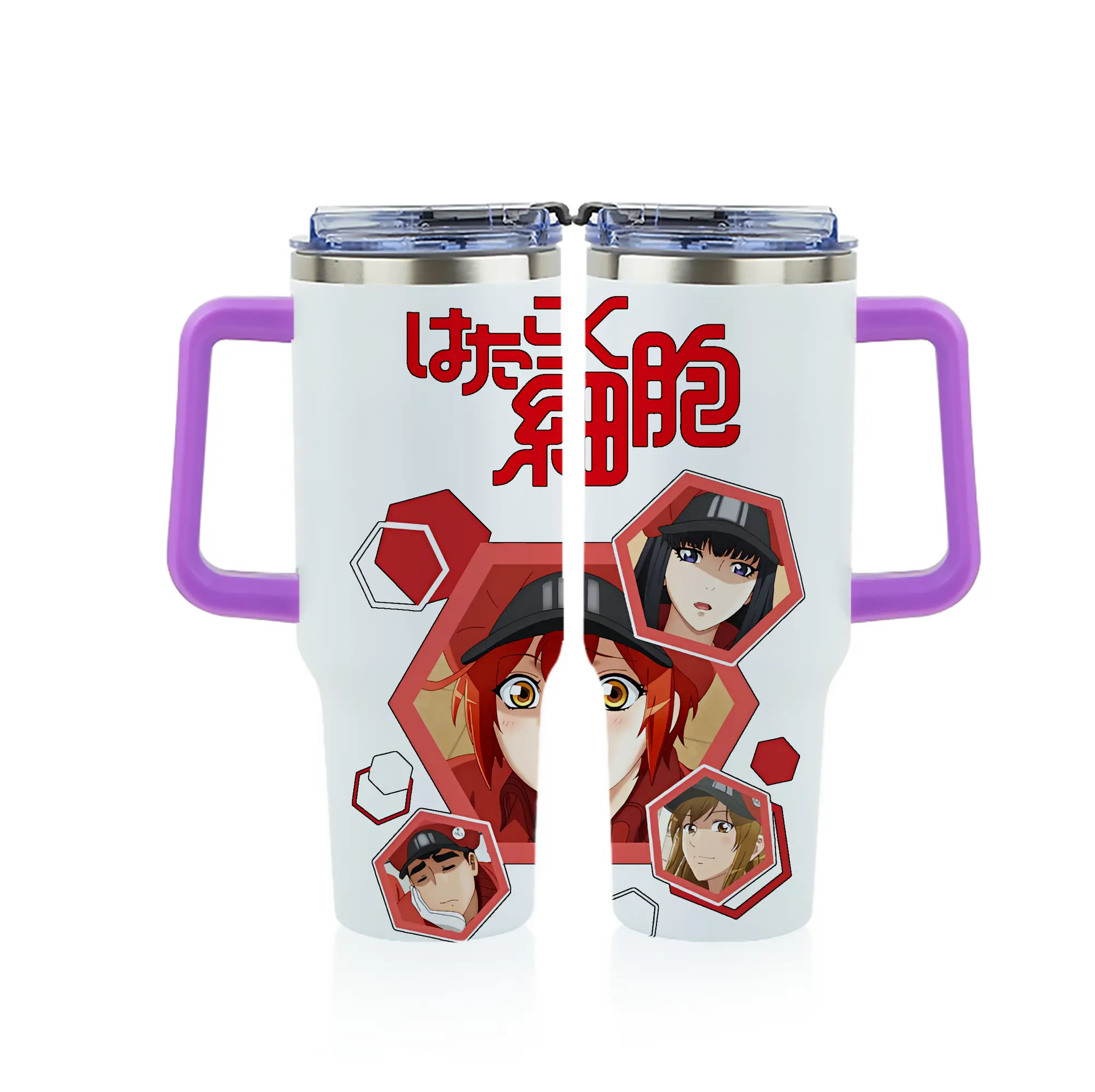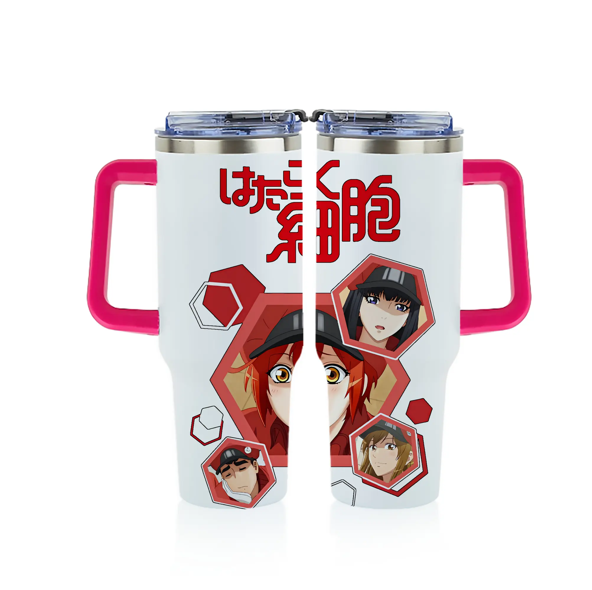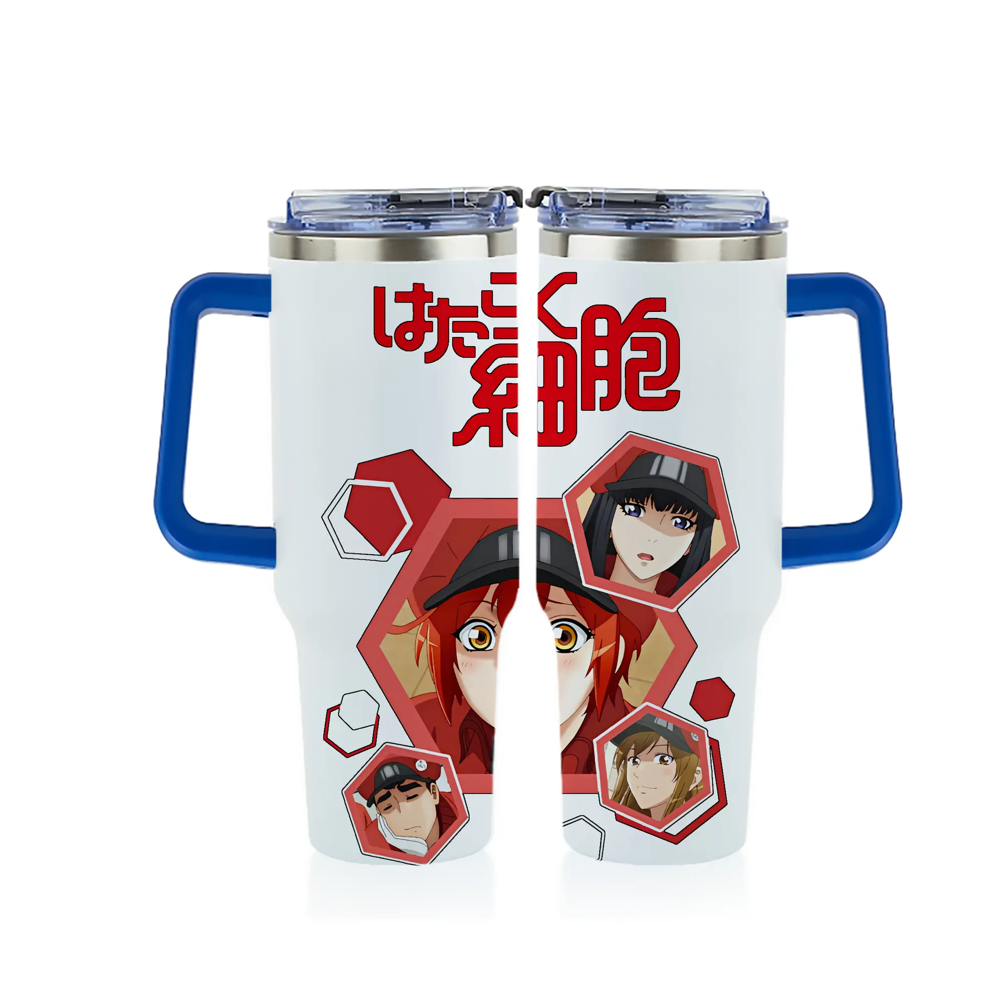 はたらく細胞 グッズ,赤血球 - 1200mL フルプリント車用タンブラー ・ 304ステンレス 内側 ・ 201ステンレス 外側 ・ 保温 保冷 ・ 通勤 ドライブ アウトドア用