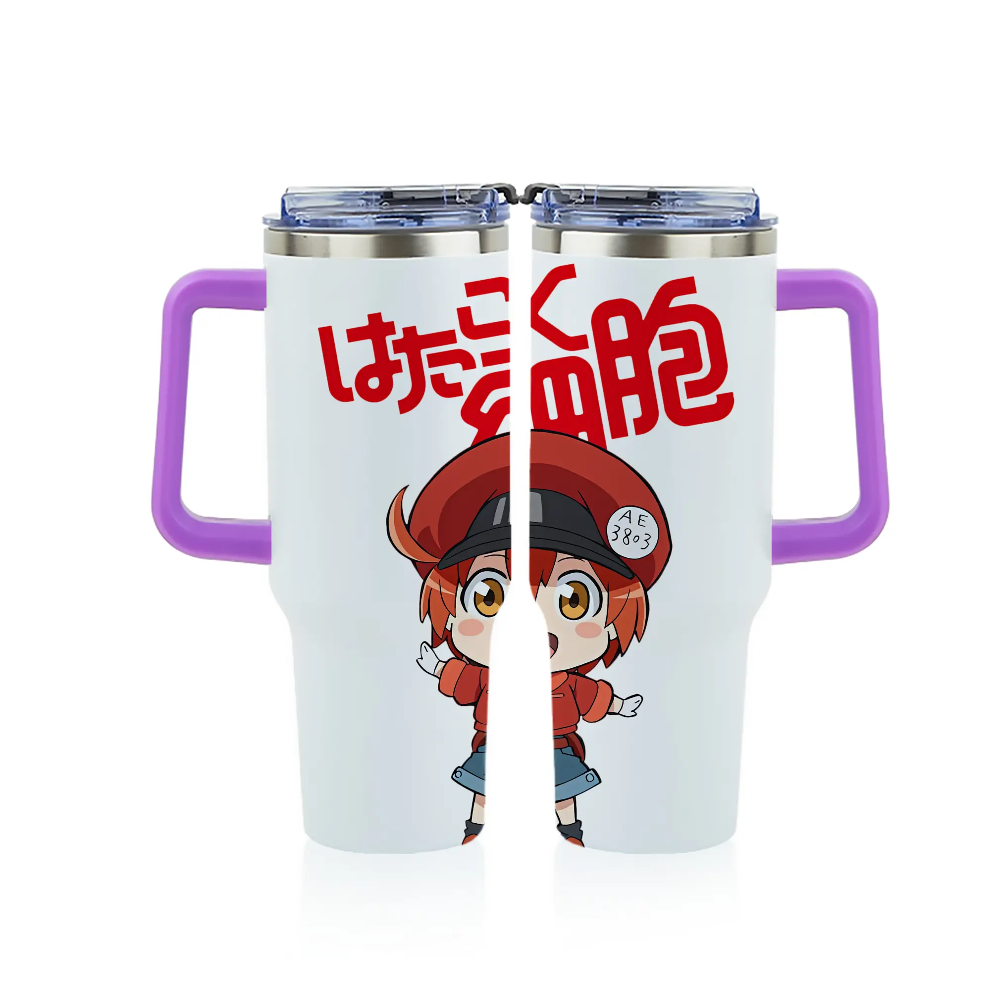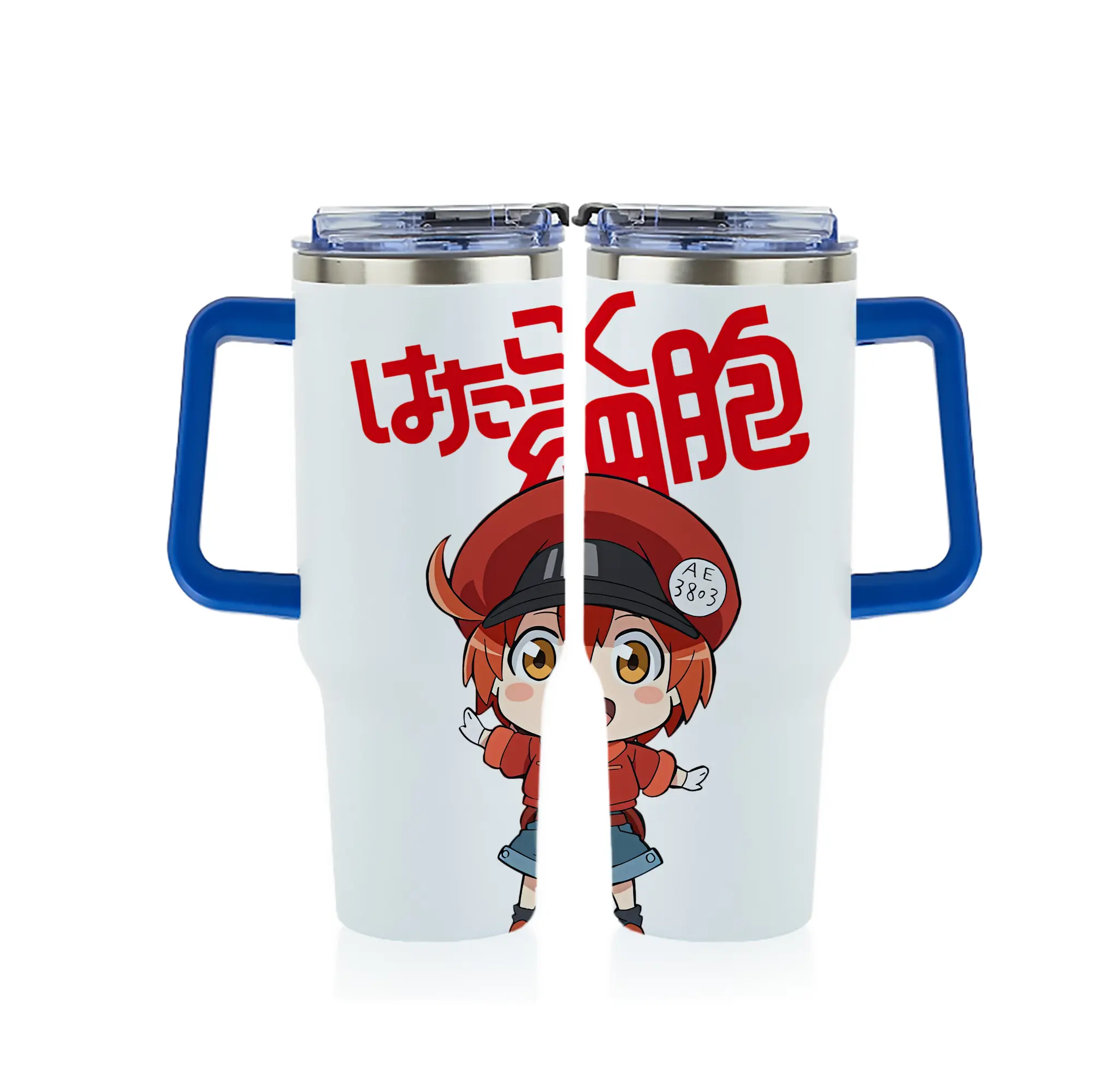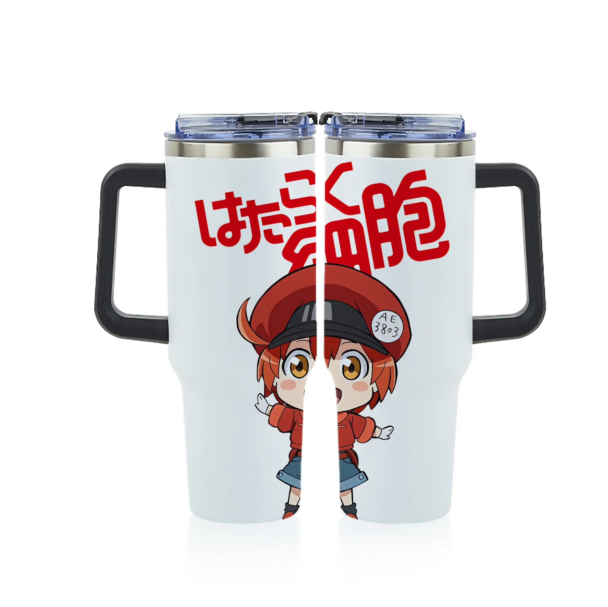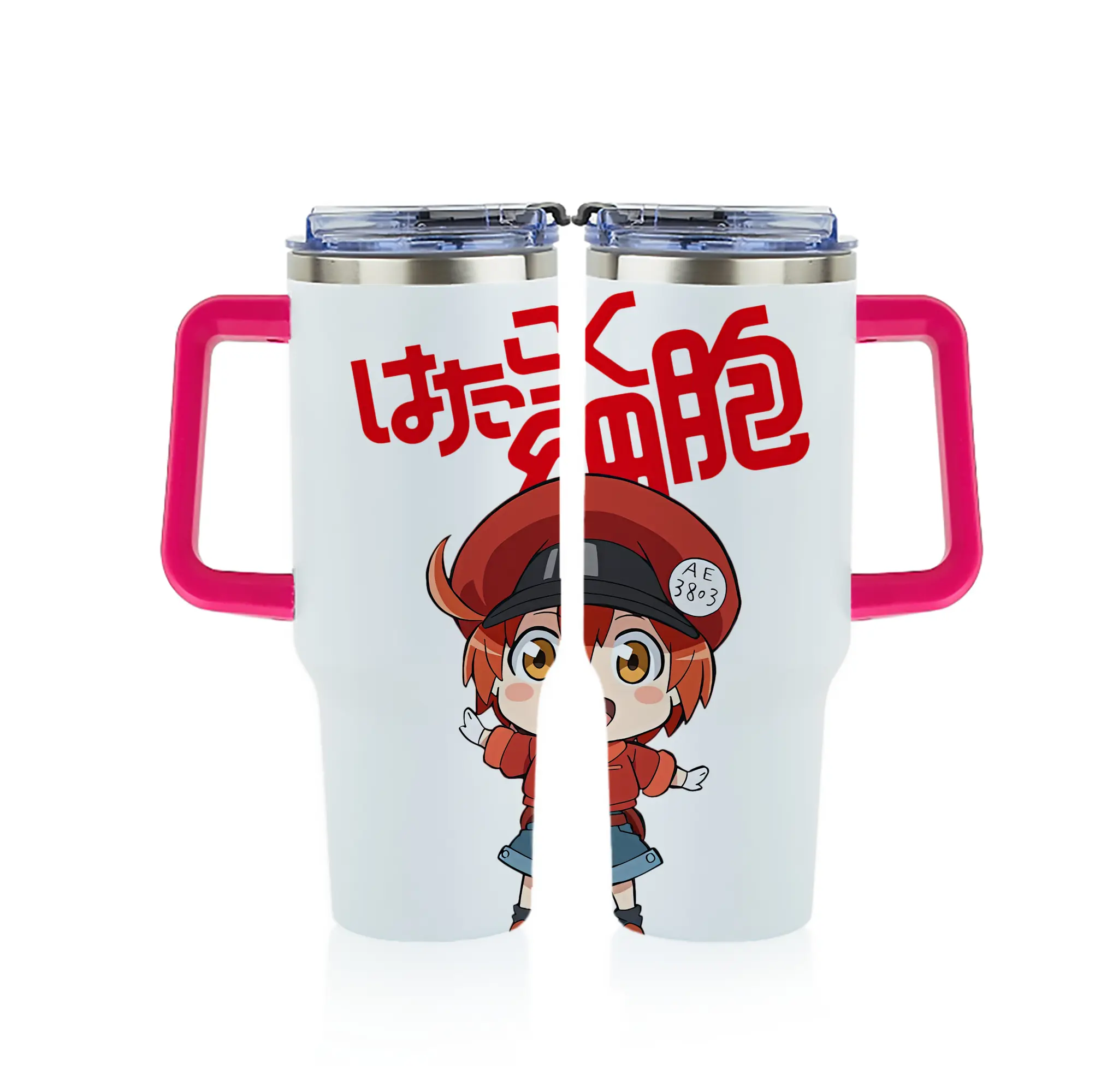 はたらく細胞 グッズ,赤血球 - 1200mL フルプリント車用タンブラー ・ 304ステンレス 内側 ・ 201ステンレス 外側 ・ 保温 保冷 ・ 通勤 ドライブ アウトドア用
