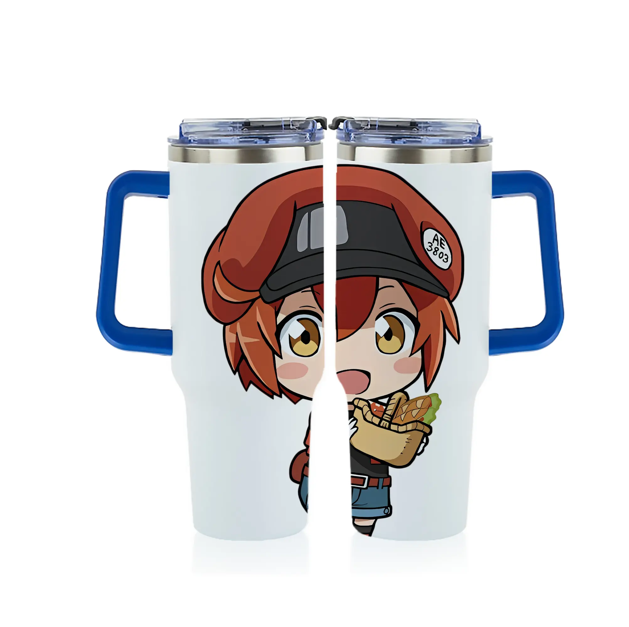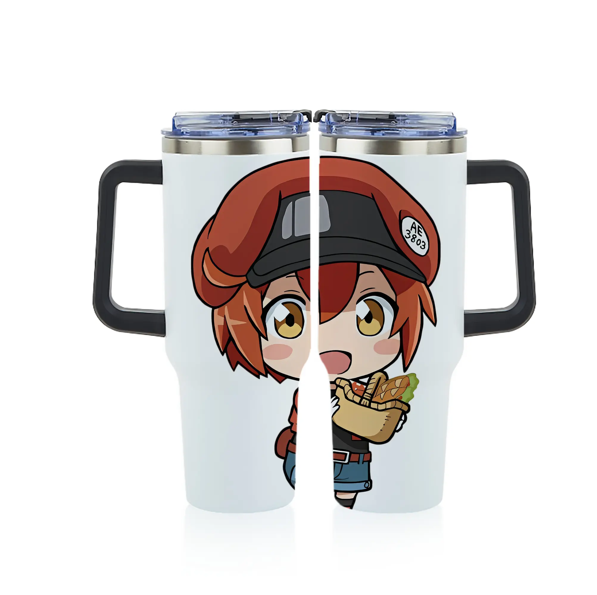 はたらく細胞 グッズ,赤血球 - 1200mL フルプリント車用タンブラー ・ 304ステンレス 内側 ・ 201ステンレス 外側 ・ 保温 保冷 ・ 通勤 ドライブ アウトドア用