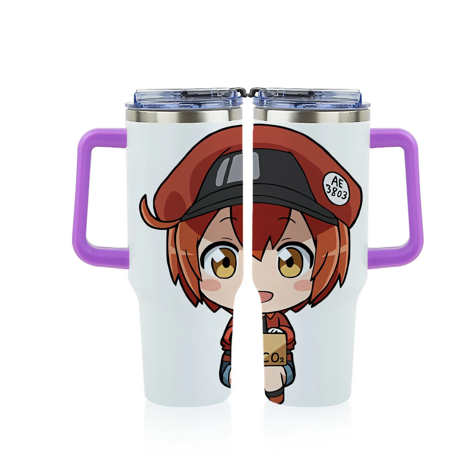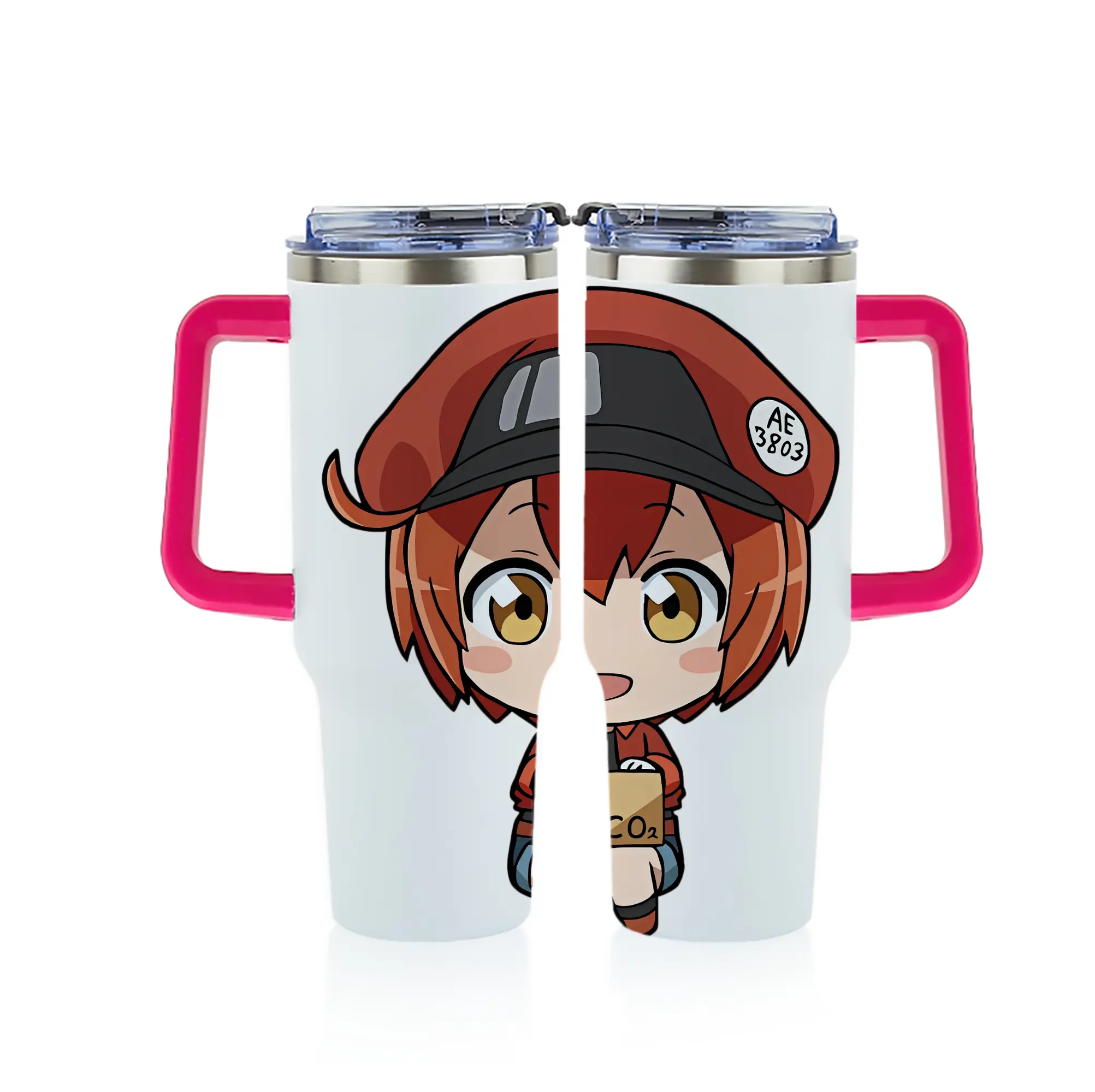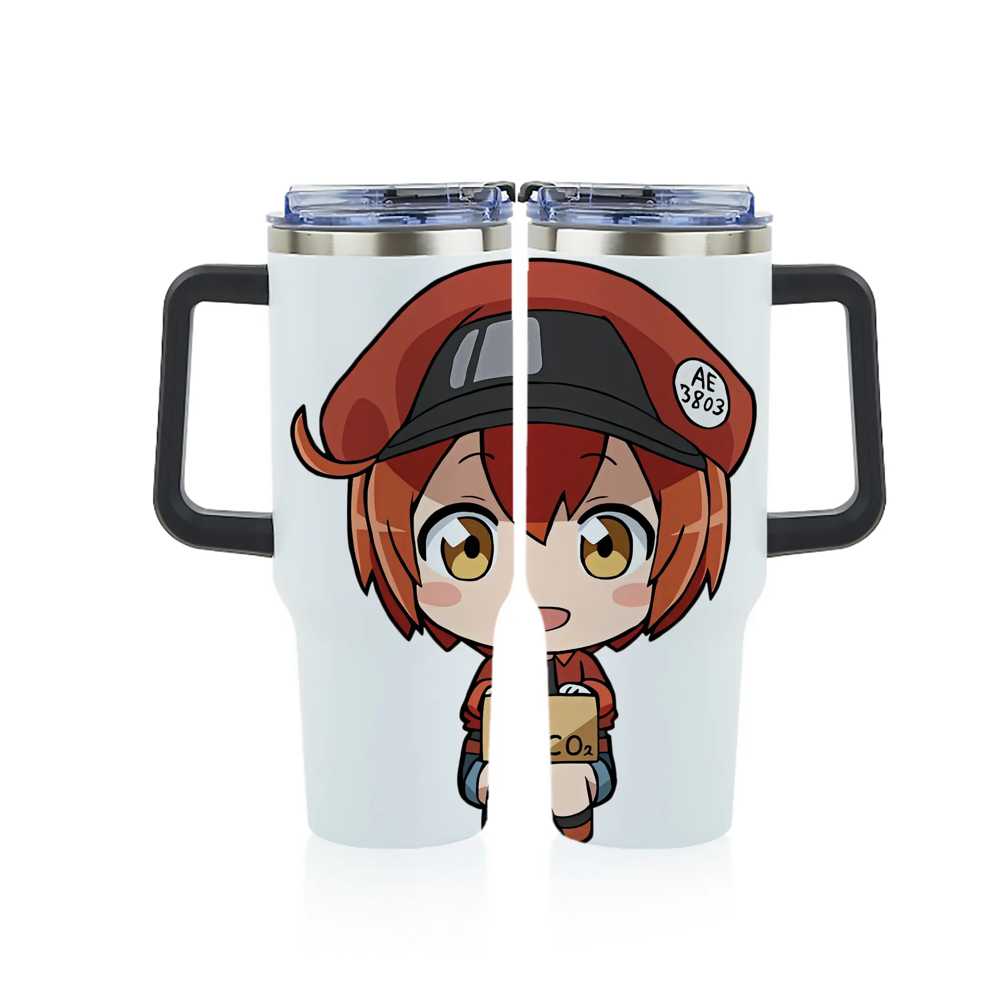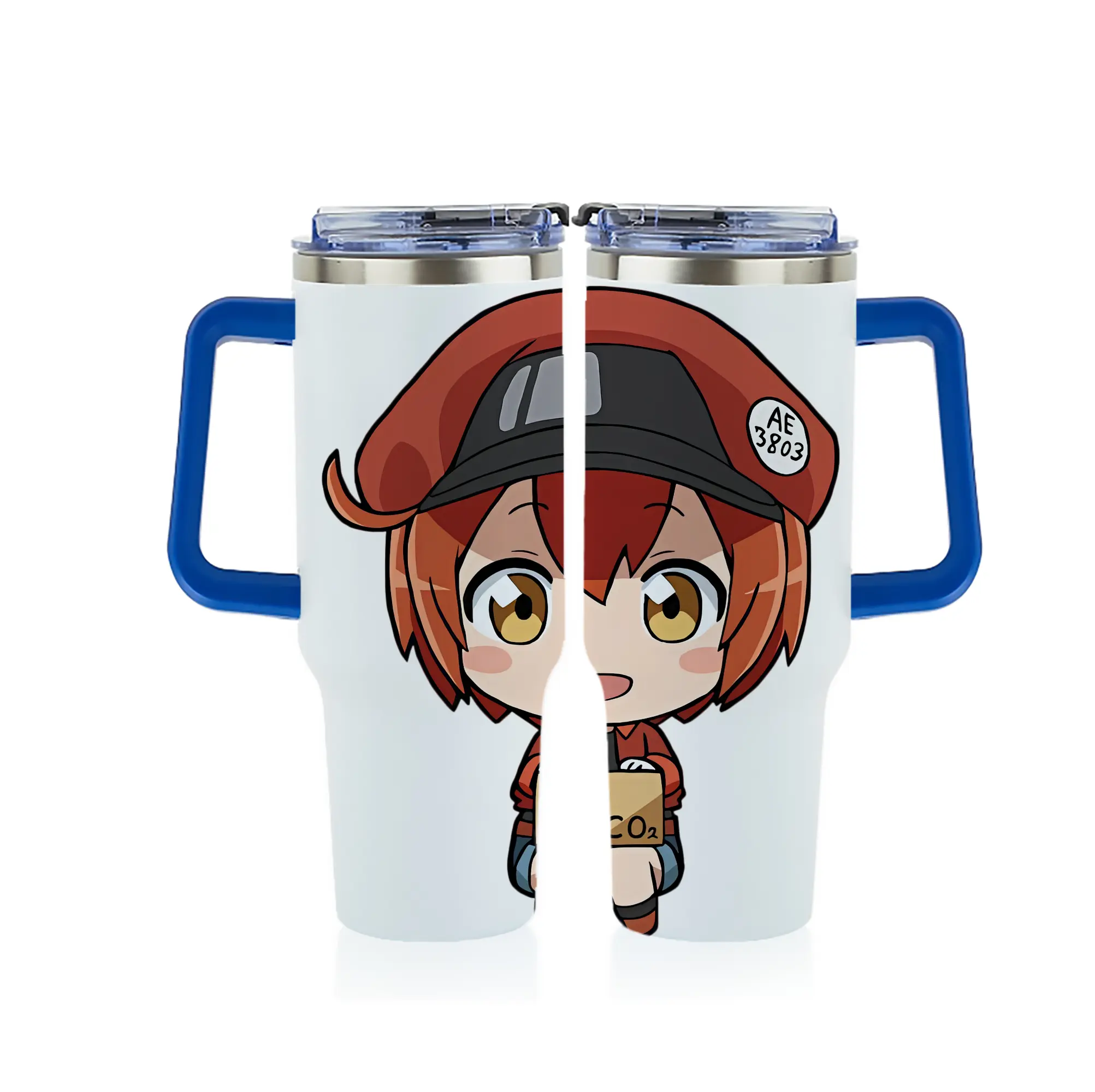 はたらく細胞 グッズ,赤血球 - 1200mL フルプリント車用タンブラー ・ 304ステンレス 内側 ・ 201ステンレス 外側 ・ 保温 保冷 ・ 通勤 ドライブ アウトドア用