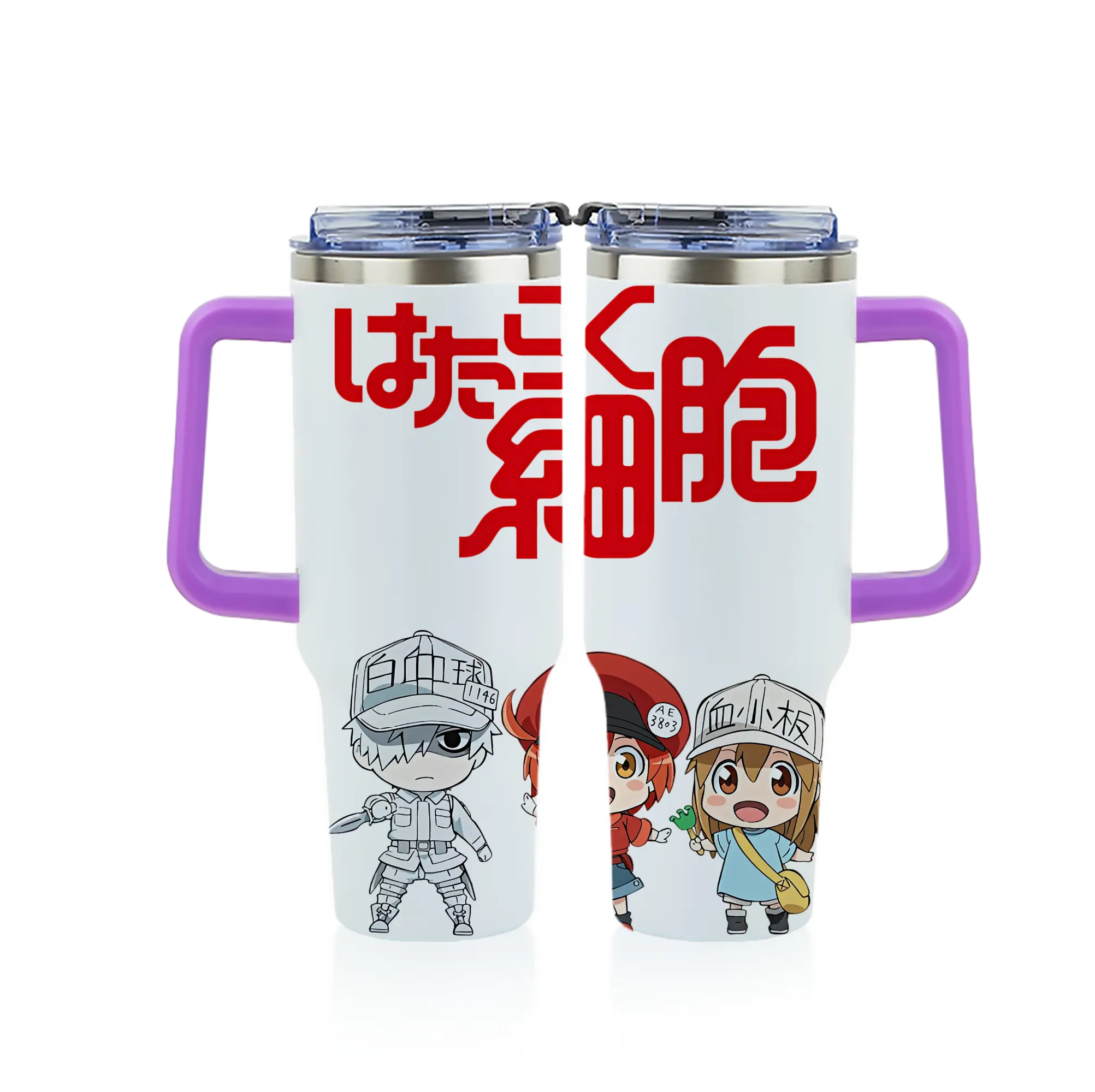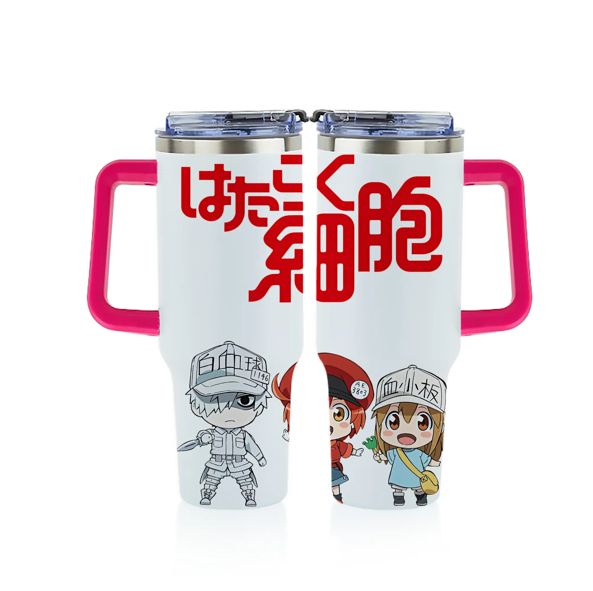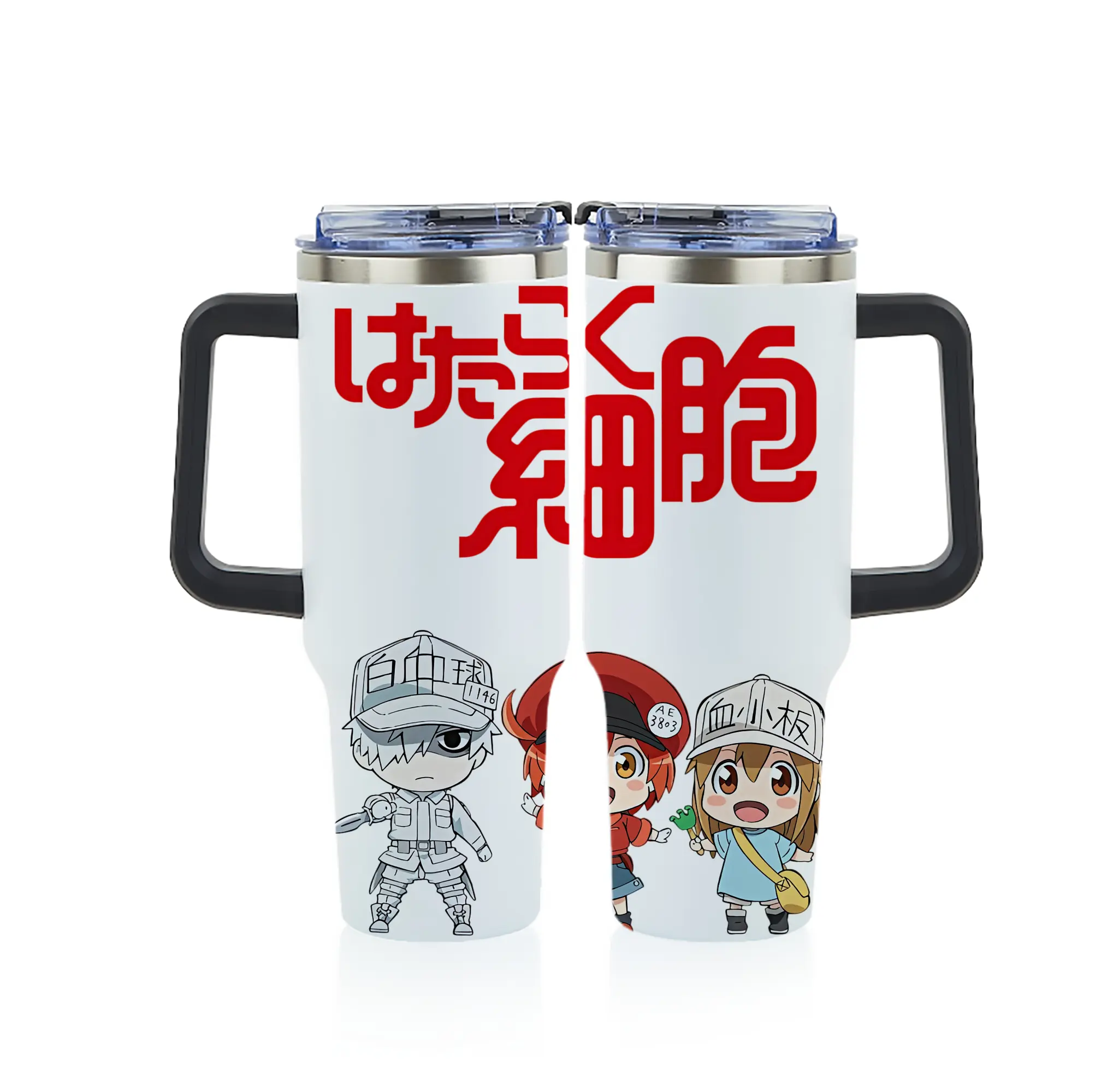はたらく細胞 グッズ,赤血球 - 1200mL フルプリント車用タンブラー ・ 304ステンレス 内側 ・ 201ステンレス 外側 ・ 保温 保冷 ・ 通勤 ドライブ アウトドア用