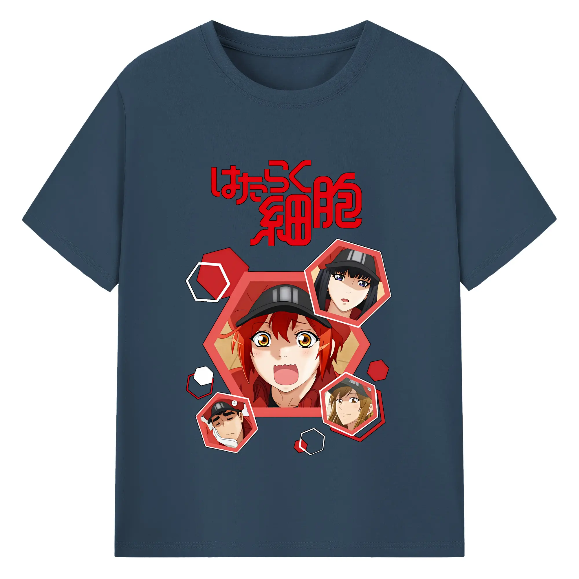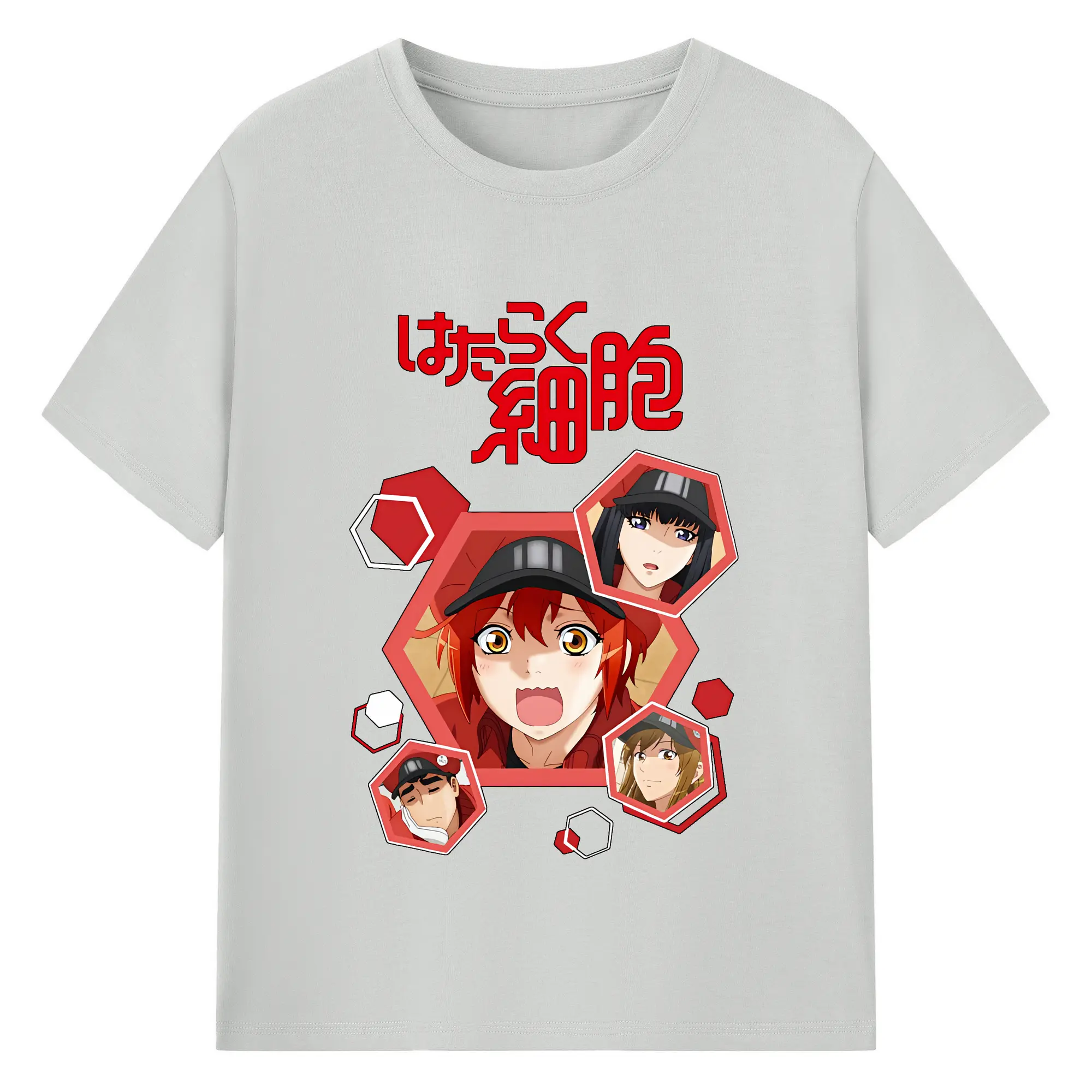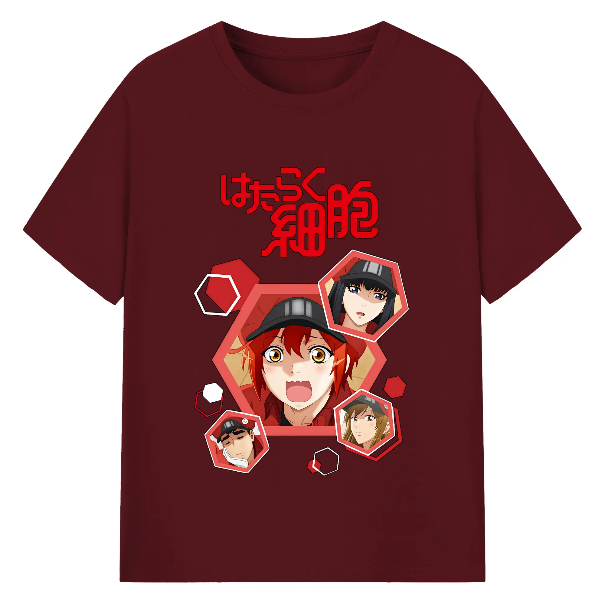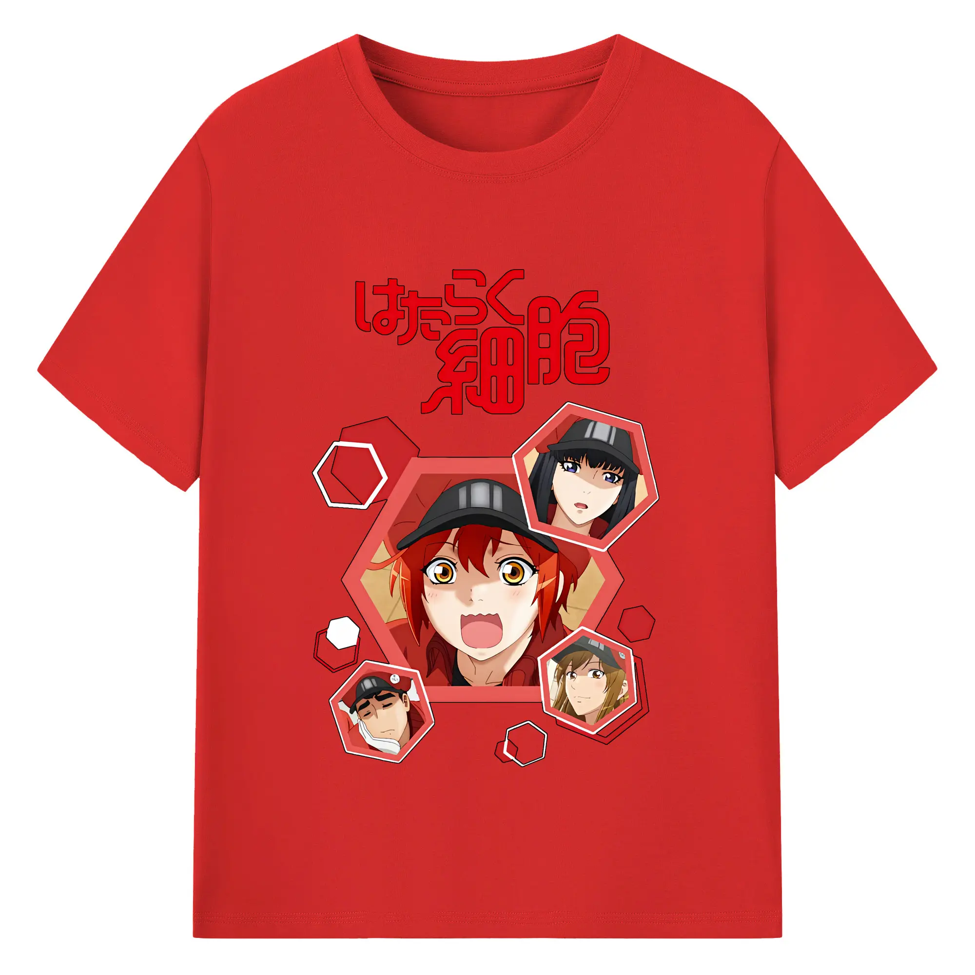 はたらく細胞 グッズ,赤血球 - 綿100% 半袖Tシャツ ・ バックプリント ・ 快適 通気性 ・ 日常使い 散歩 スポーツ用