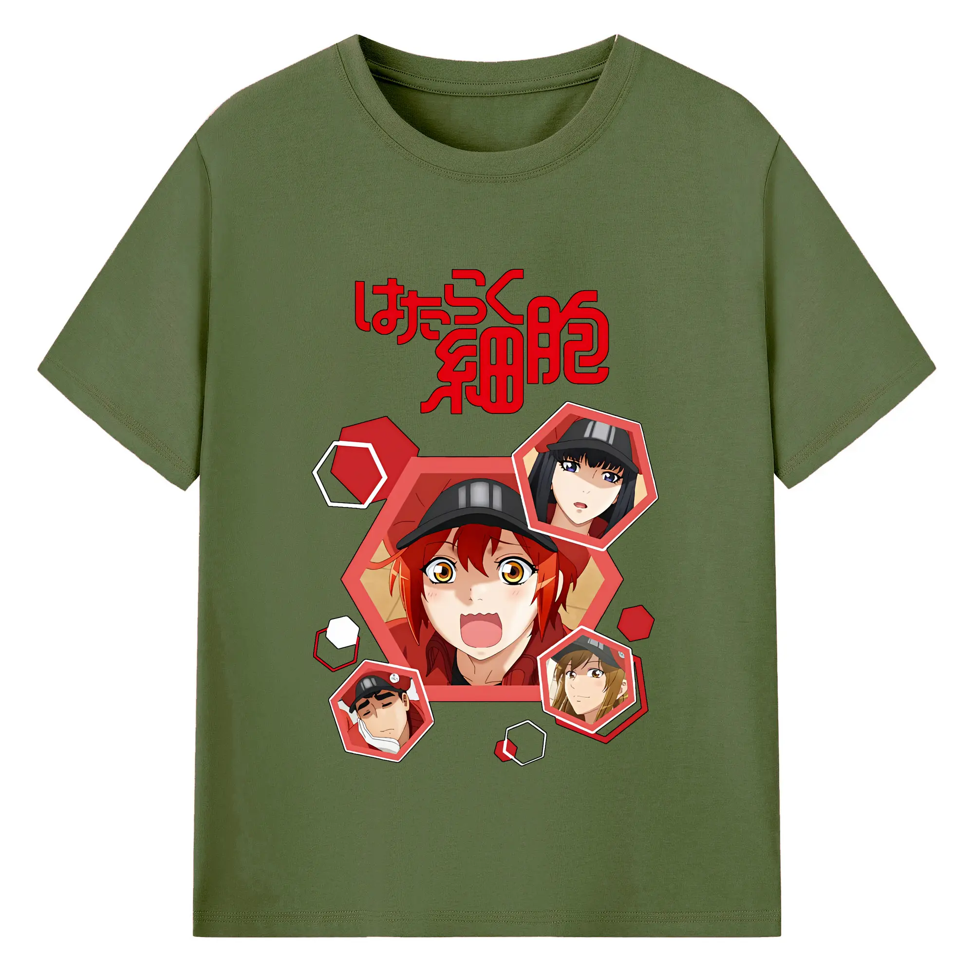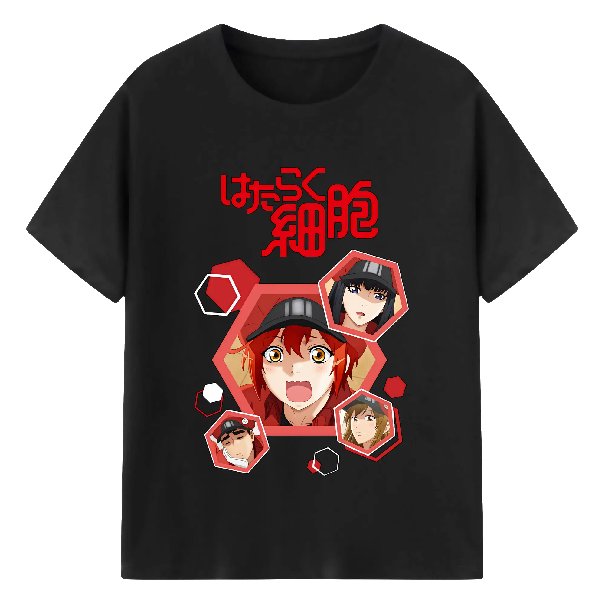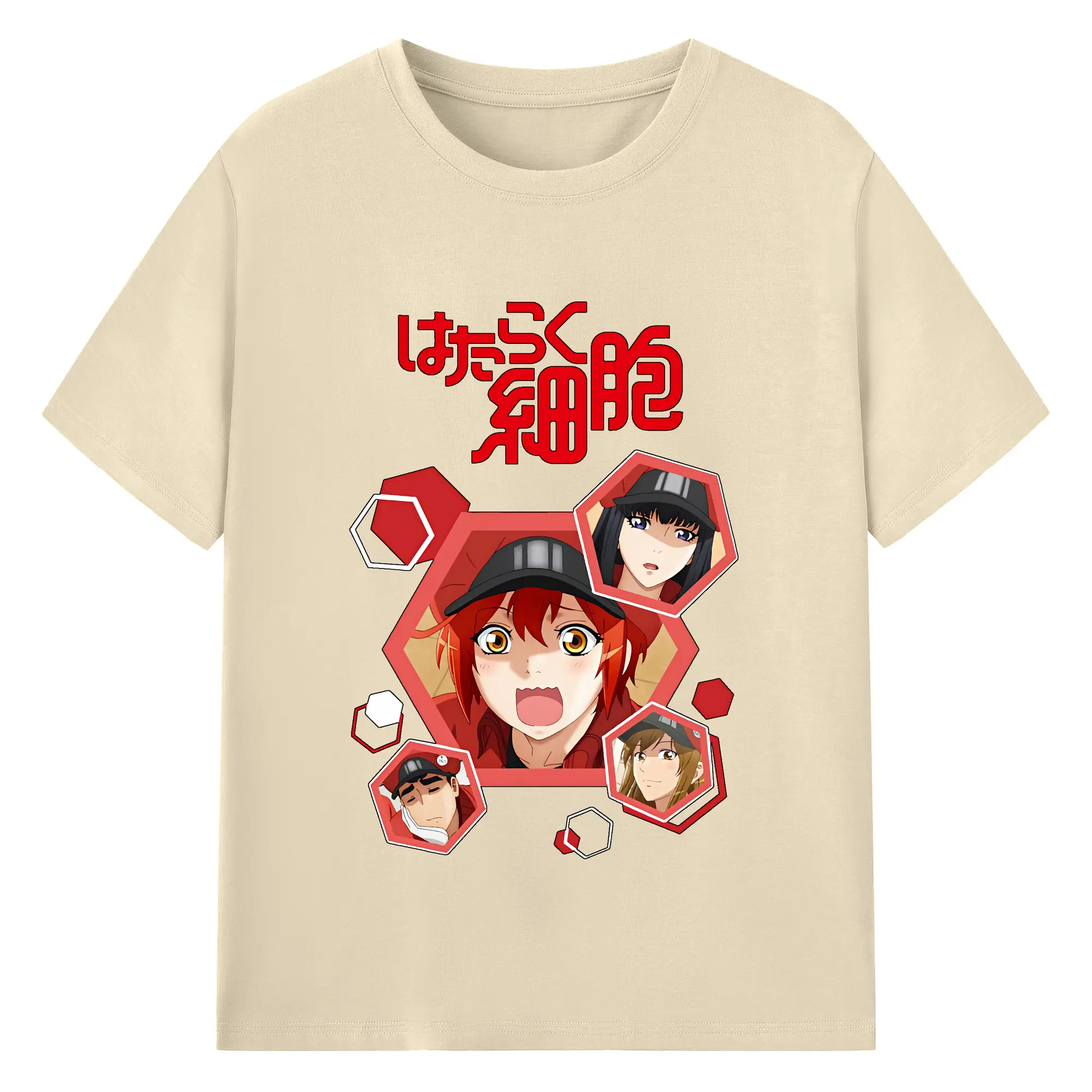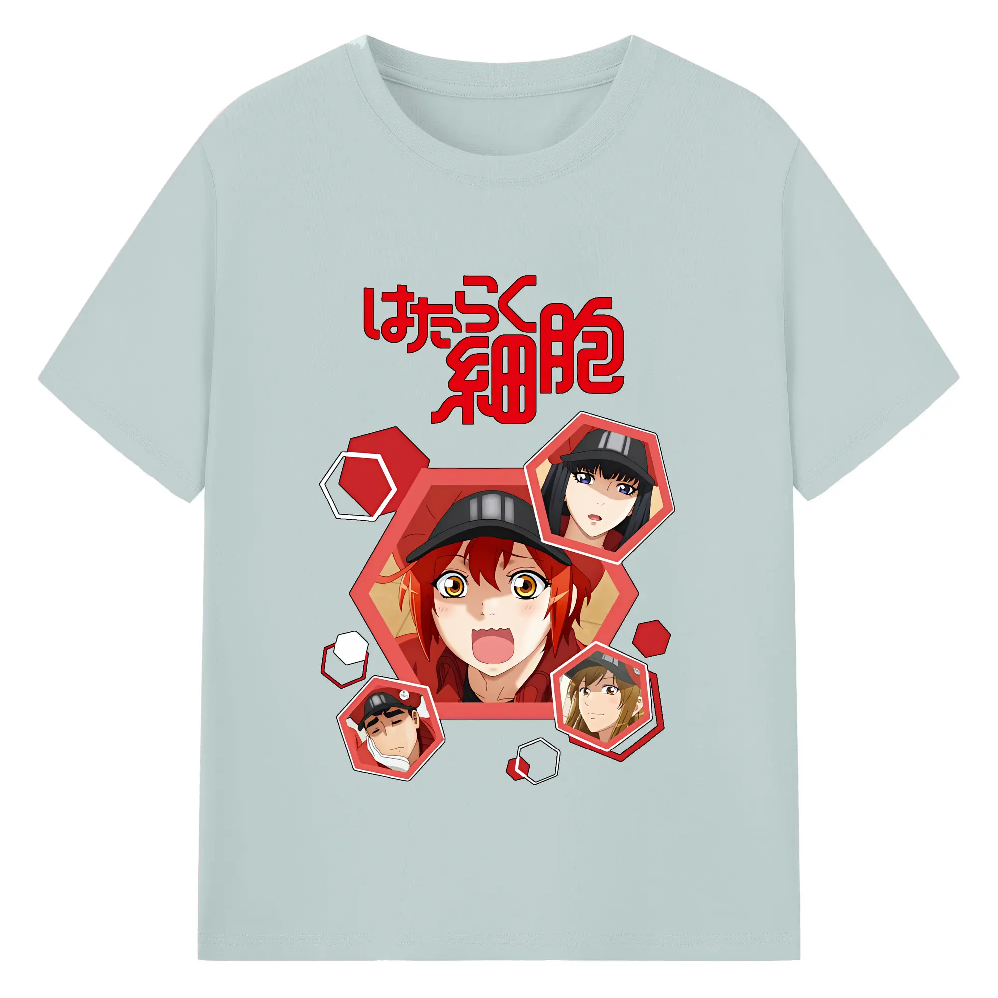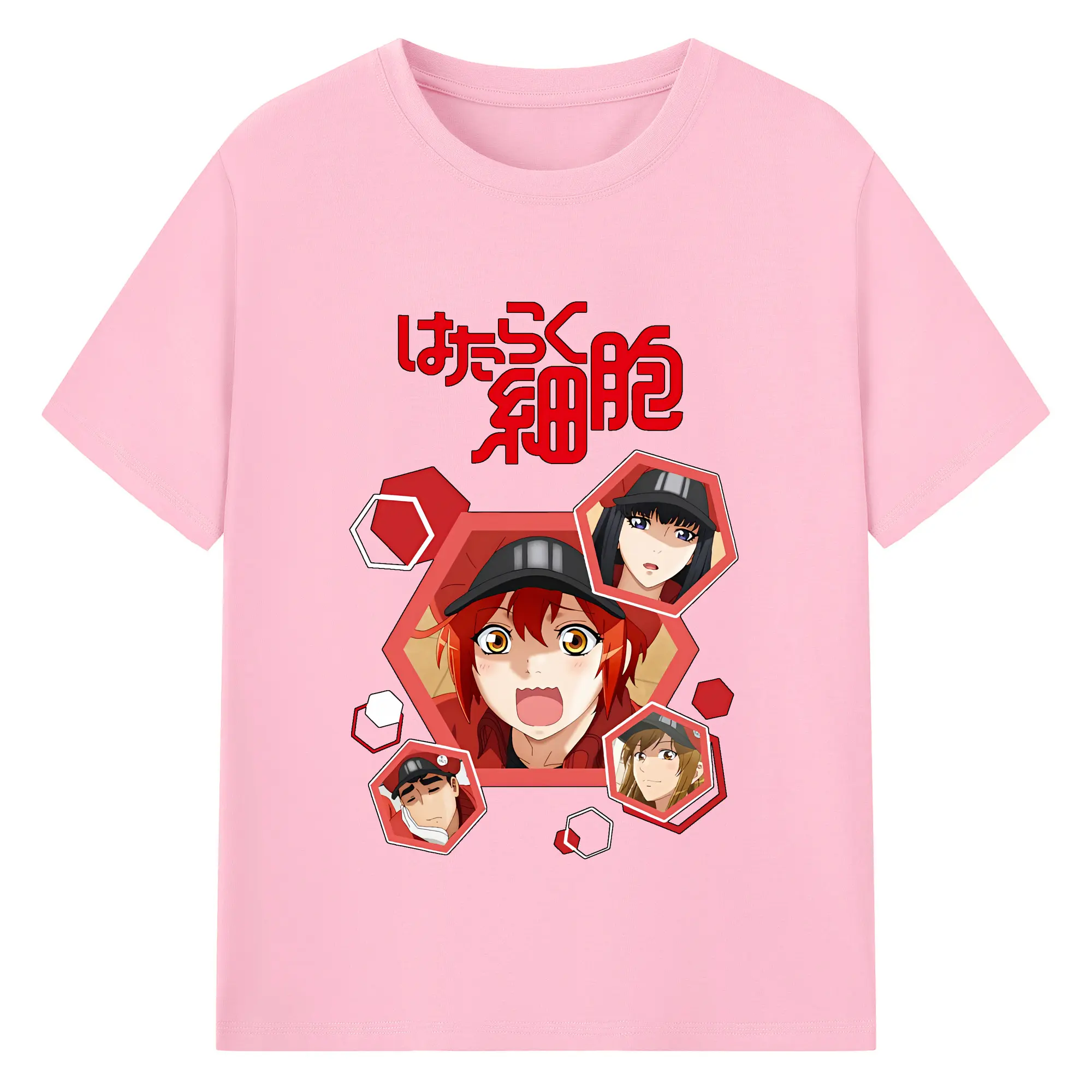 はたらく細胞 グッズ,赤血球 - 綿100% 半袖Tシャツ ・ バックプリント ・ 快適 通気性 ・ 日常使い 散歩 スポーツ用