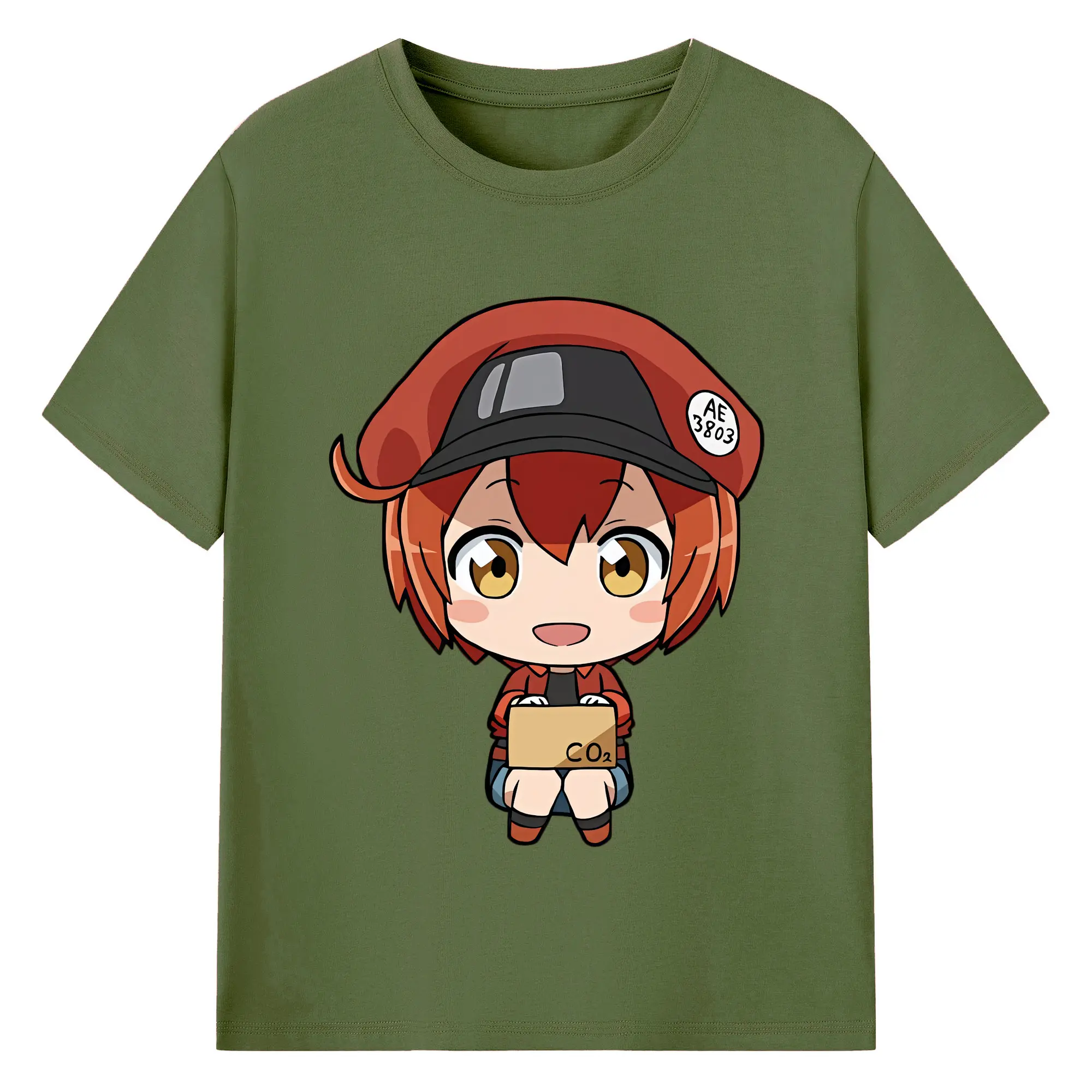 はたらく細胞 グッズ,赤血球 - 綿100% 半袖Tシャツ ・ バックプリント ・ 快適 通気性 ・ 日常使い 散歩 スポーツ用