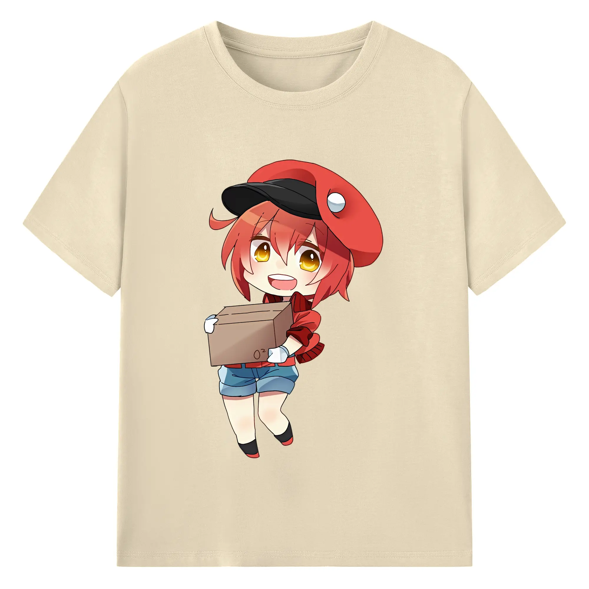 はたらく細胞 グッズ,赤血球 - 綿100% 半袖Tシャツ ・ バックプリント ・ 快適 通気性 ・ 日常使い 散歩 スポーツ用
