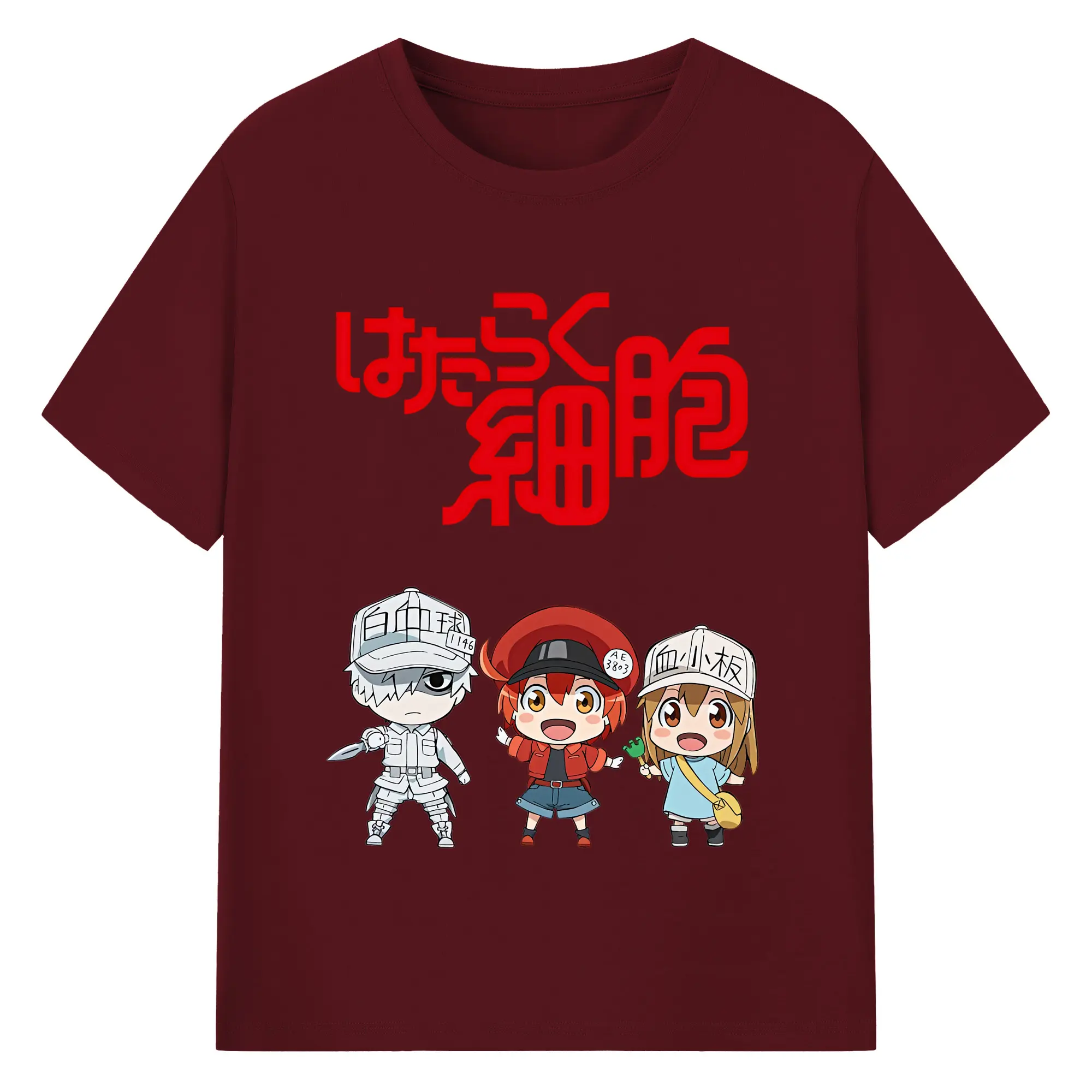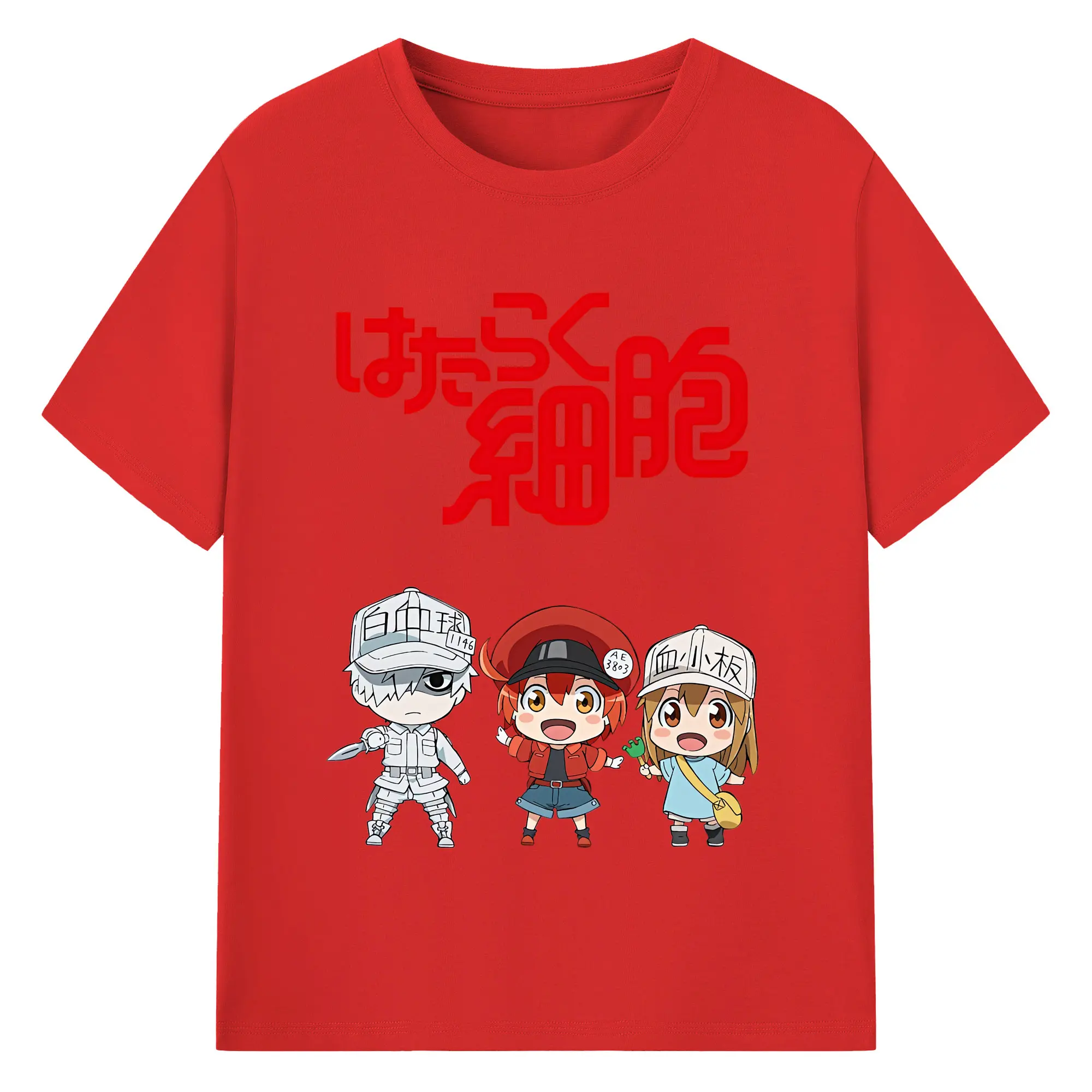 はたらく細胞 グッズ,赤血球 - 綿100% キッズTシャツ ・ フロントプリント ・ 快適 通気性 ・ スポーツ カジュアル 散歩用