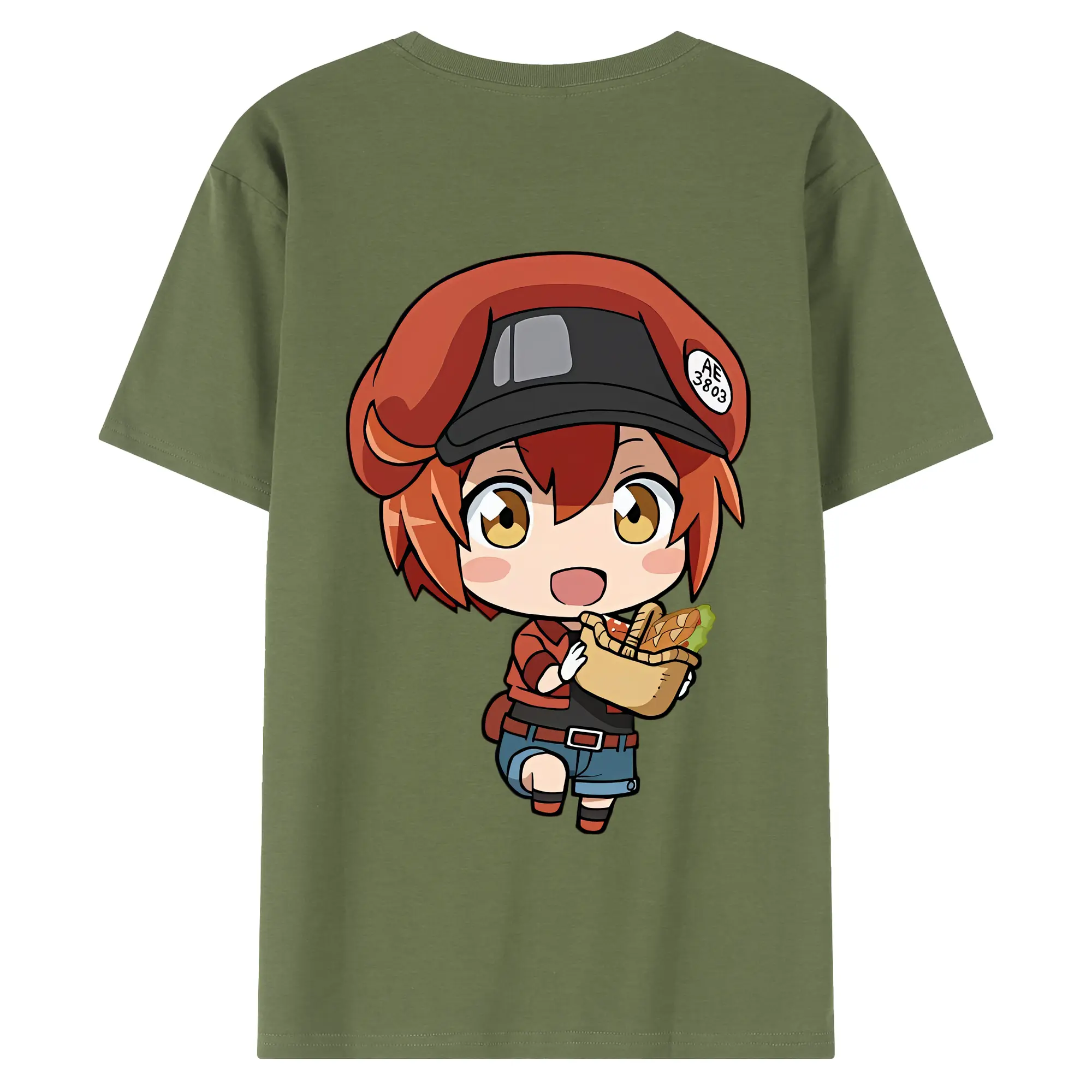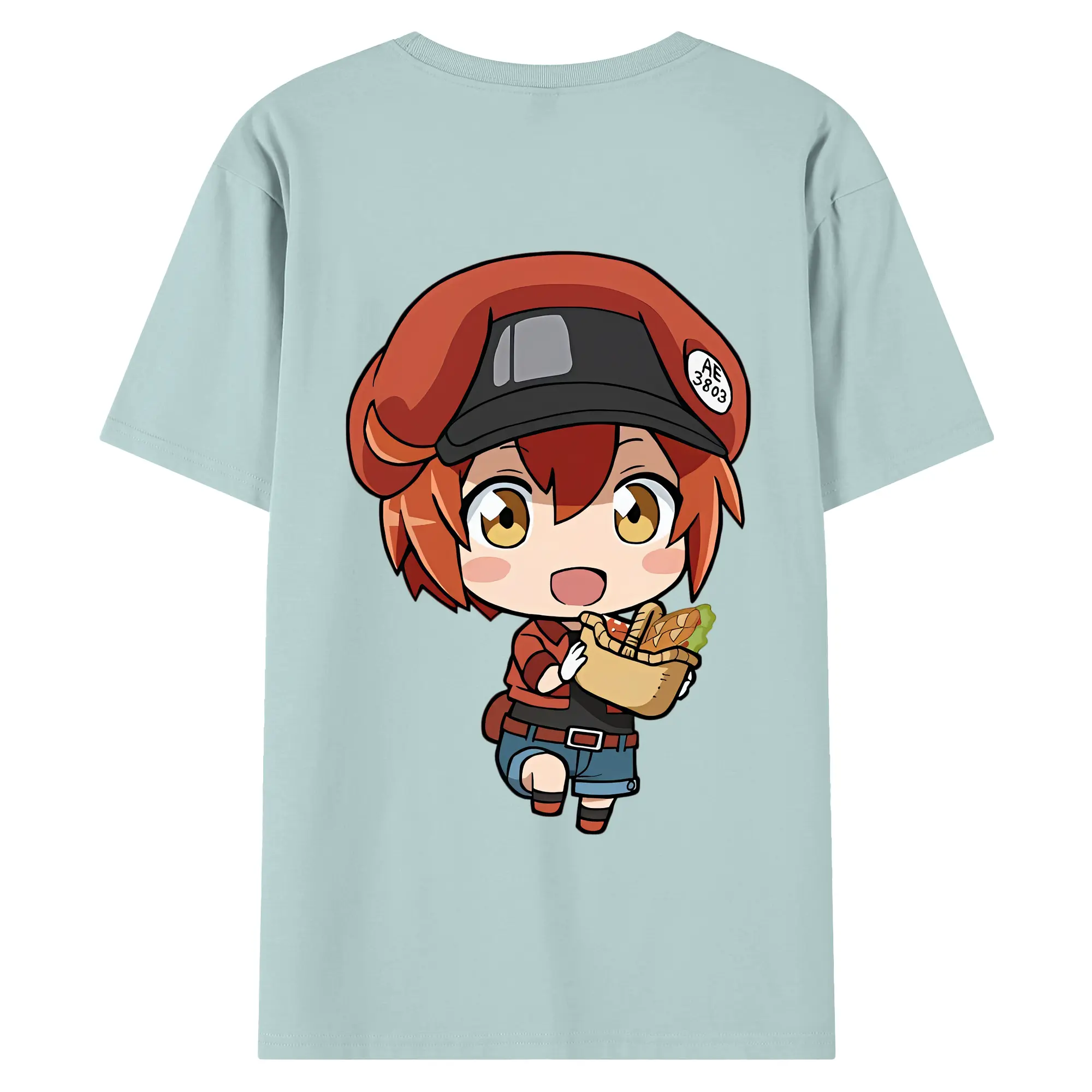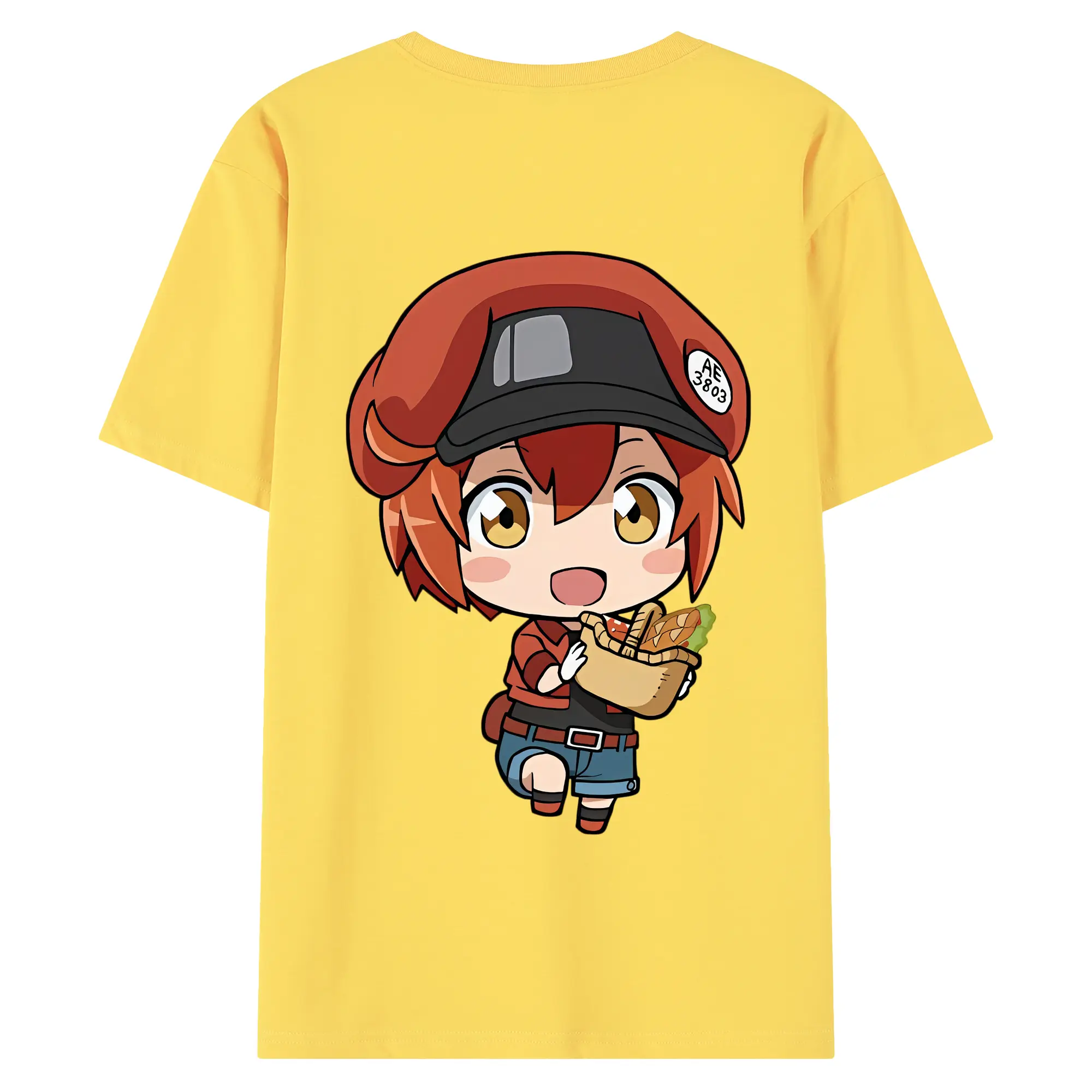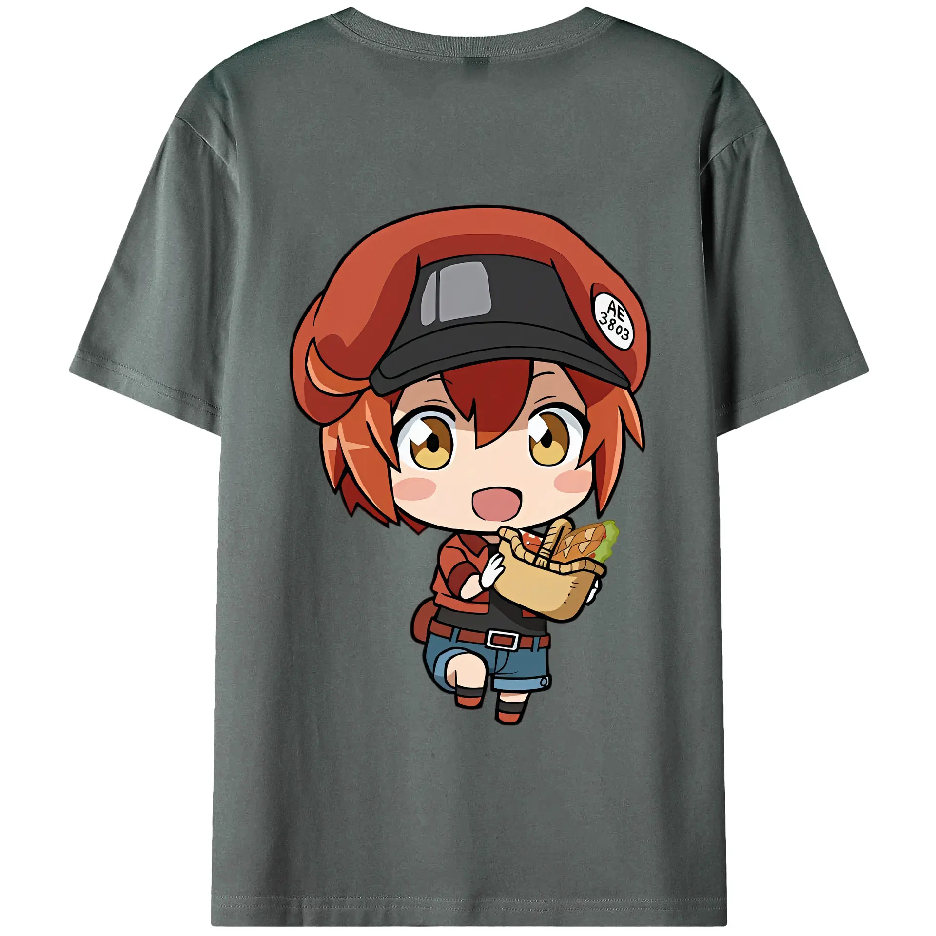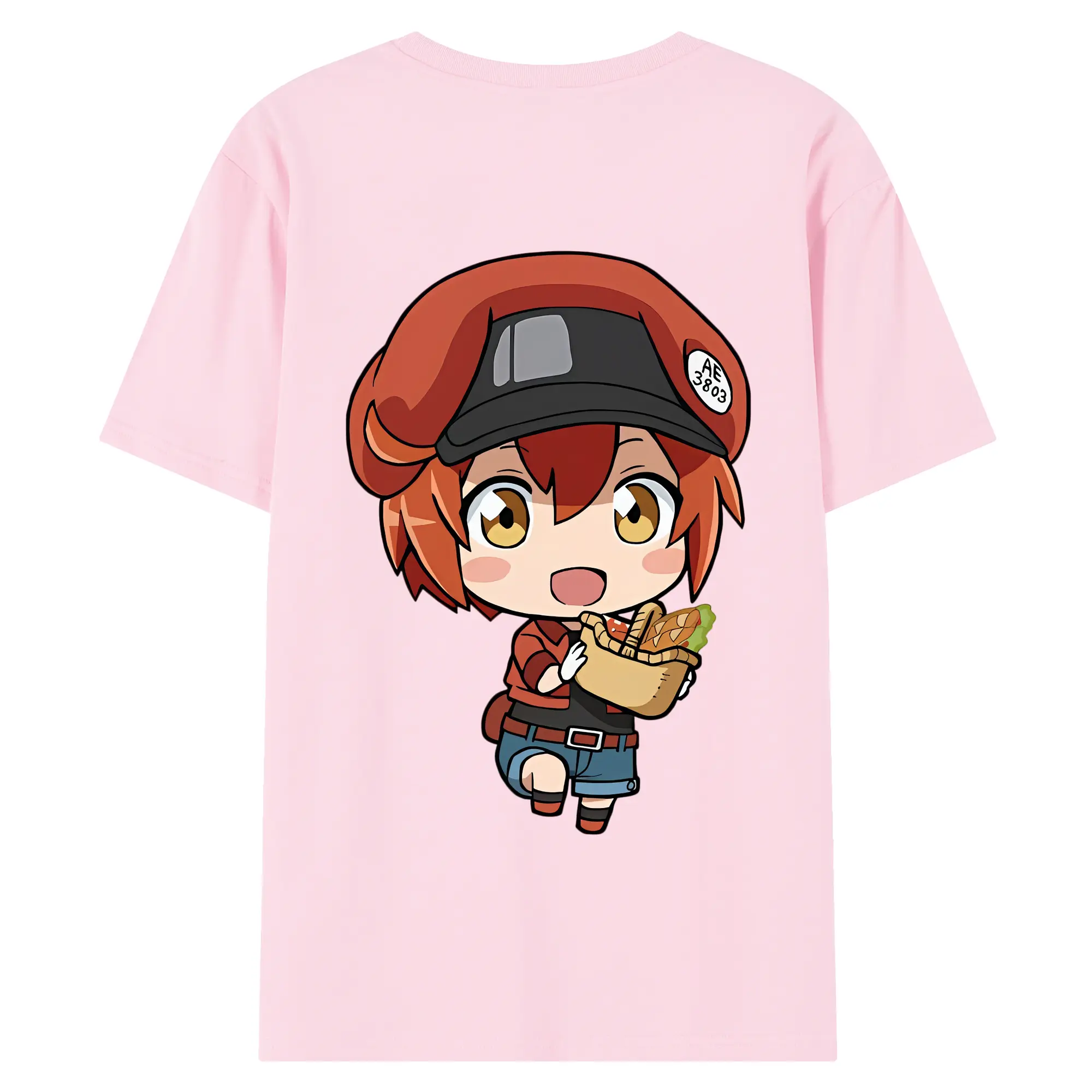 はたらく細胞 グッズ,赤血球 - 綿100% 半袖Tシャツ ・ フロントプリント ・ 快適 通気性 ・ 日常使い 散歩 スポーツ用