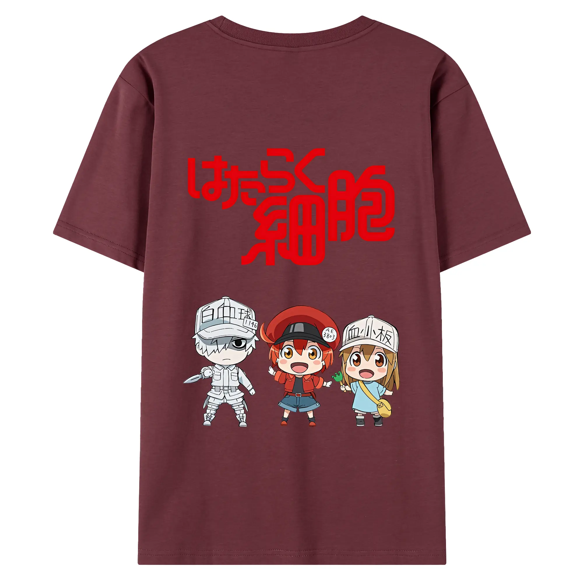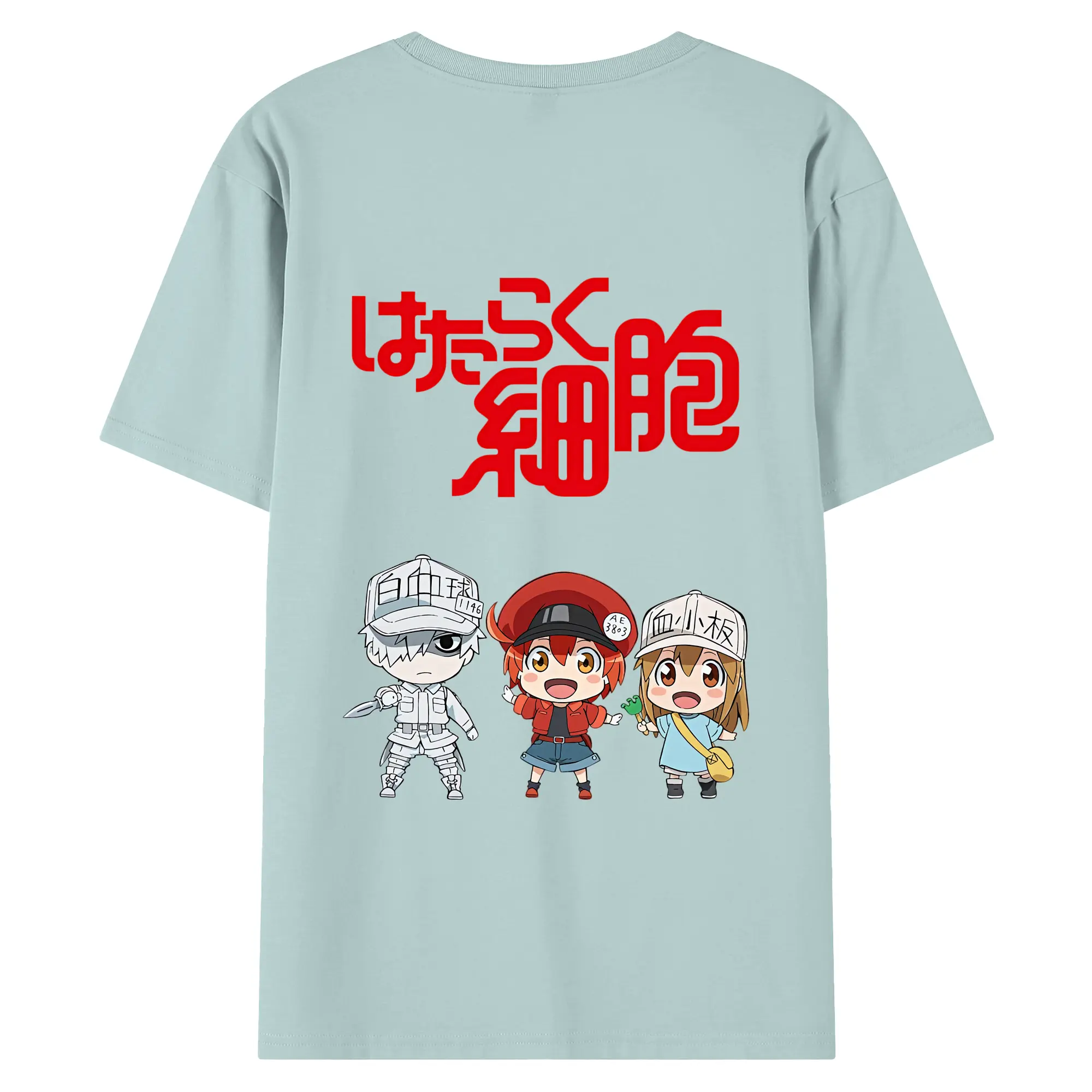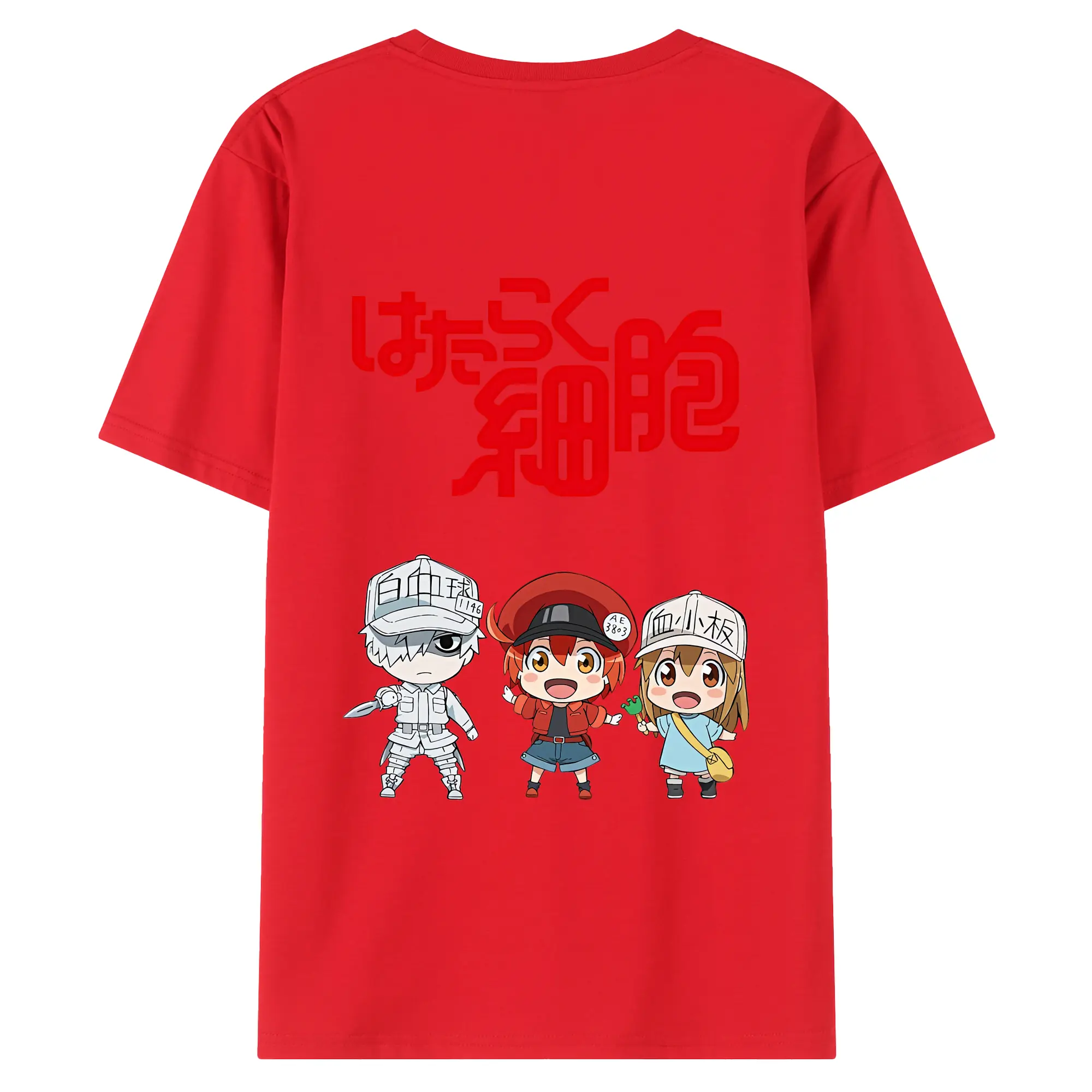 はたらく細胞 グッズ,赤血球 - 綿100% 半袖Tシャツ ・ フロントプリント ・ 快適 通気性 ・ 日常使い 散歩 スポーツ用