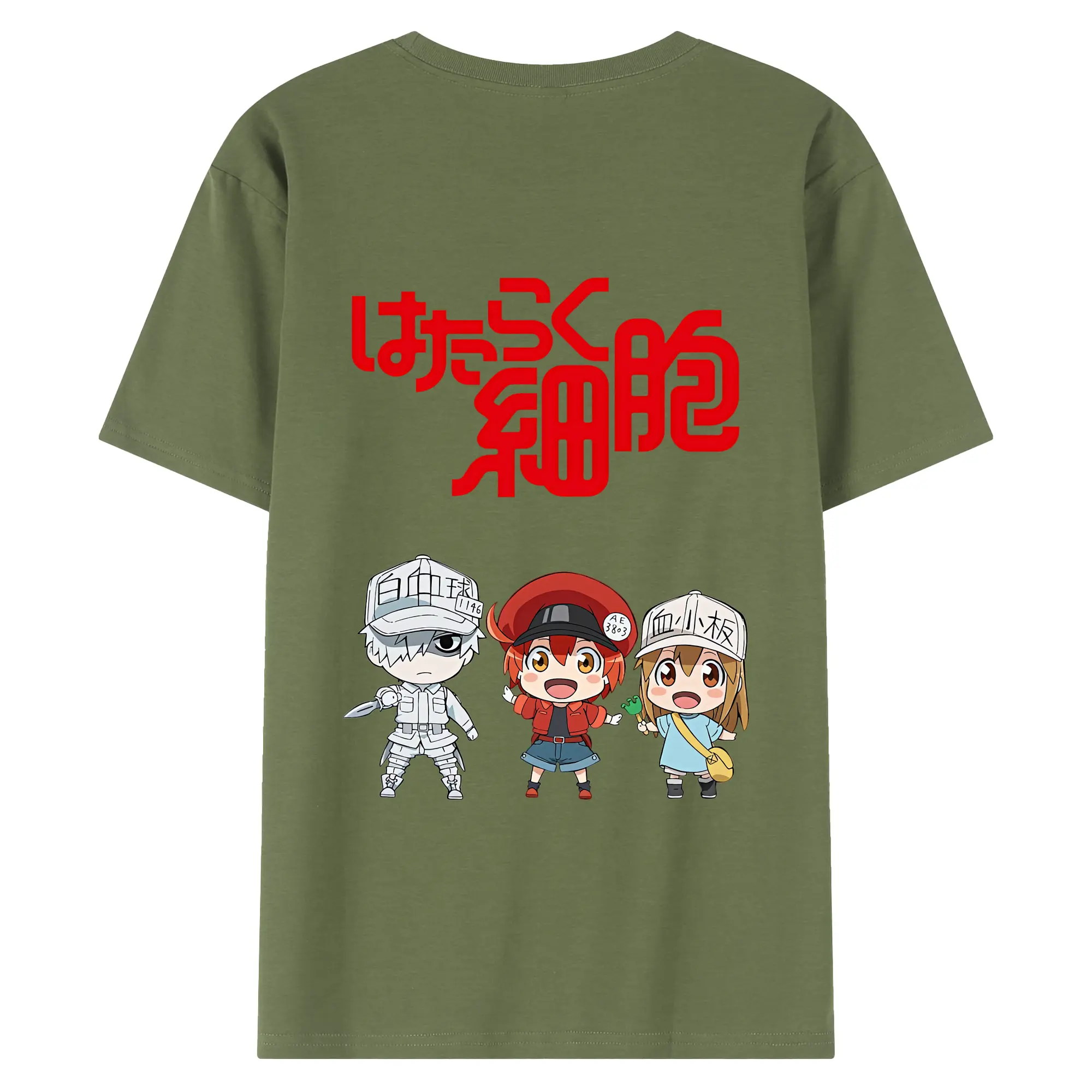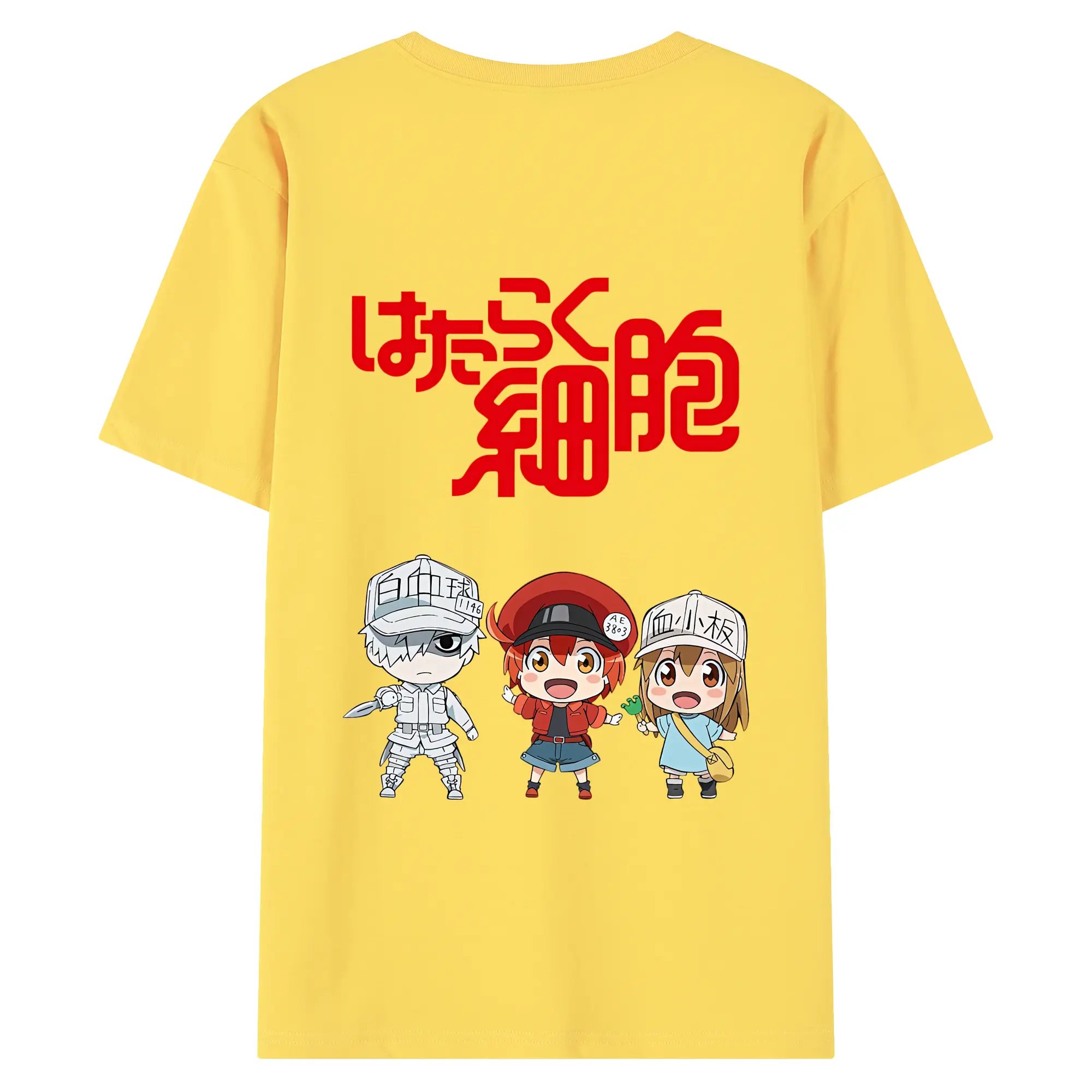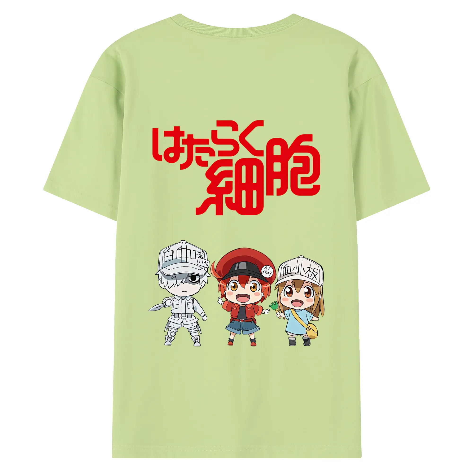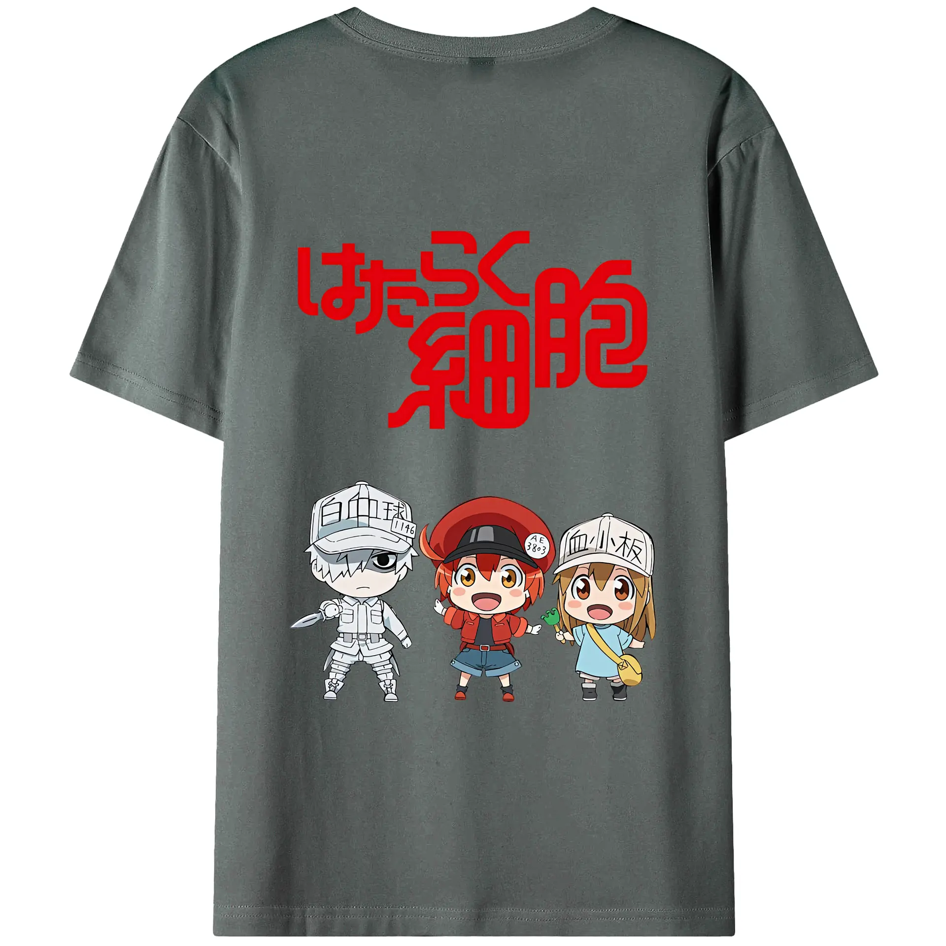 はたらく細胞 グッズ,赤血球 - 綿100% 半袖Tシャツ ・ フロントプリント ・ 快適 通気性 ・ 日常使い 散歩 スポーツ用