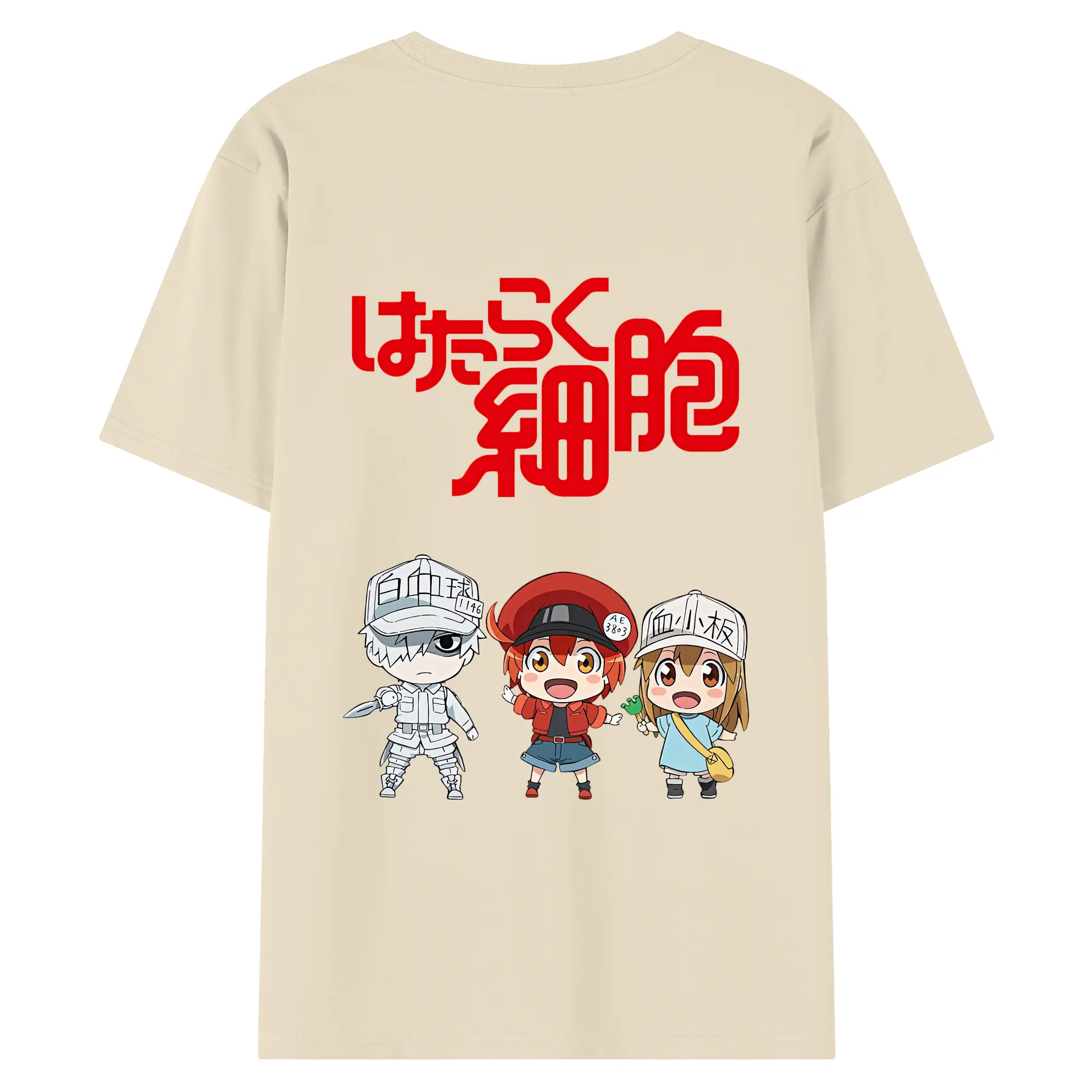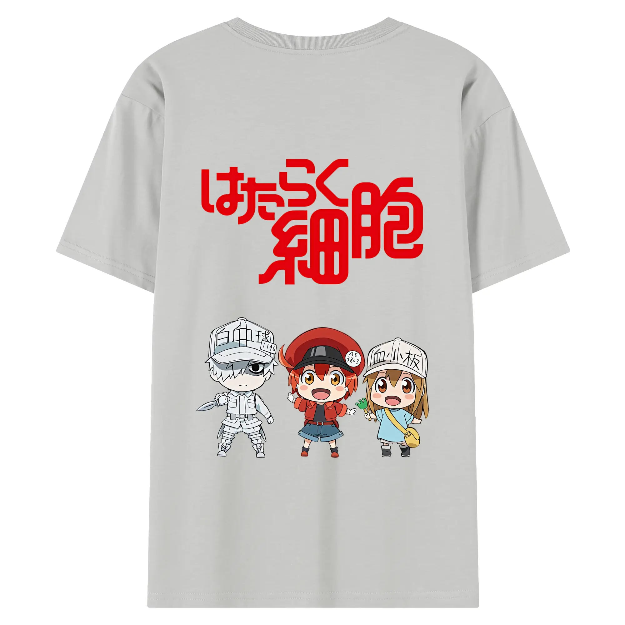 はたらく細胞 グッズ,赤血球 - 綿100% ヴィンテージ風 半袖Tシャツ ・ 背面プリント ・ 柔らか肌触り ・ 通気性 快適 ・ スポーツ カジュアル 外出用